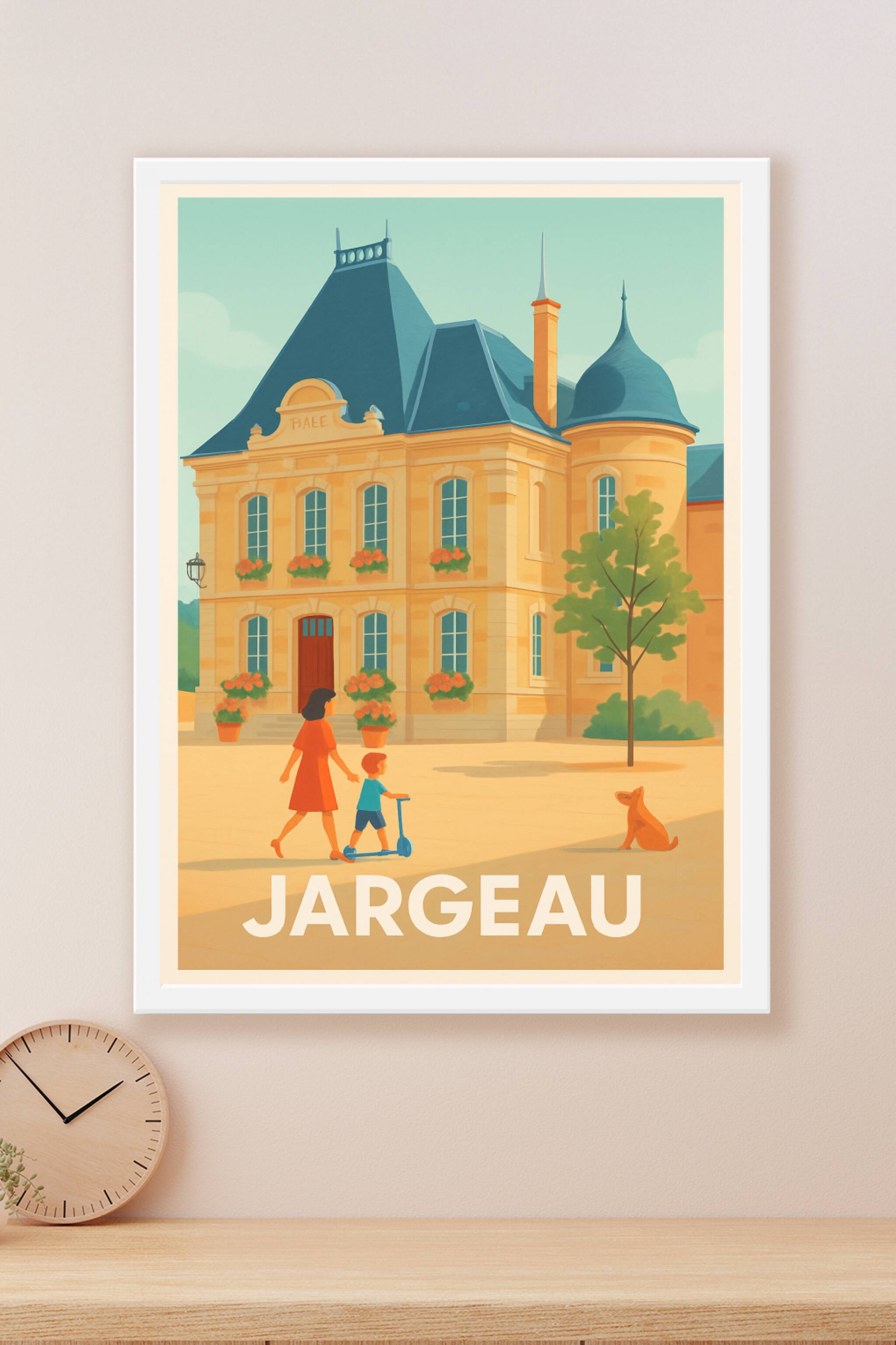 Découvrez le charme intemporel de Jargeau à travers cette affiche illustrée mettant en scène son architecture élégante et son ambiance paisible. Cette poster capture un moment de vie simple et chaleureux, parfait pour apporter une touche de sérénité dans votre intérieur. Proposé en tirage "Fine Art" sur papier 305g coton, ce prints garantit une qualité d'impression exceptionnelle et une fidélité des couleurs remarquable. Disponible en dimensions A1 à A4, avec ou sans cadre, cette affiche est idéale pour décorer votre salon, bureau ou chambre, ou pour offrir un souvenir raffiné de cette jolie ville ligérienne.