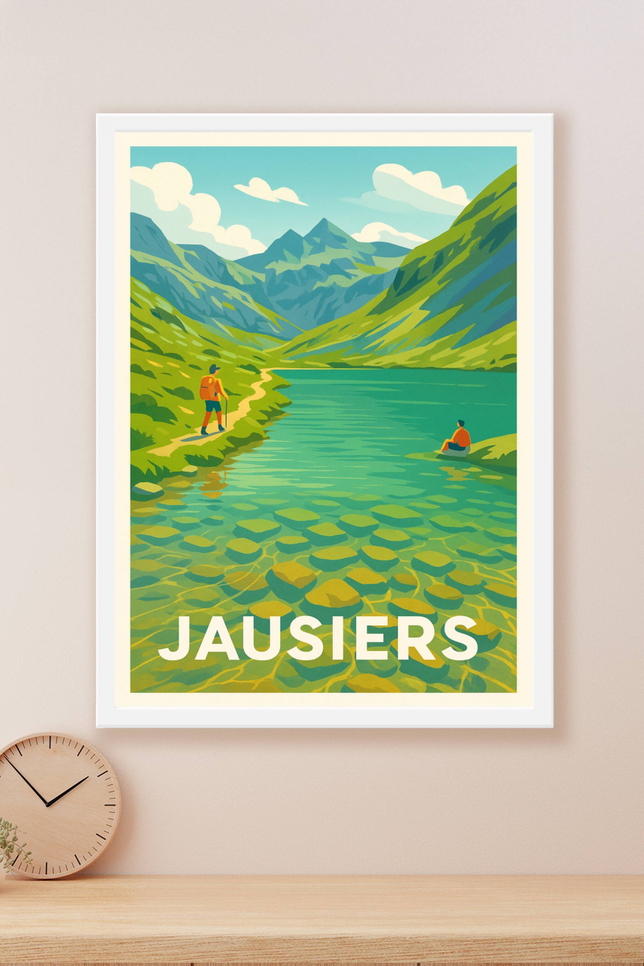 Découvrez la beauté sauvage et apaisante de Jausiers à travers cette affiche inspirante qui capture les paysages majestueux des montagnes et l'eau cristalline d'un lac alpin. Ce poster illustré avec des couleurs vives et un style rétro évoque la sérénité des moments passés en pleine nature, entre randonnée et contemplation.Cette affiche est imprimée en tirage "Fine Art" sur papier 305g coton garantissant une qualité d'impression exceptionnelle et une durabilité optimale. Disponible en formats A1 à A4, avec ou sans cadre, elle s'adapte parfaitement à tous les intérieurs, apportant une touche d'évasion et d'authenticité.Offrez-vous ou à vos proches un souvenir unique de la région, grâce à une impression premium 100% fabriquée en France, idéale pour décorer votre salon, bureau ou chambre avec raffinement.