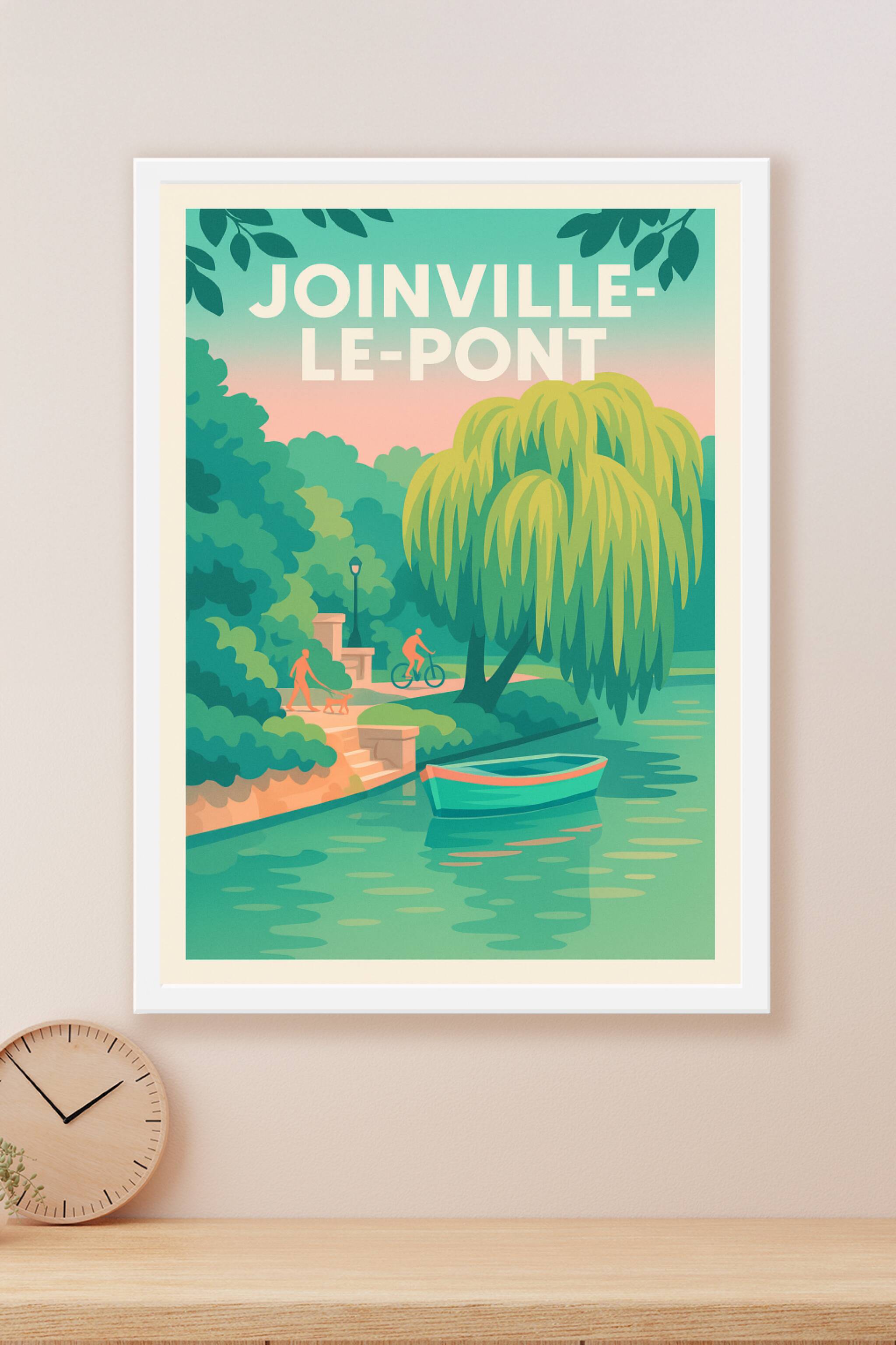 Découvrez la douceur de vivre à Joinville-le-Pont avec cette affiche représentant une scène paisible au bord de l'eau, où nature et loisirs se renc...