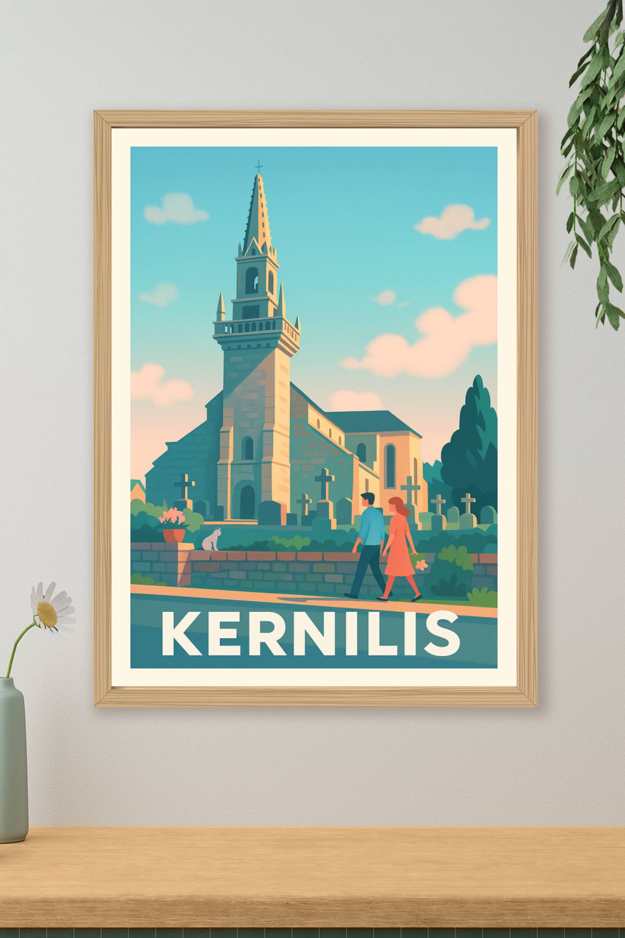 Découvrez l'élégance paisible de Kernilis à travers cette affiche évoquant une scène typique de la région bretonne, où l'architecture historique se...