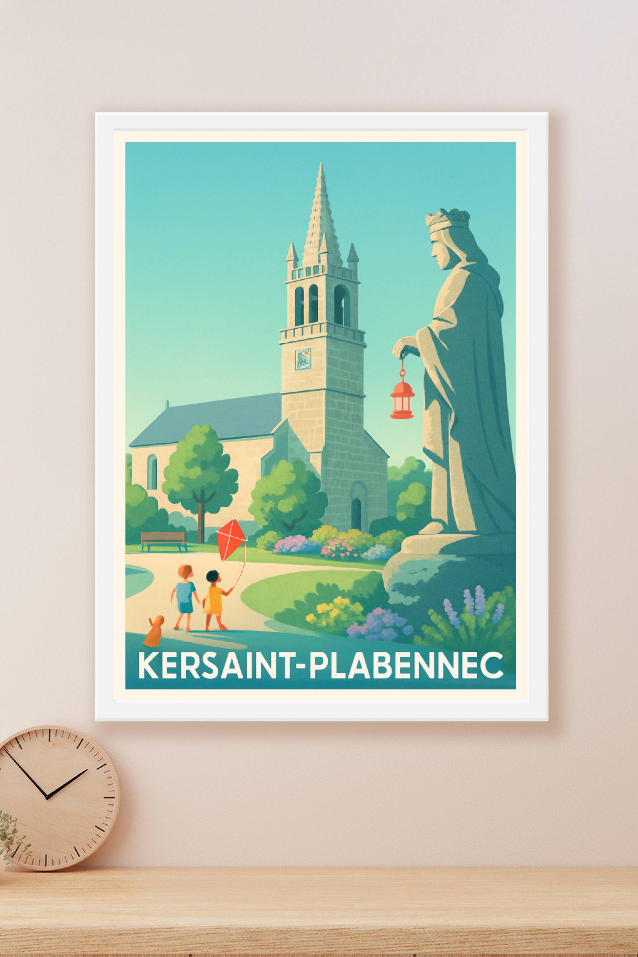 Découvrez l'authenticité et la douceur de vivre de Kersaint-Plabennec à travers cette affiche illustrée au style vintage qui met en lumière son égl...