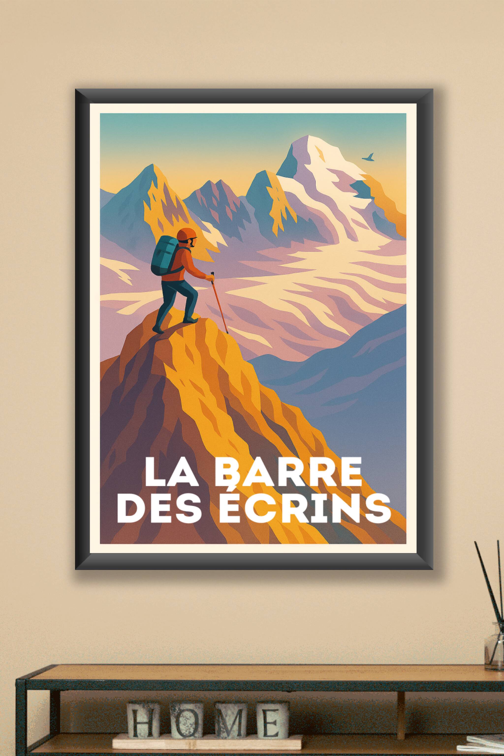 Sublimez votre intérieur avec cette affiche inspirée par la majestueuse Barre des Écrins, sommet emblématique des Alpes françaises. Ce poster vibra...