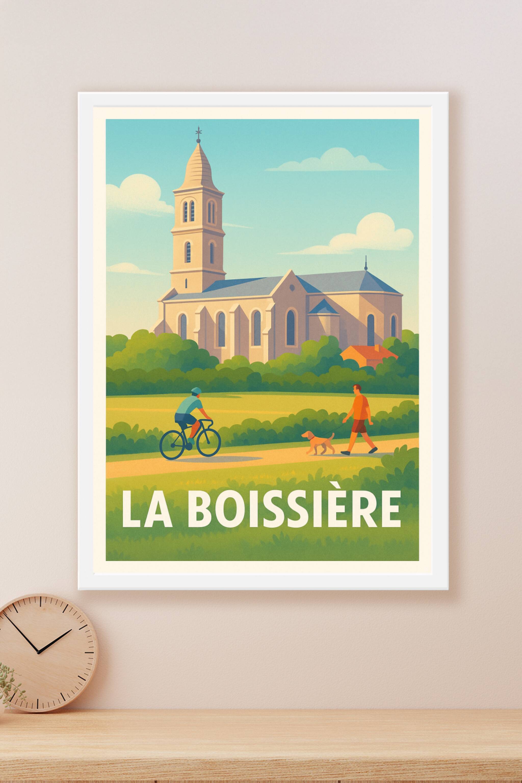 Découvrez la sérénité de La Boissière avec ce poster illustré mettant en scène son église emblématique et ses paysages apaisants. Cette affiche inv...