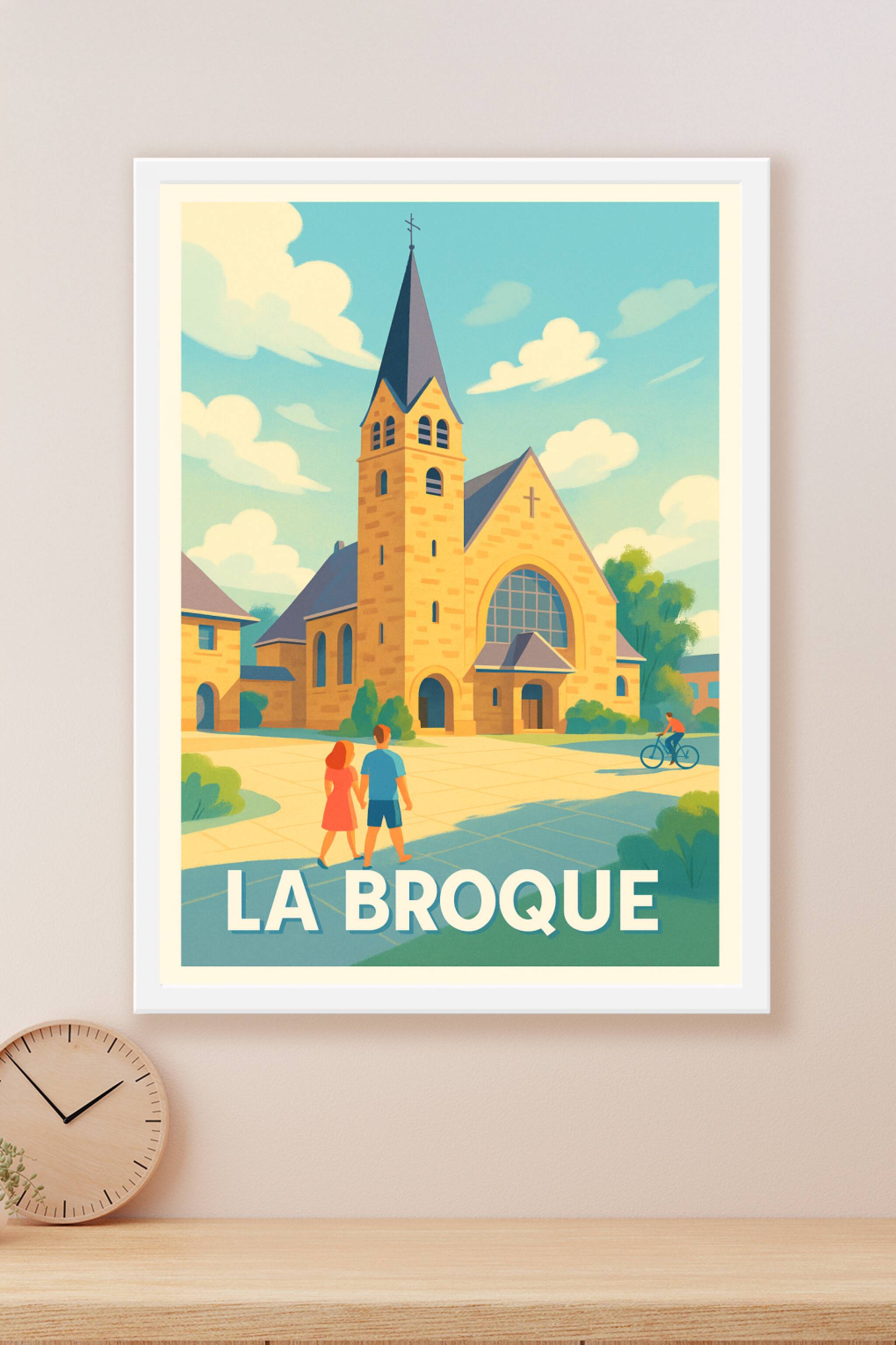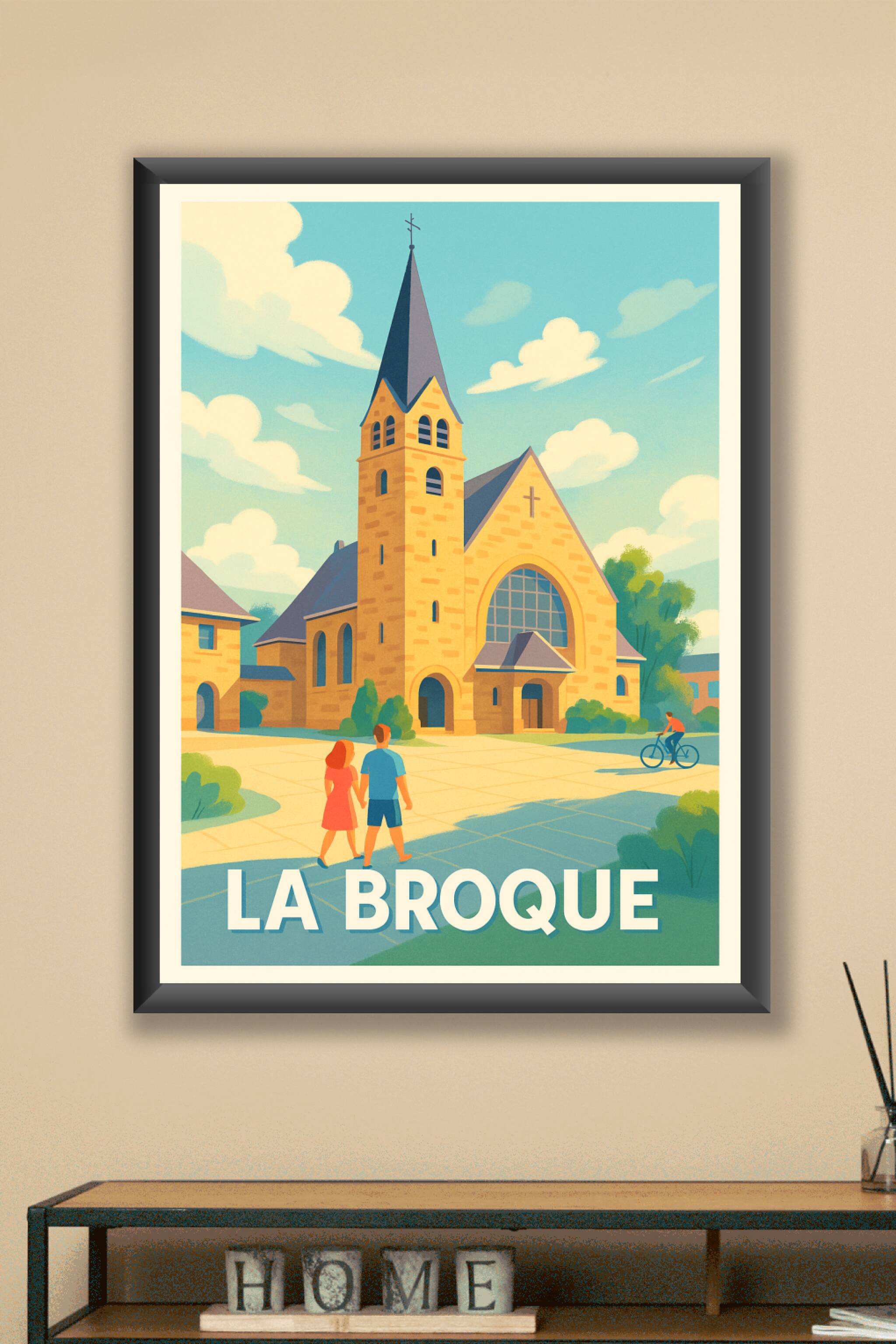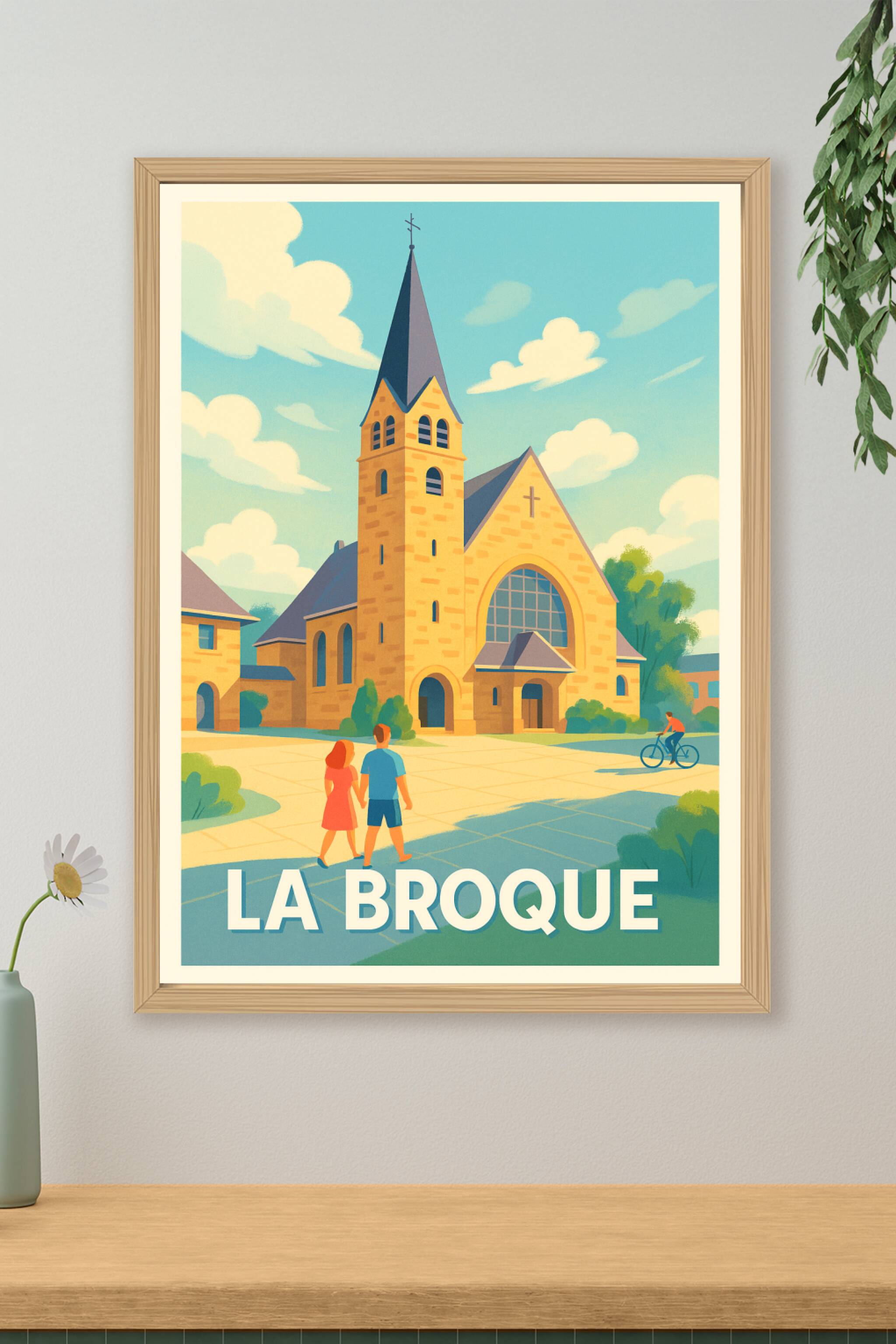 Découvrez la douceur de vivre à La Broque à travers cette affiche illustrée mettant en scène son église emblématique sous un ciel lumineux. Cette i...