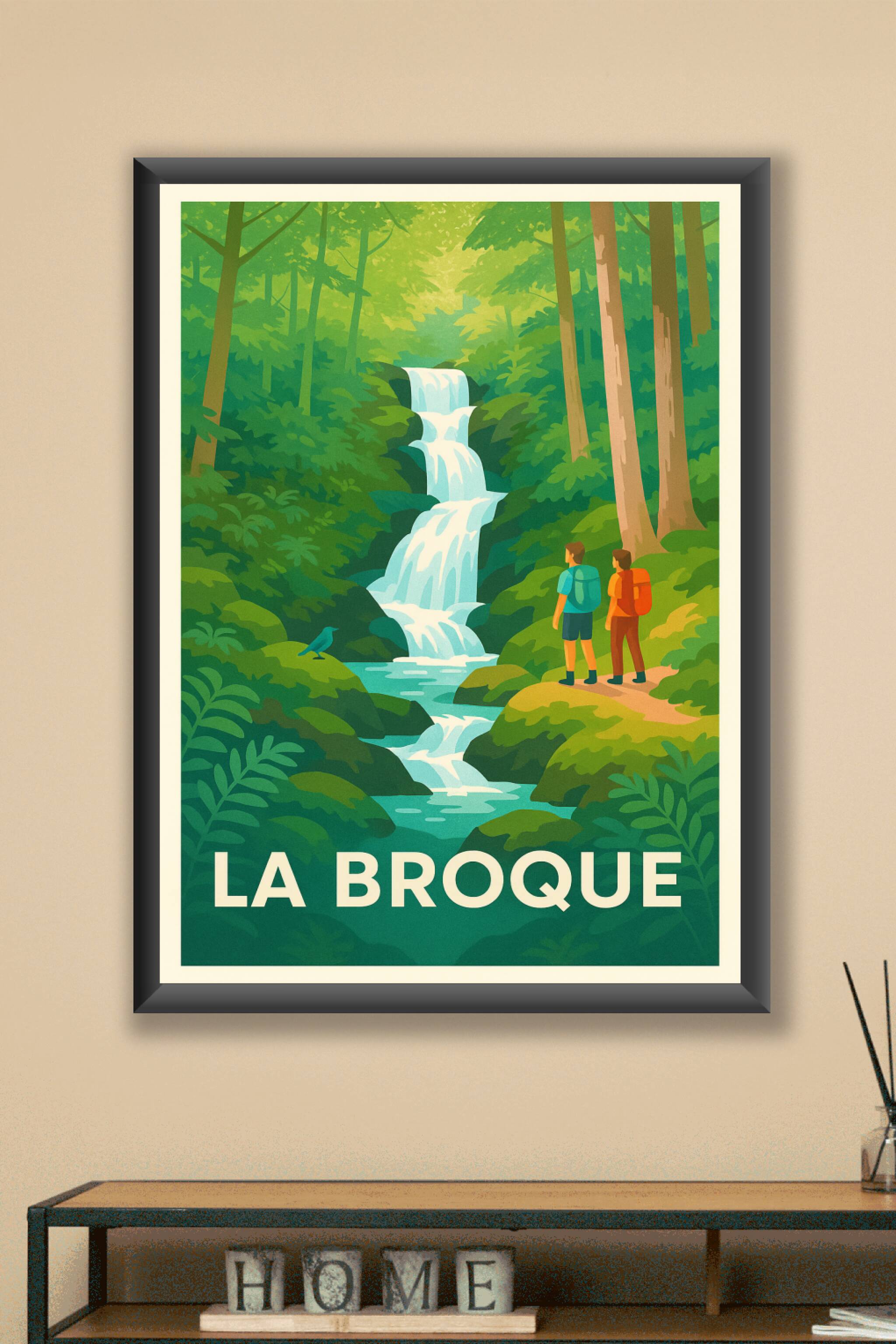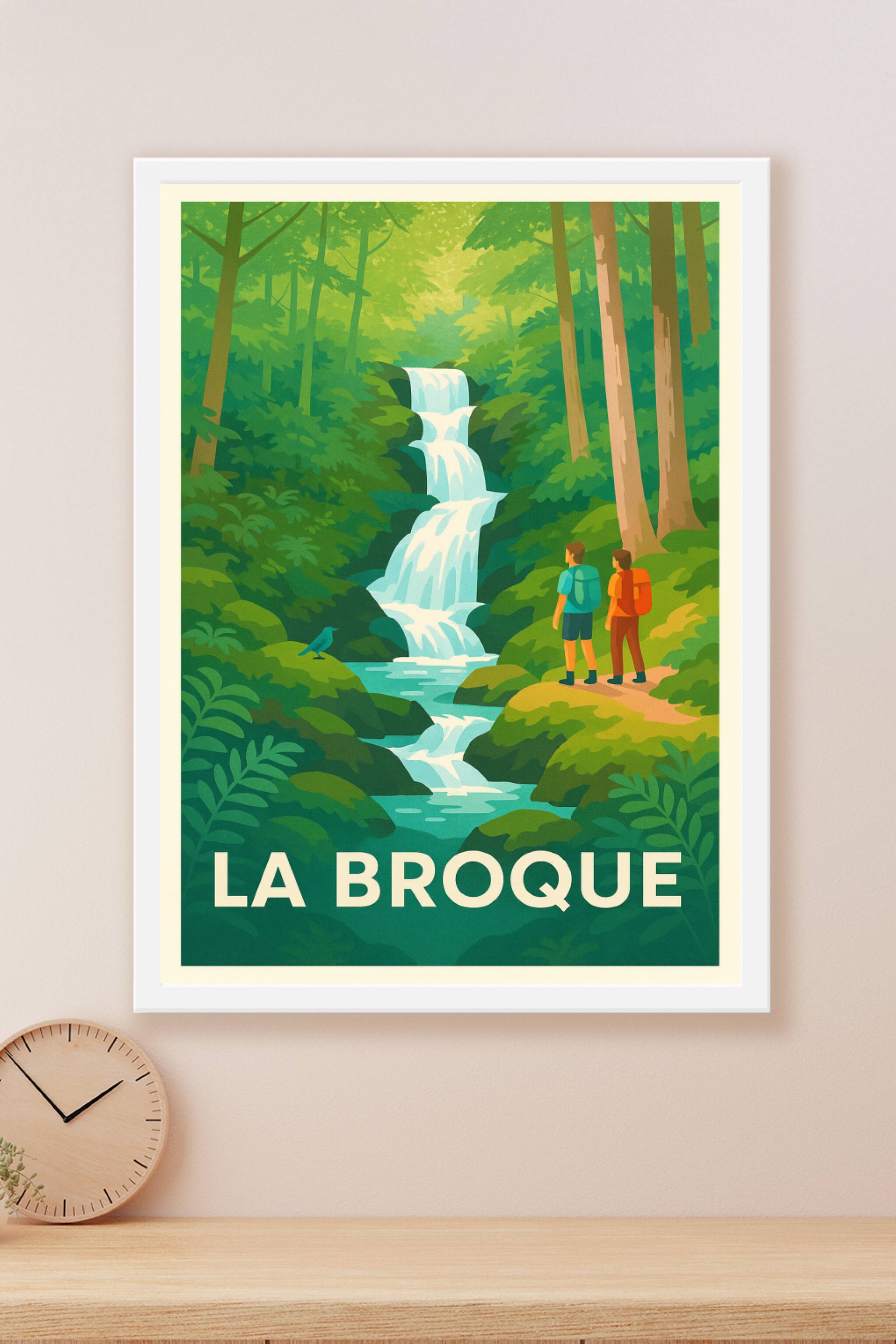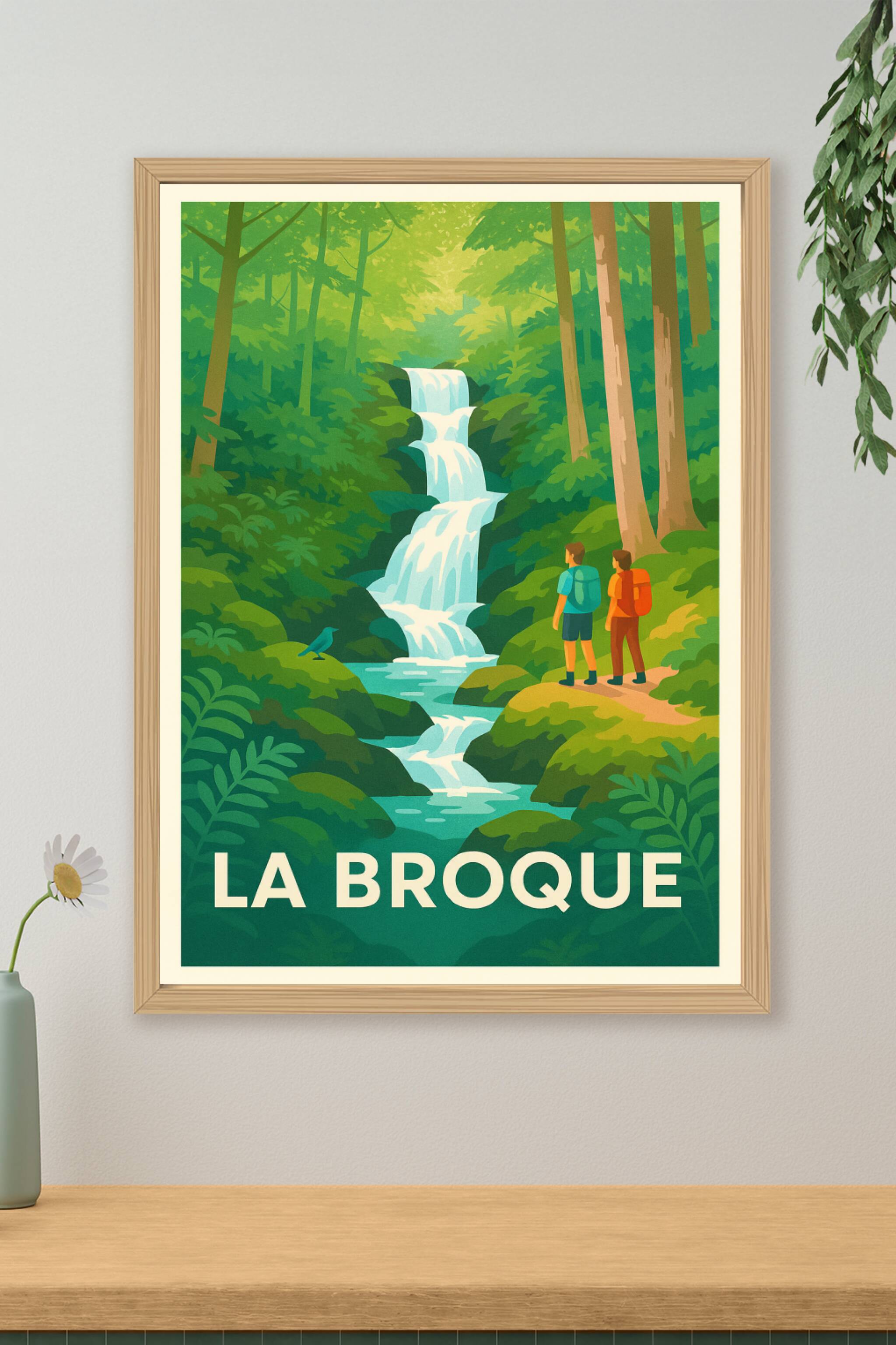 Découvrez la beauté sauvage de La Broque avec cette affiche inspirante, illustrant une cascade majestueuse au cœur d'une forêt luxuriante. Ce poste...