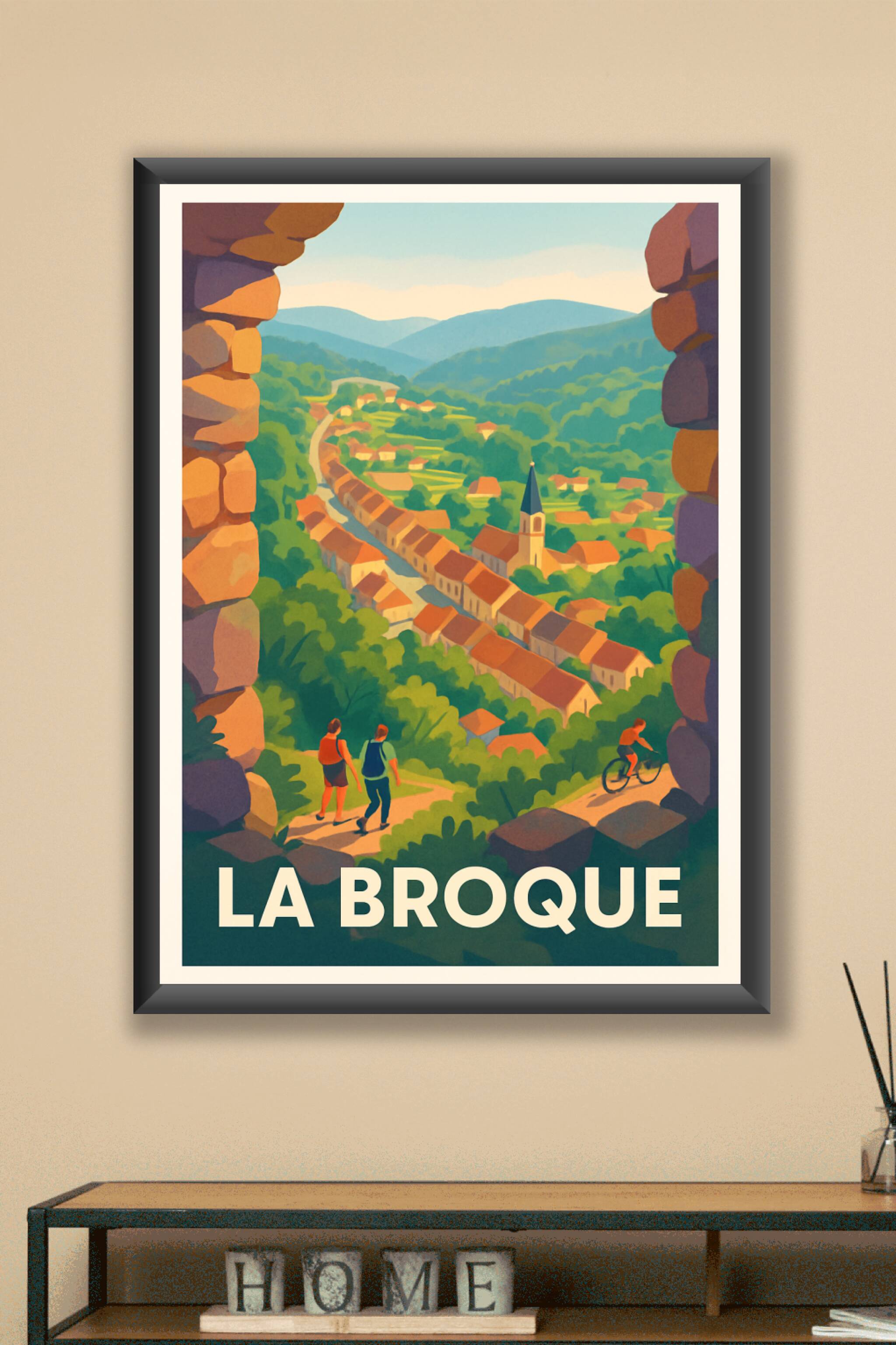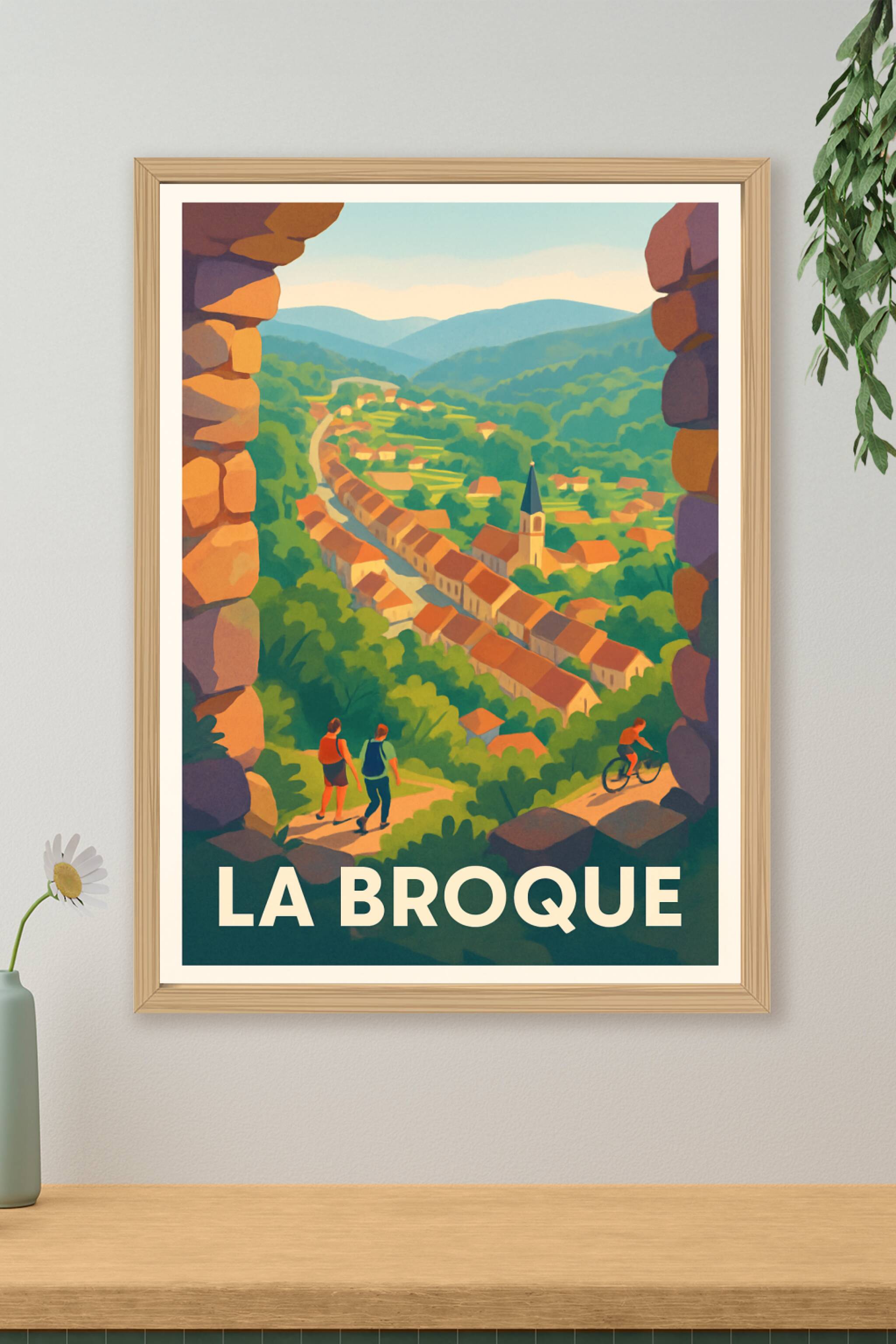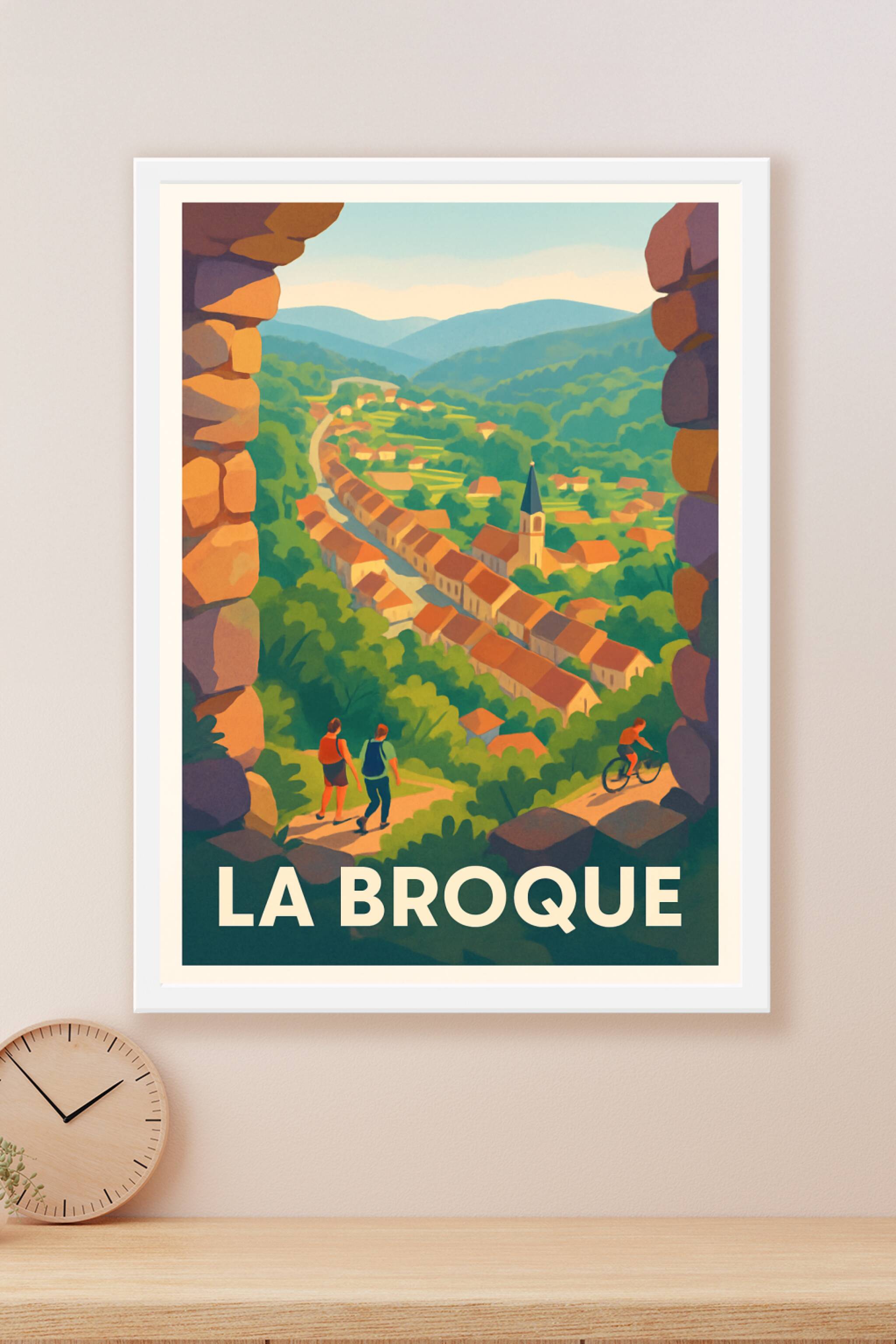 Découvrez la charmante commune de La Broque à travers cette affiche illustrée pleine de douceur et de couleurs chaudes. Nichée dans un écrin de ver...