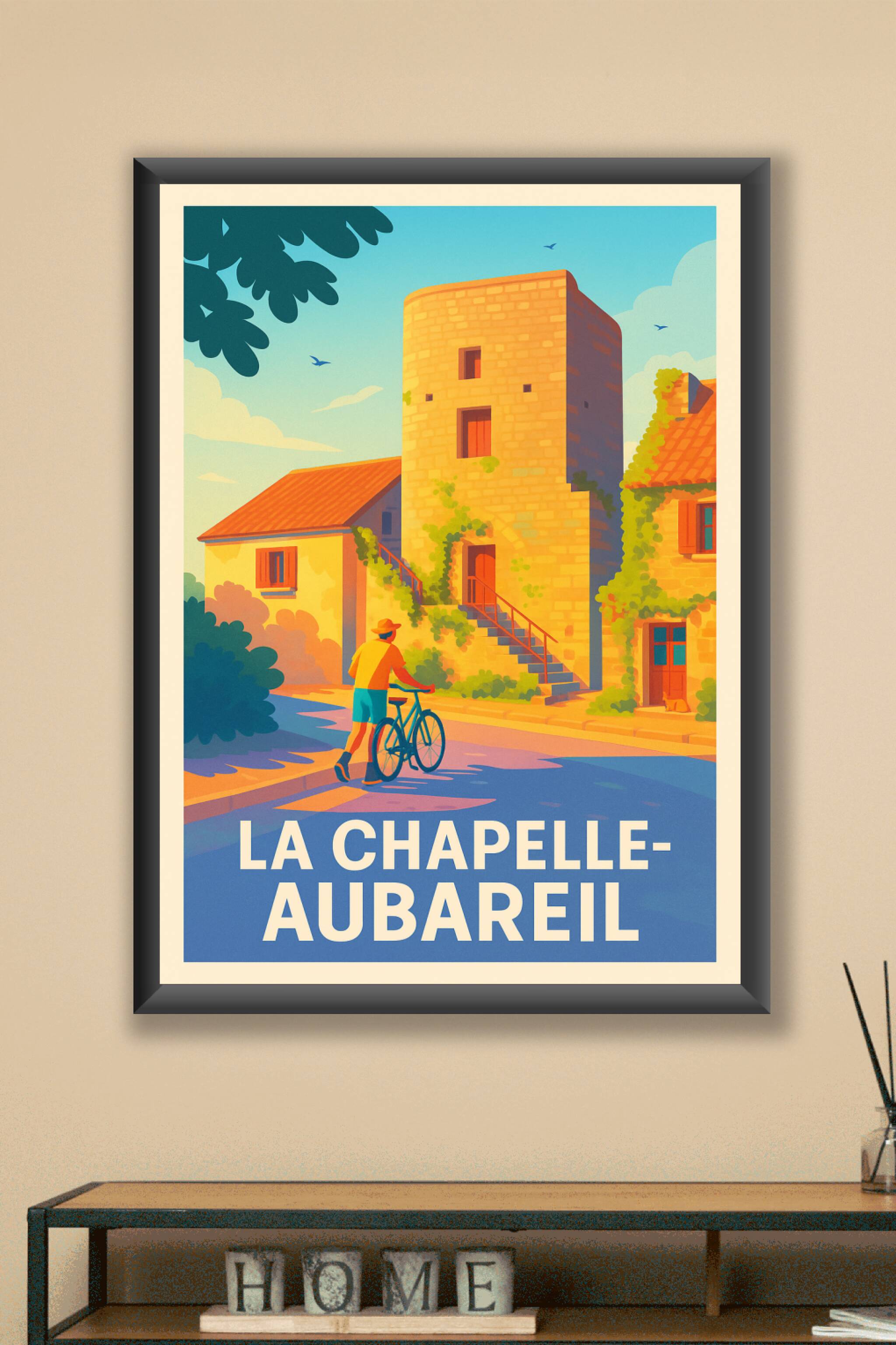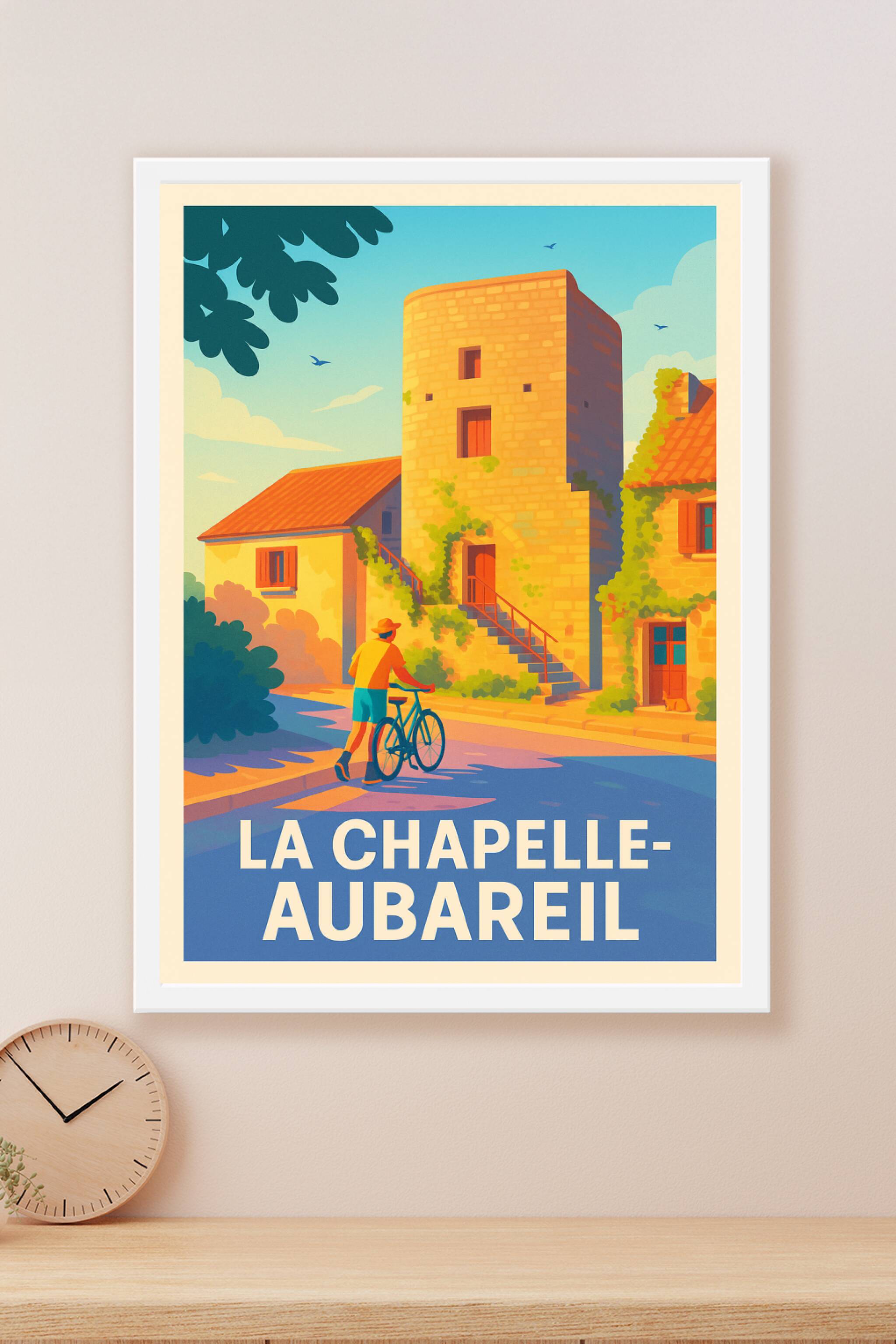 Découvrez le charme authentique de La Chapelle-Aubareil à travers cette affiche illustrée aux couleurs chaudes et lumineuses, qui capture l'essence...