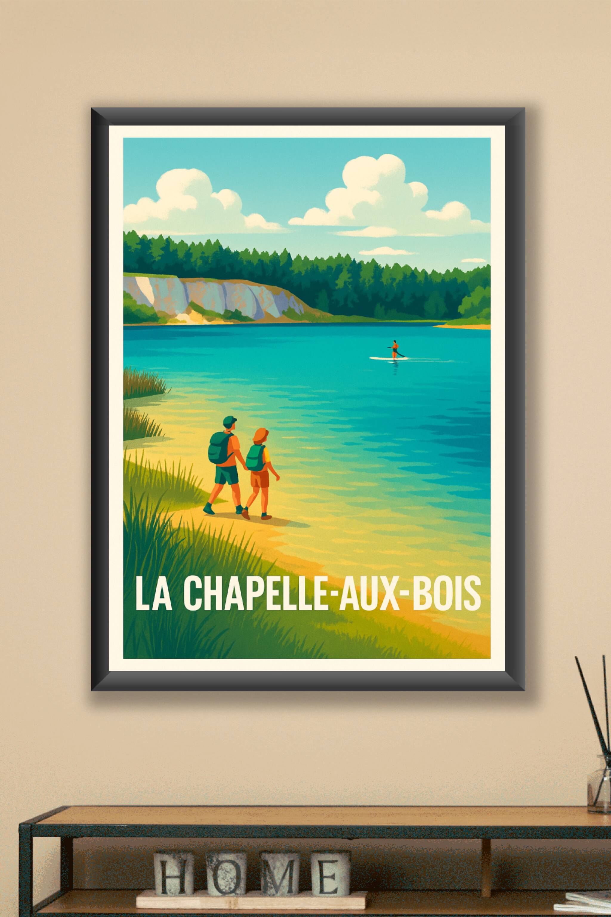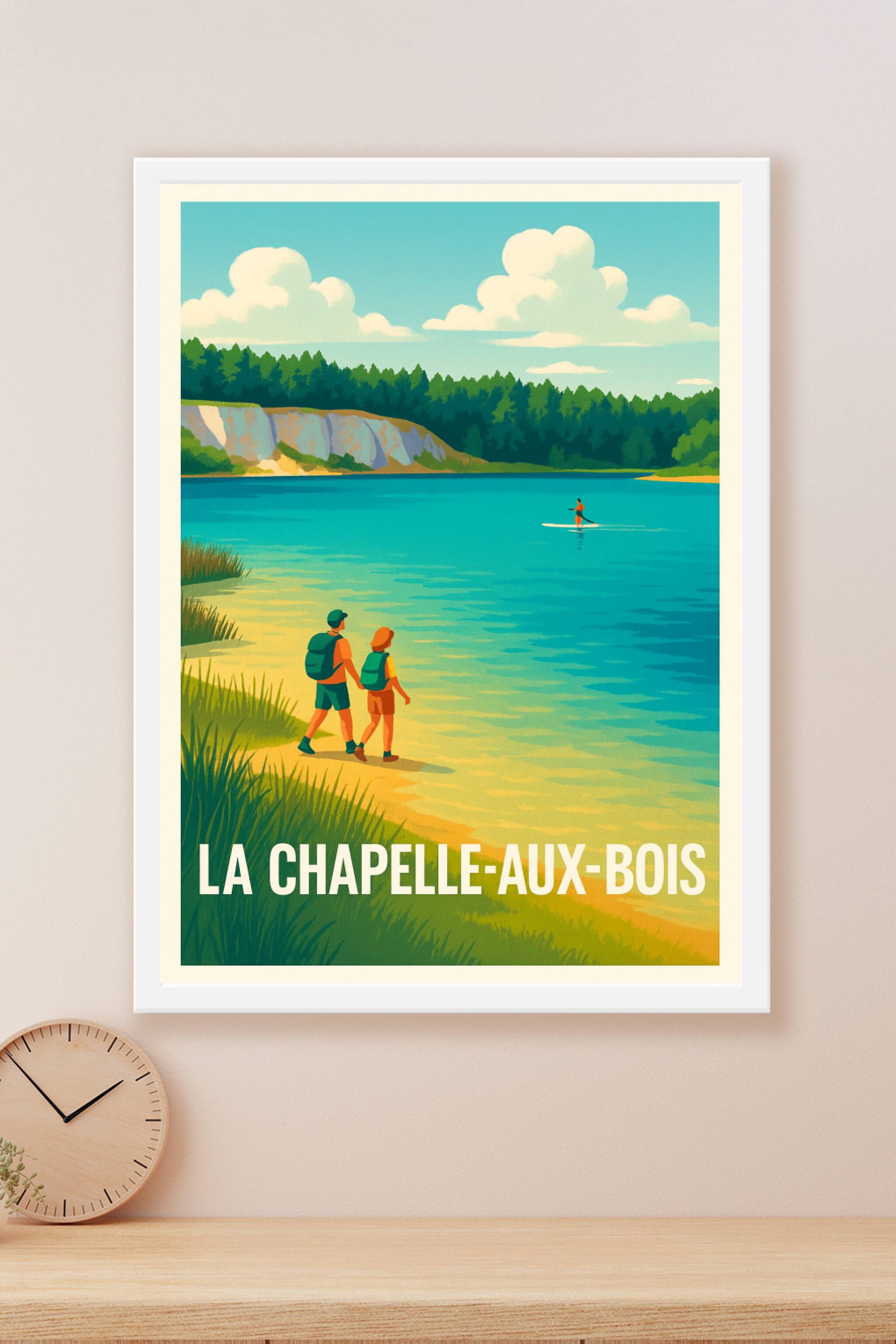 Découvrez la tranquillité et la beauté naturelle de La Chapelle-aux-Bois avec cette affiche vintage retravaillée dans un style rétro coloré. Le pos...