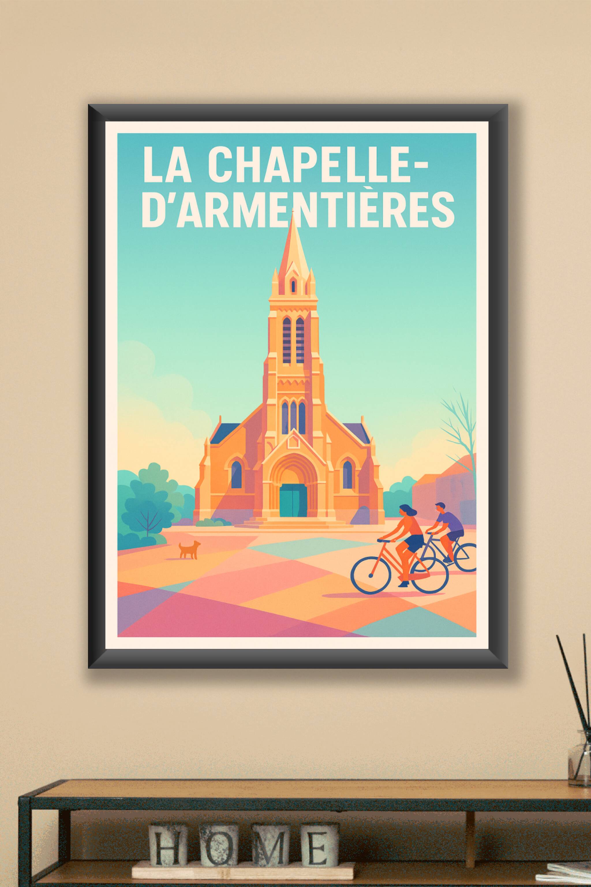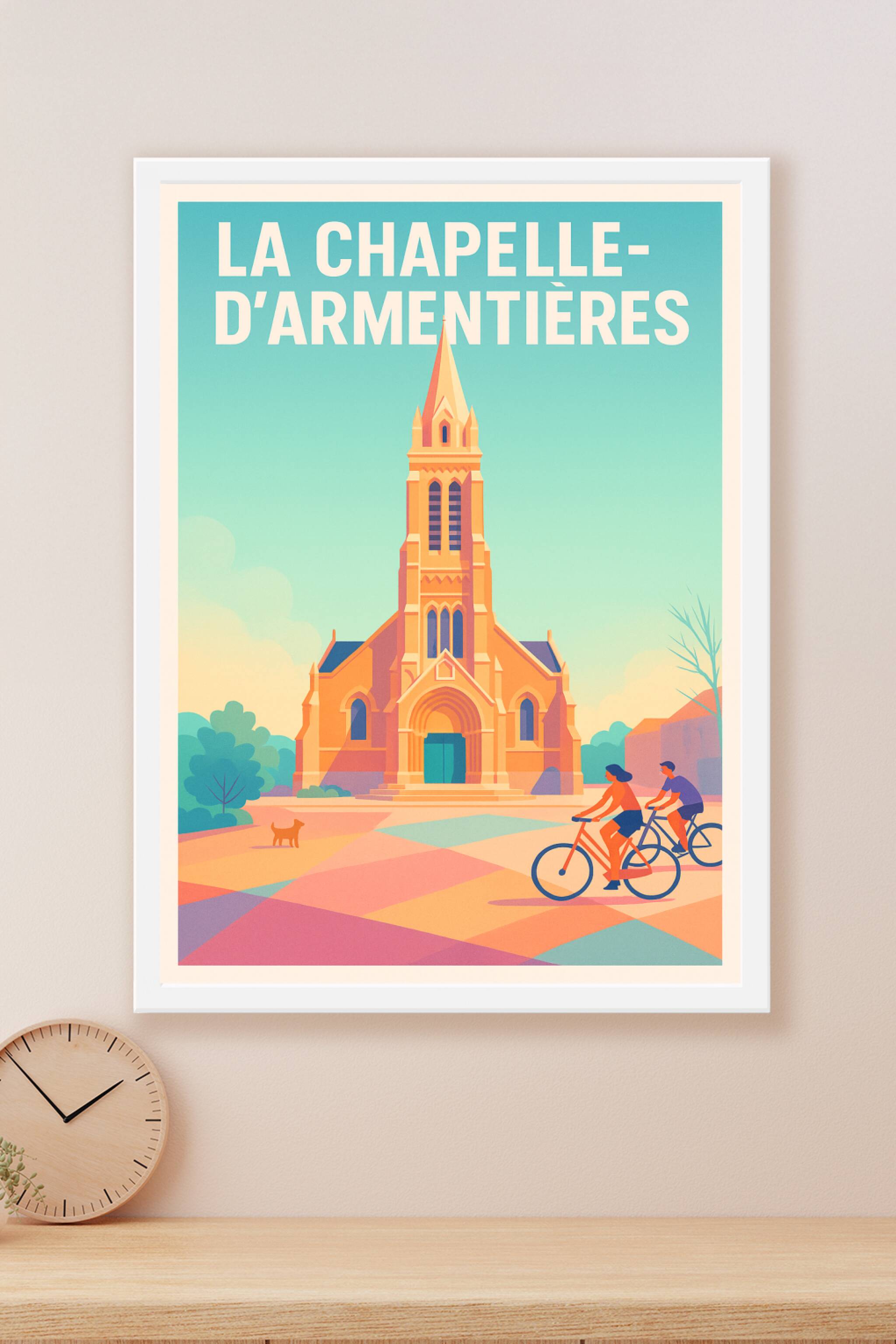Découvrez le charme tranquille de La Chapelle-d'Armentières avec cette affiche illustrée mettant en valeur son architecture remarquable, symbolisée...