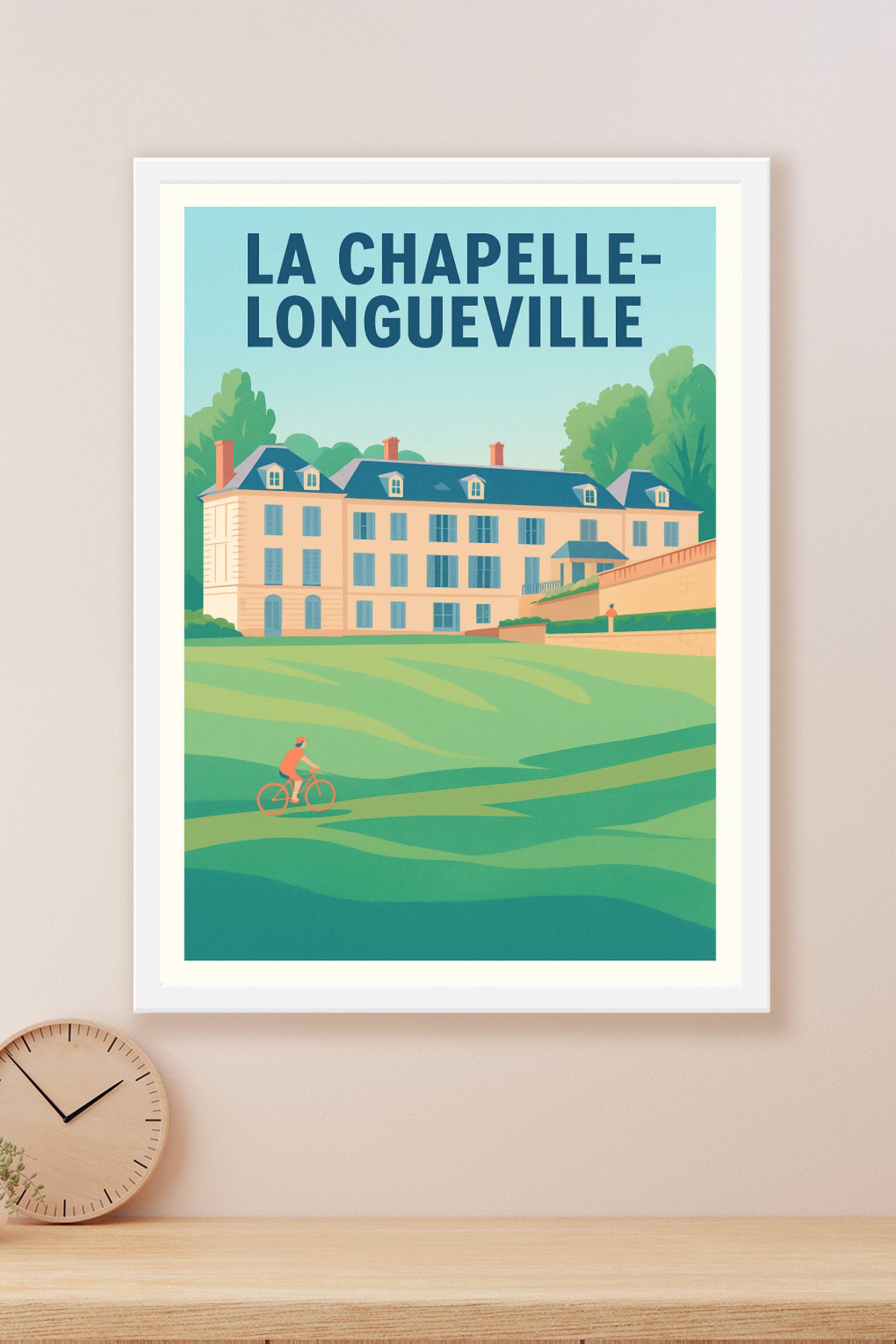 Découvrez la sérénité et le charme de La Chapelle-Longueville à travers cette affiche illustrée mettant en avant un magnifique domaine sur fond de ...