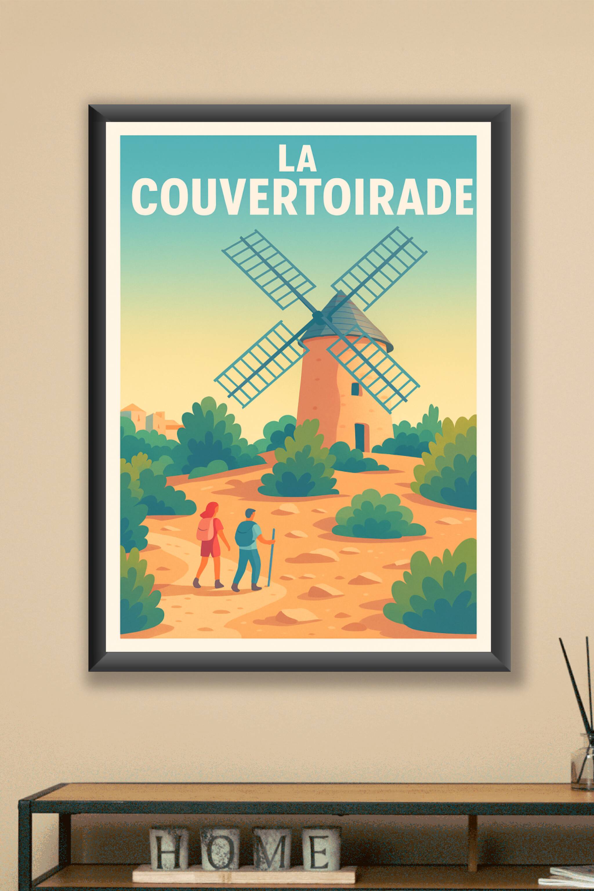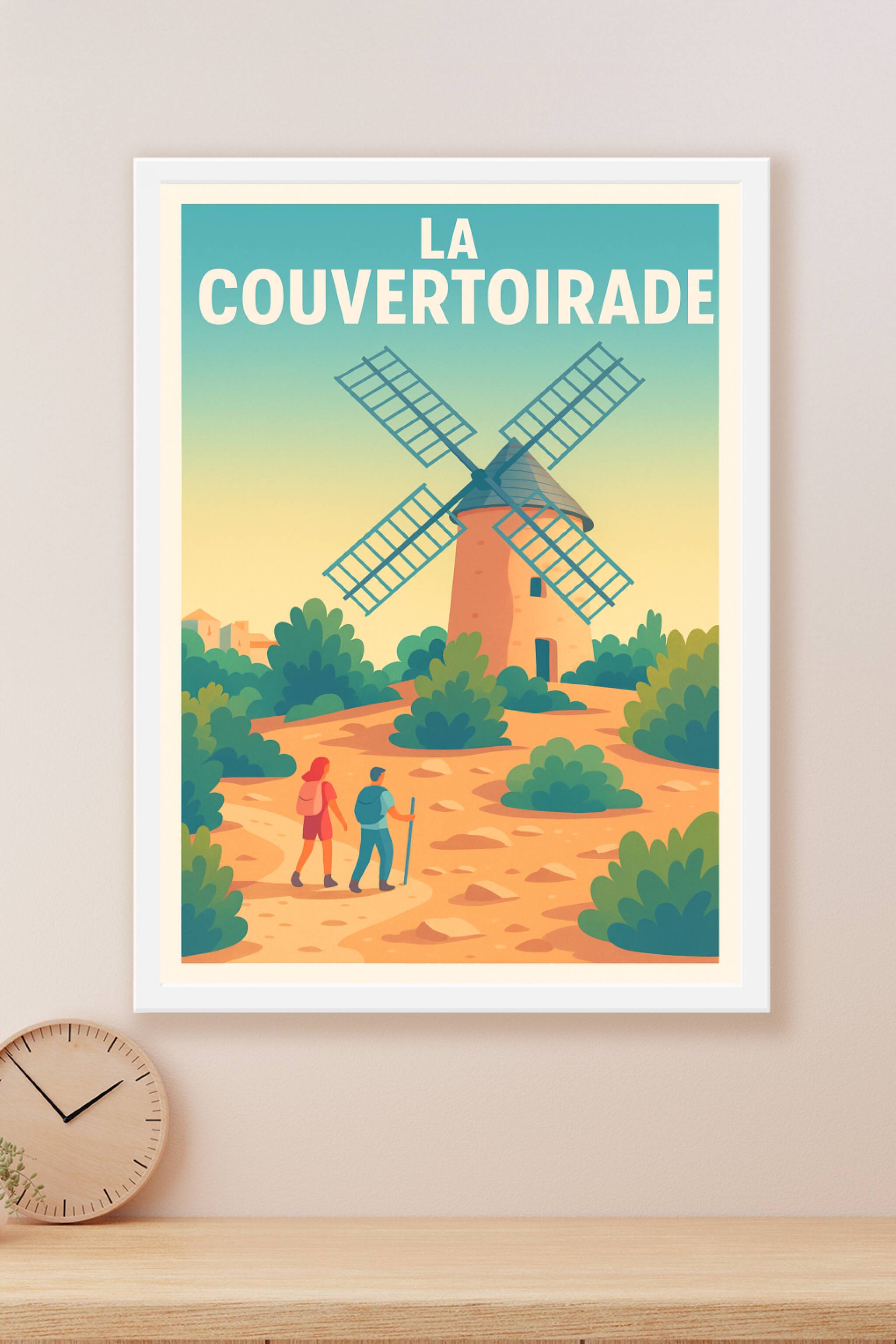 Découvrez la sérénité de La Couvertoirade avec cette affiche illustrée qui met en scène son célèbre moulin entouré de paysages naturels apaisants. ...
