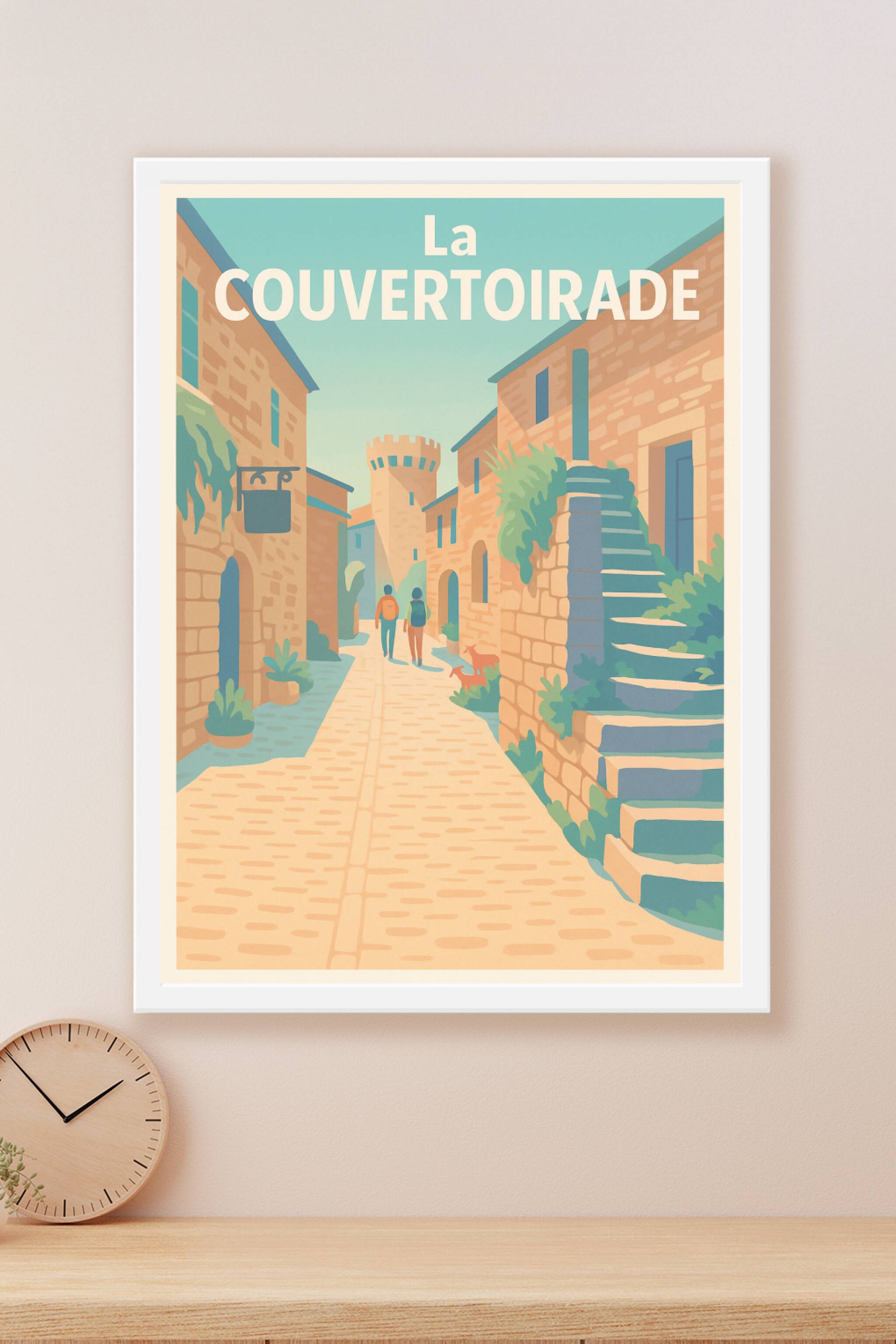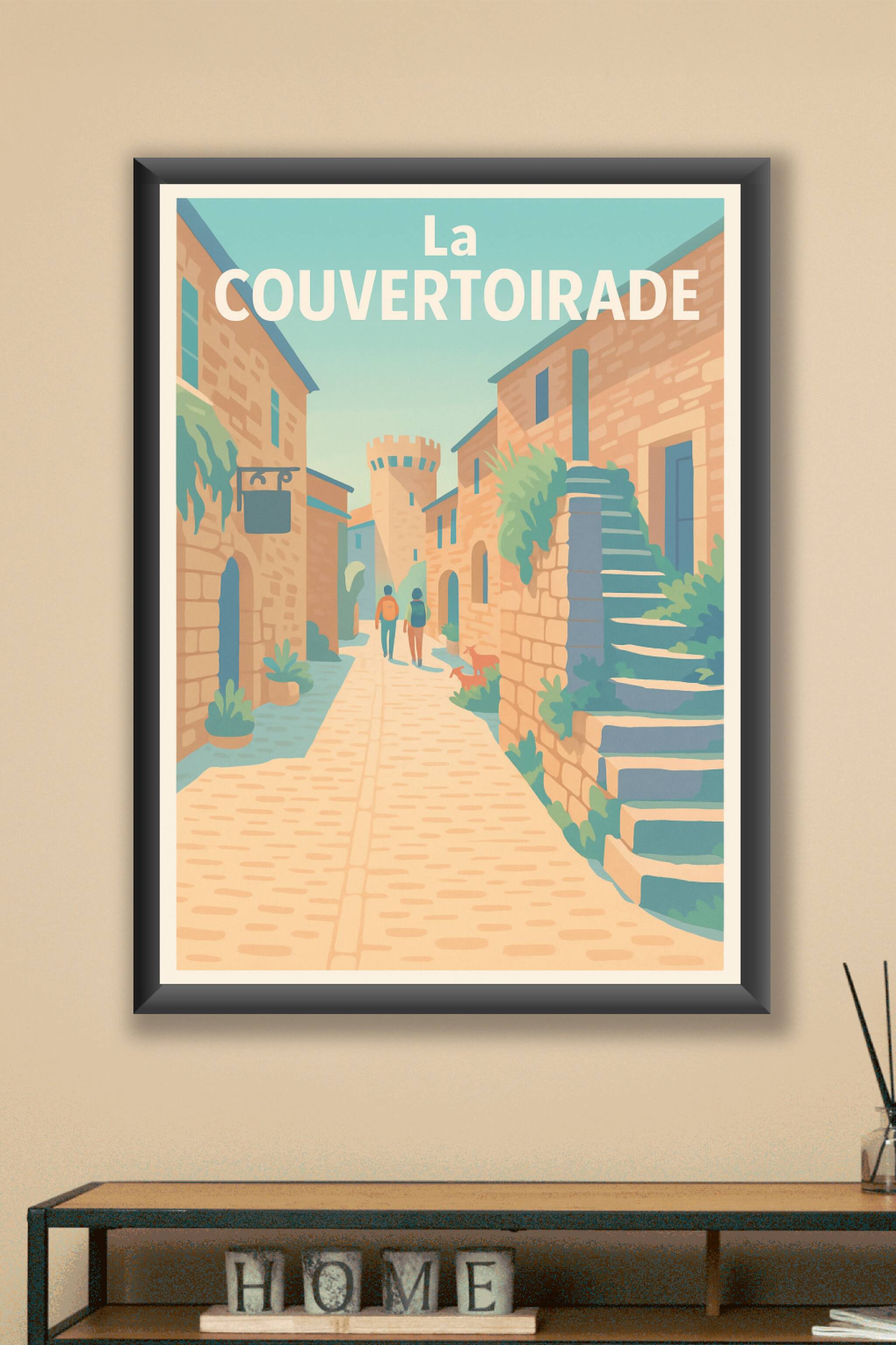 Découvrez l'atmosphère paisible et authentique de La Couvertorade à travers cette affiche illustrée aux couleurs douces et chaleureuses. Ce poster capture une ruelle pavée bordée de maisons en pierre, donnant vie à un lieu chargé d'histoire et de sérénité. Imprimée en tirage « Fine Art » sur papier 305g coton, cette affiche garantit une qualité d'impression exceptionnelle, avec un rendu des couleurs et des détails d'une grande finesse. Disponible en formats A1 à A4, avec ou sans cadre, elle s'adapte parfaitement à tous les styles de décoration intérieure. Apportez une touche vintage et élégante à votre intérieur ou offrez un cadeau unique aux amoureux du patrimoine et des beaux villages.
