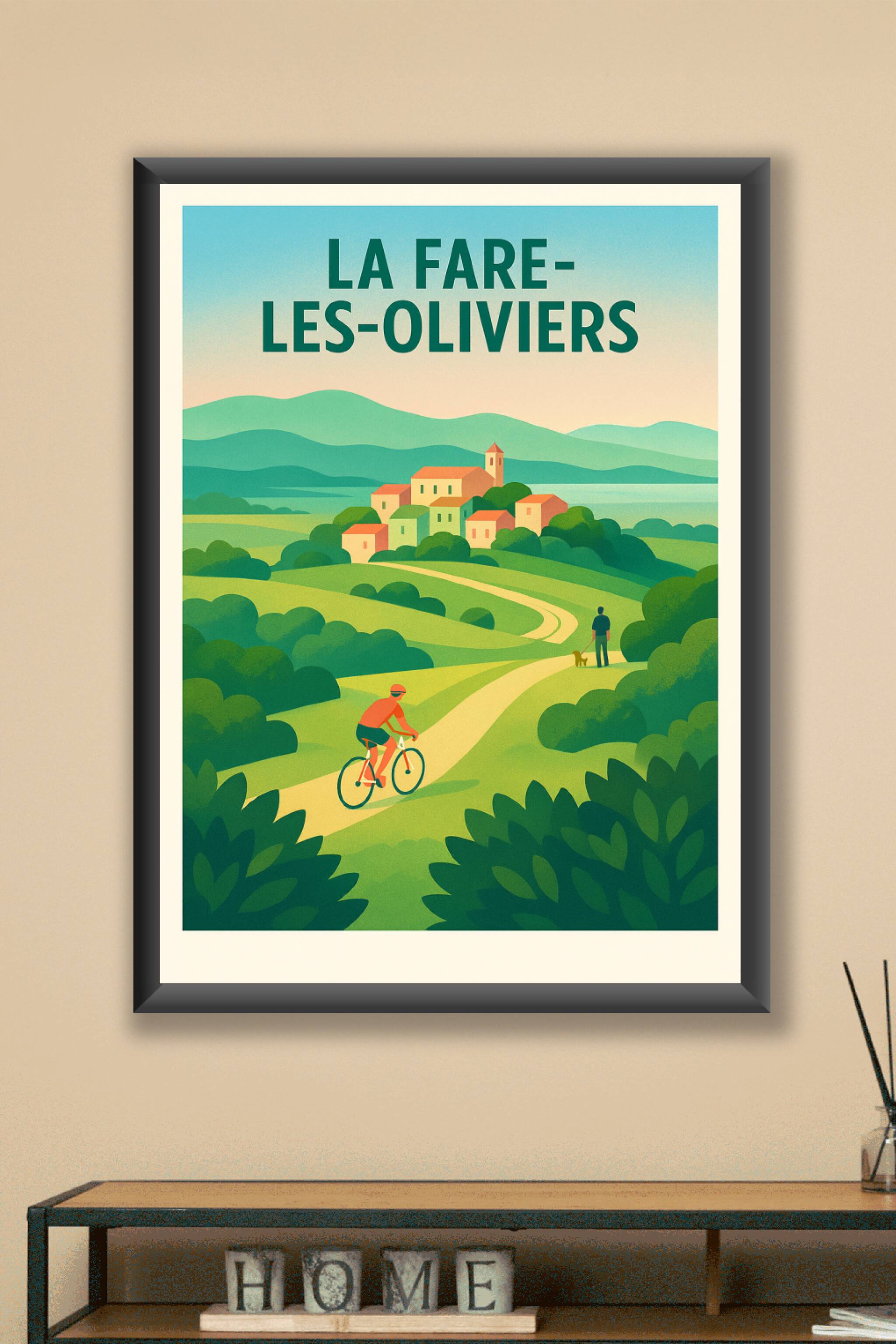 Découvrez la douceur de vivre de La Fare-les-Oliviers à travers cette affiche illustrée au style vintage et apaisant. Ce poster met en scène les paysages vallonnés, les maisons colorées et la nature omniprésente de cette charmante commune provençale, idéale pour les amateurs de balades à vélo et de randonnées paisibles. Imprimé en tirage "Fine Art" sur papier coton 305g pour une qualité d'impression irréprochable, ce poster est disponible en formats A1 à A4, avec ou sans cadre selon vos envies. Apportez une touche de sérénité et de nature à votre décoration intérieure avec cette affiche d'exception, fabriquée en France et pensée pour les passionnés de lieux authentiques.