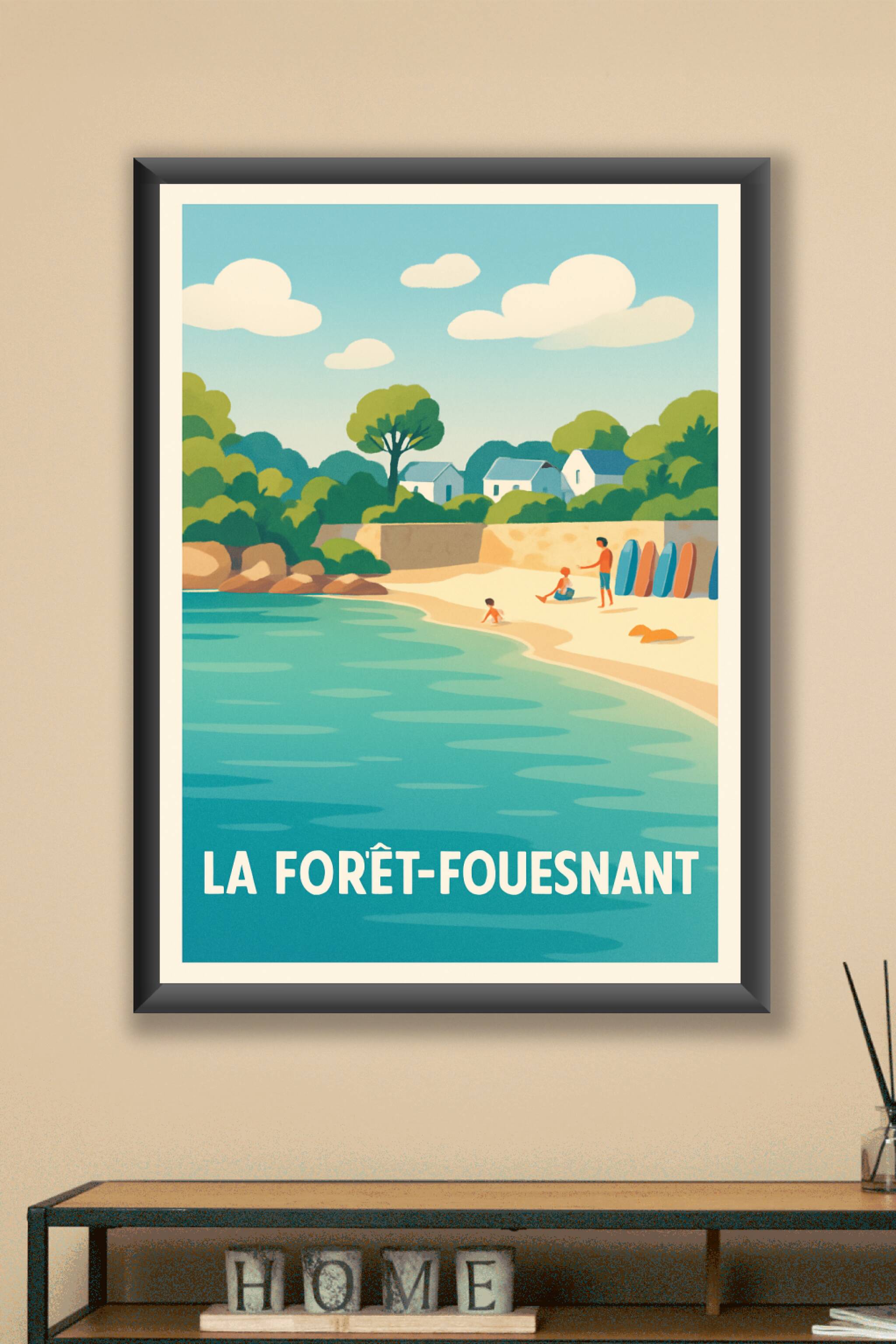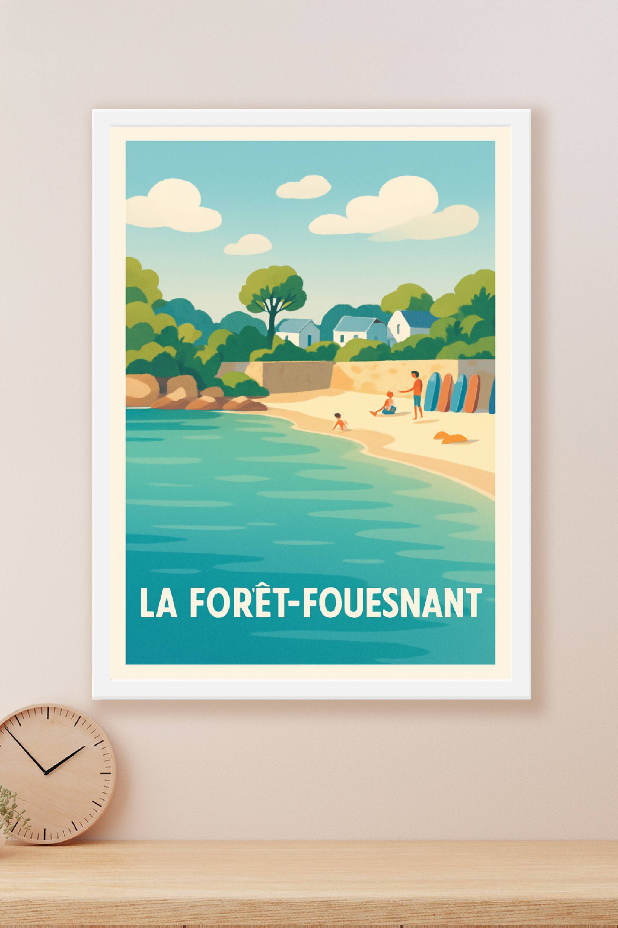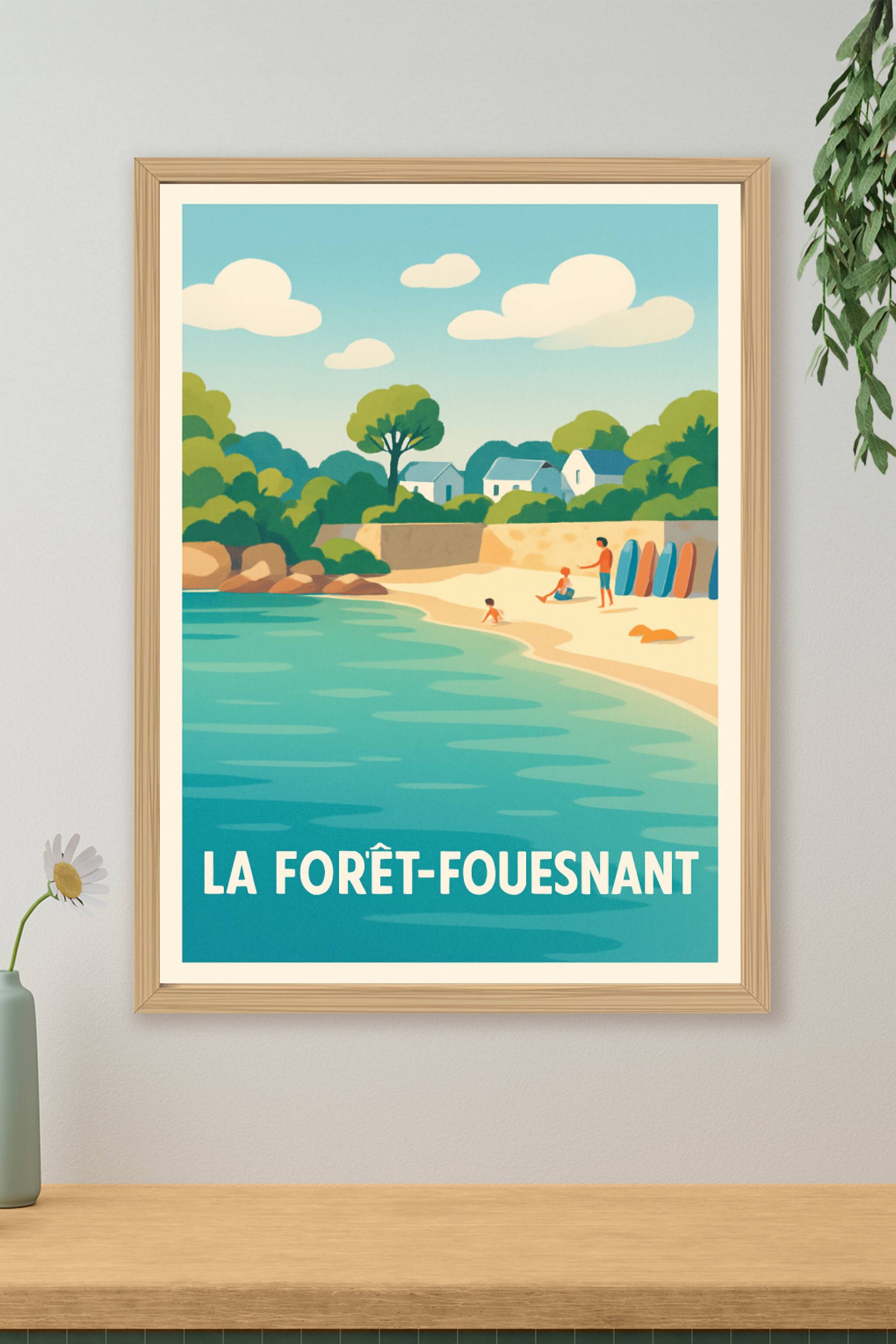Découvrez la douceur de vivre de La Forêt-Fouesnant avec cette affiche illustrée qui capture l'ambiance paisible de ses plages et de ses maisons ty...
