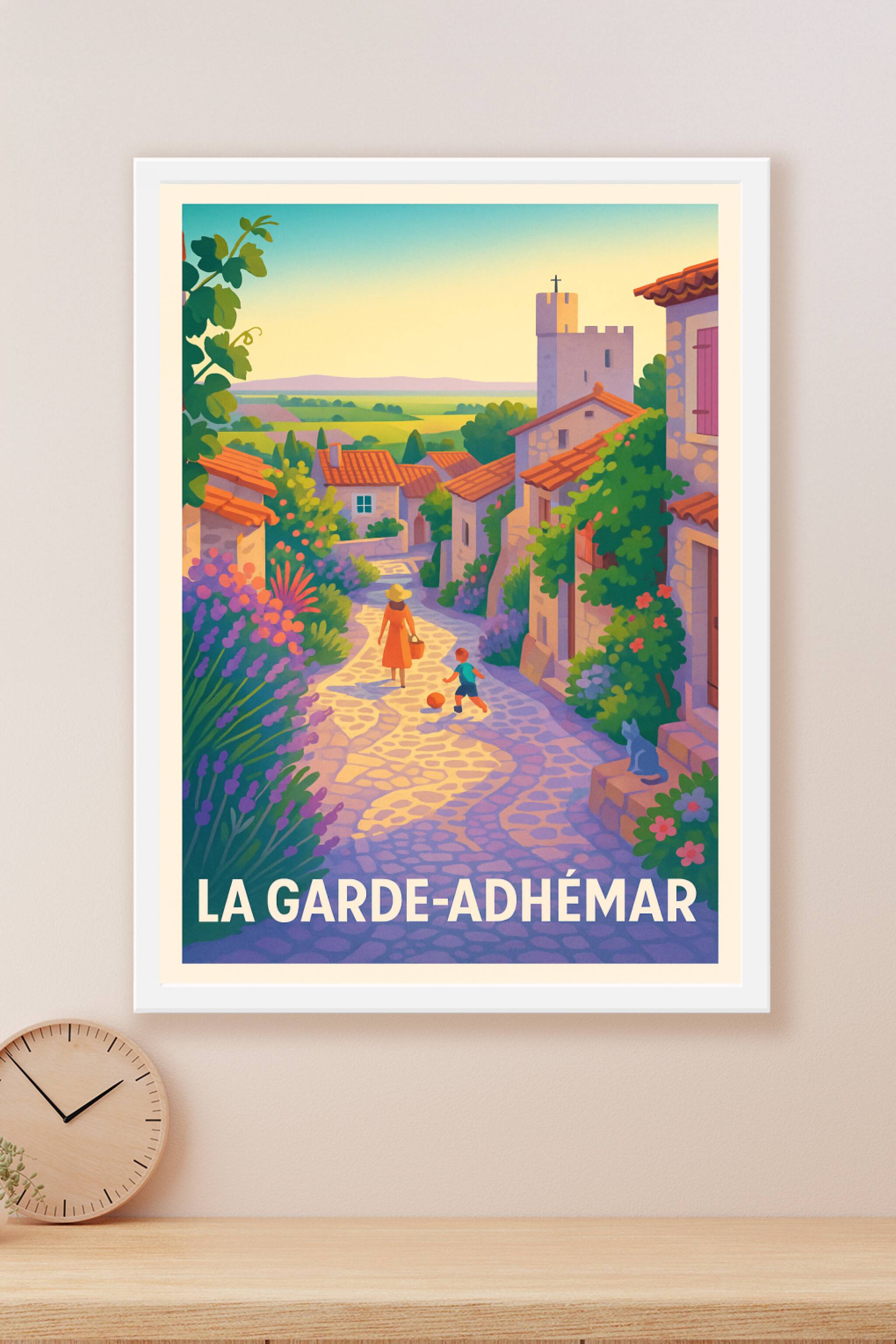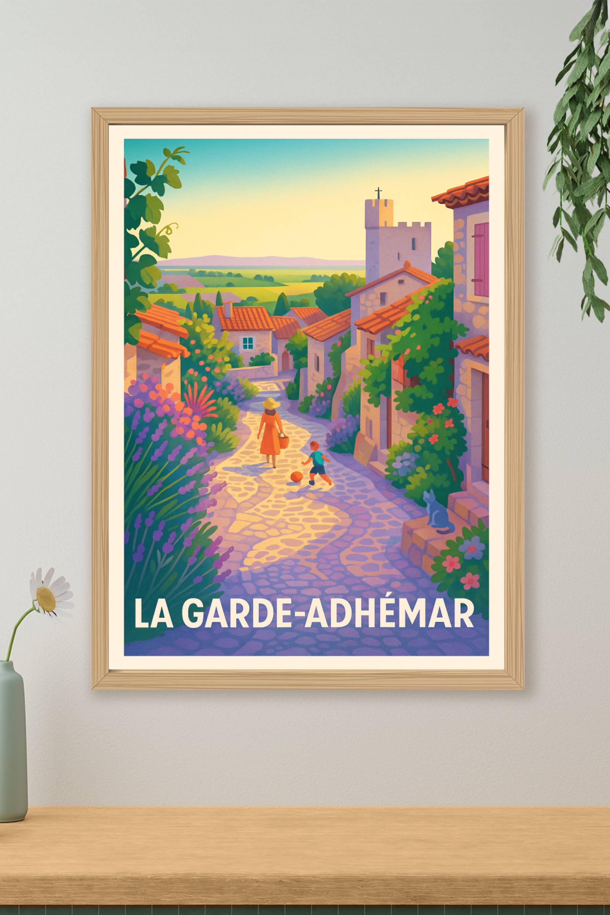 Apportez une touche de douceur et d'authenticité avec cette affiche illustrée de La Garde-Adhémar, petit village provençal aux ruelles pavées et au...