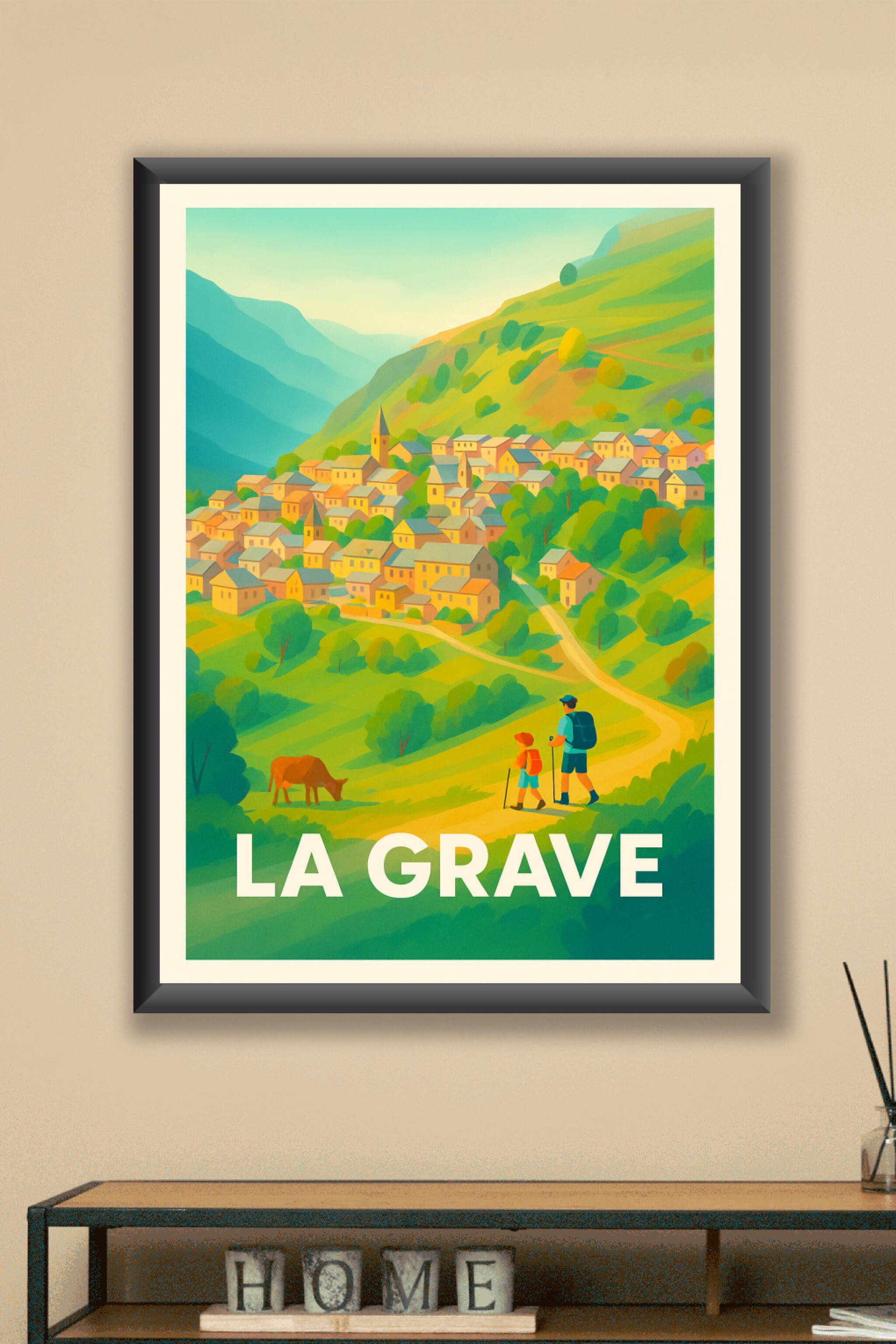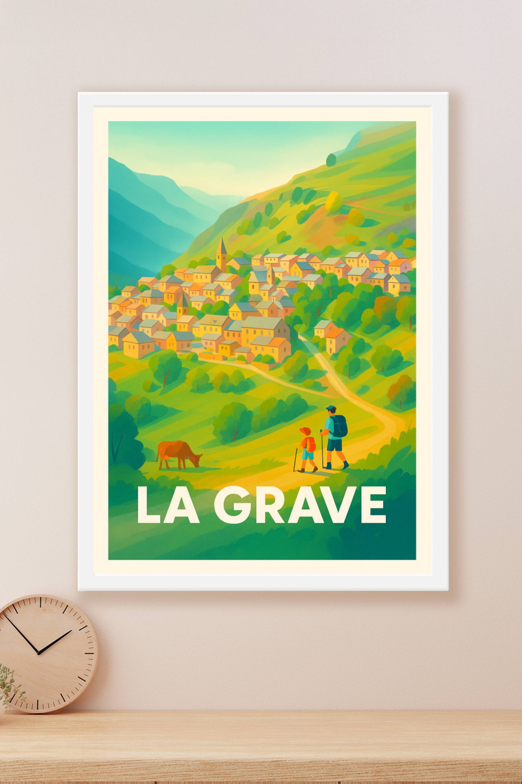 Découvrez la beauté authentique de La Grave avec cette affiche au style doux et coloré, qui capture l'esprit paisible et naturel de ce village de m...