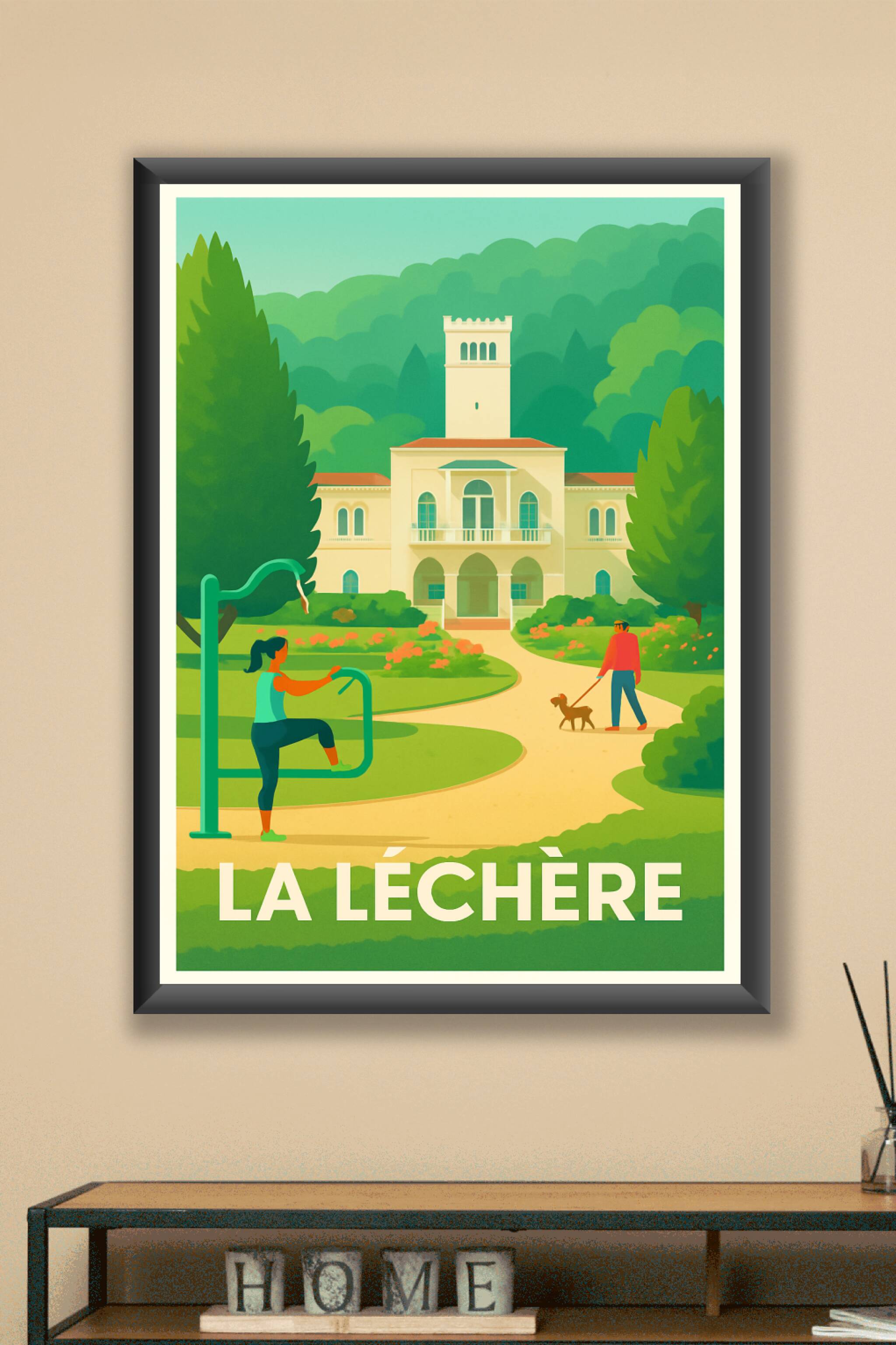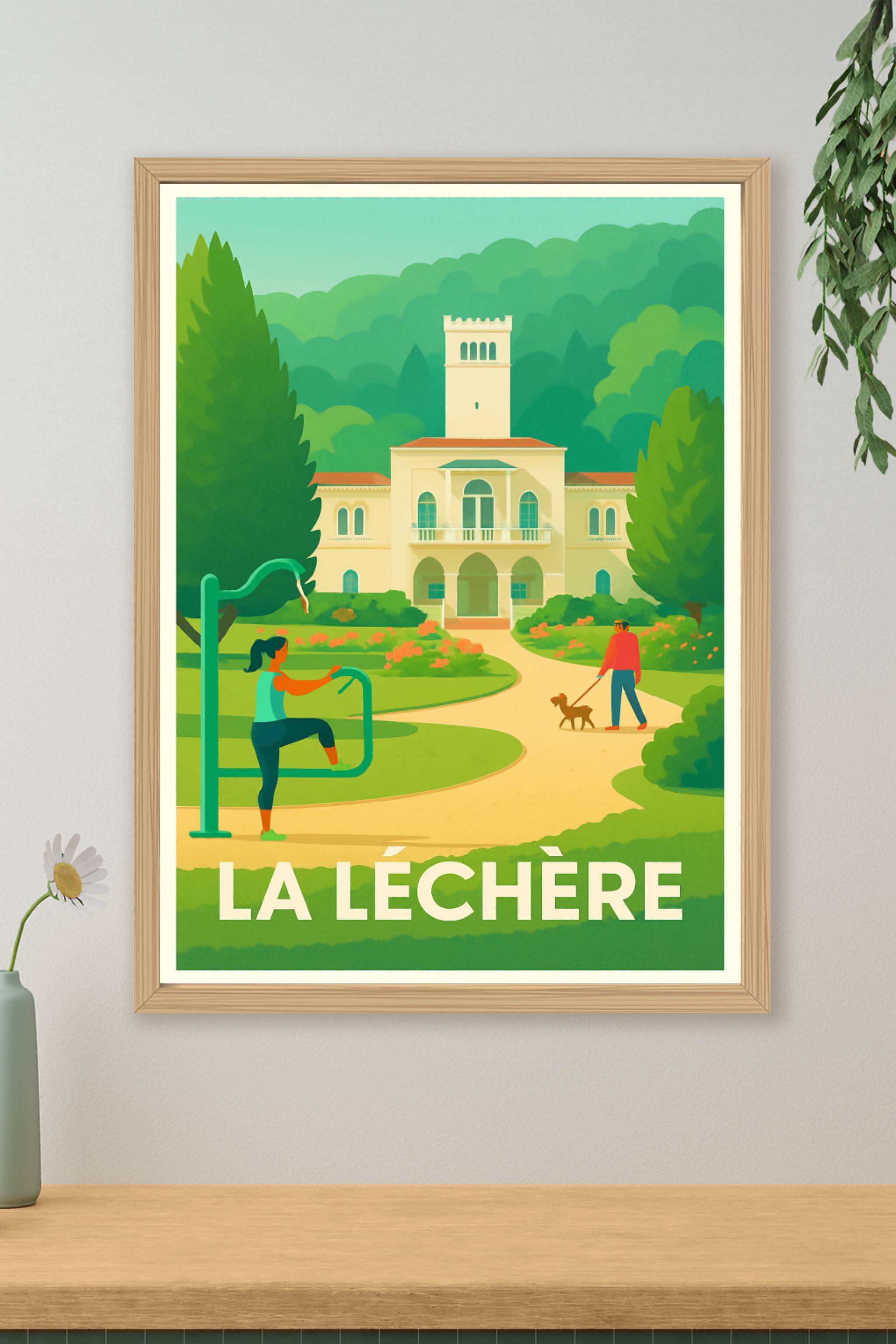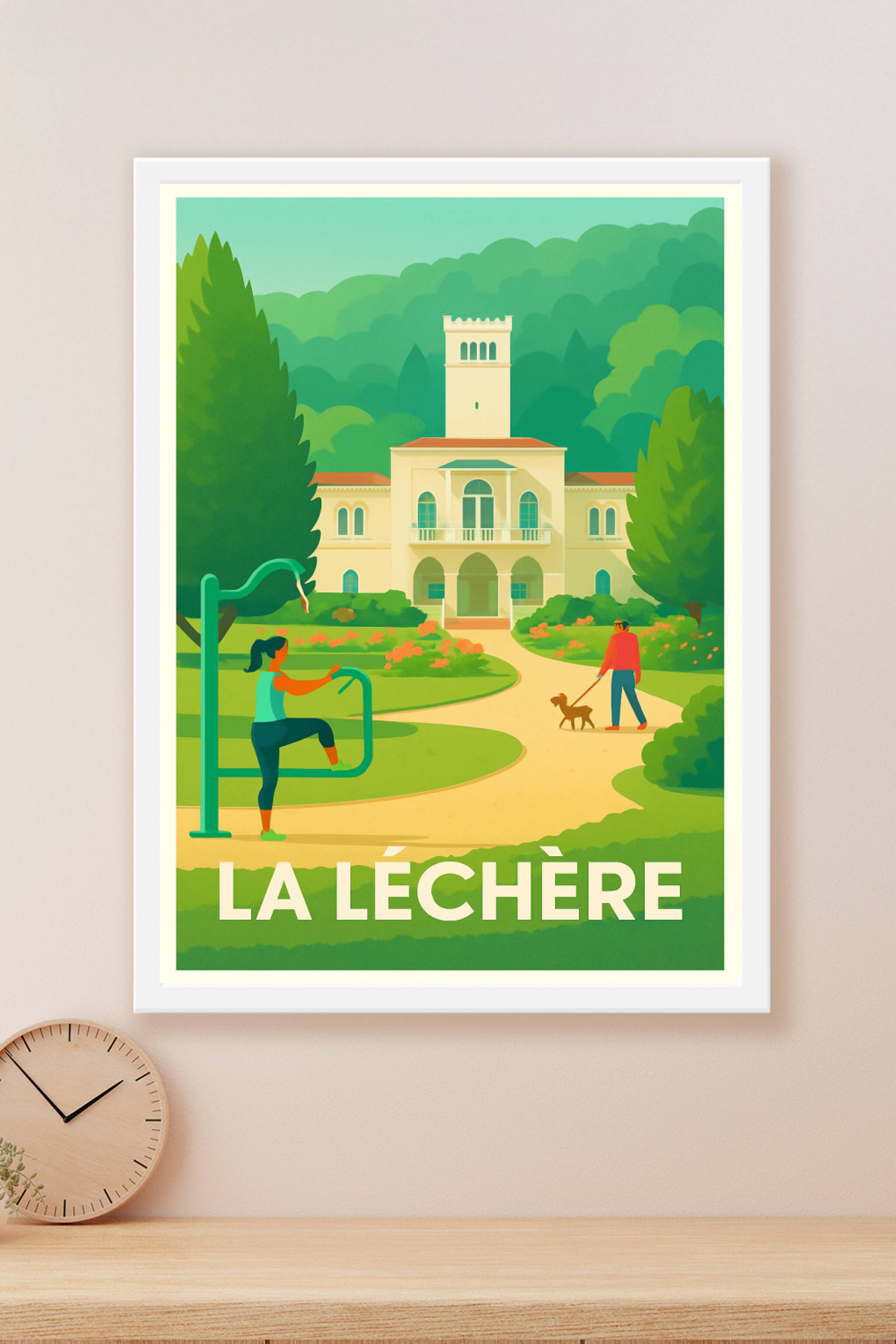 Découvrez La Léchère à travers cette magnifique affiche illustrée qui capture la sérénité de ses espaces verts et l’élégance de son architecture tr...