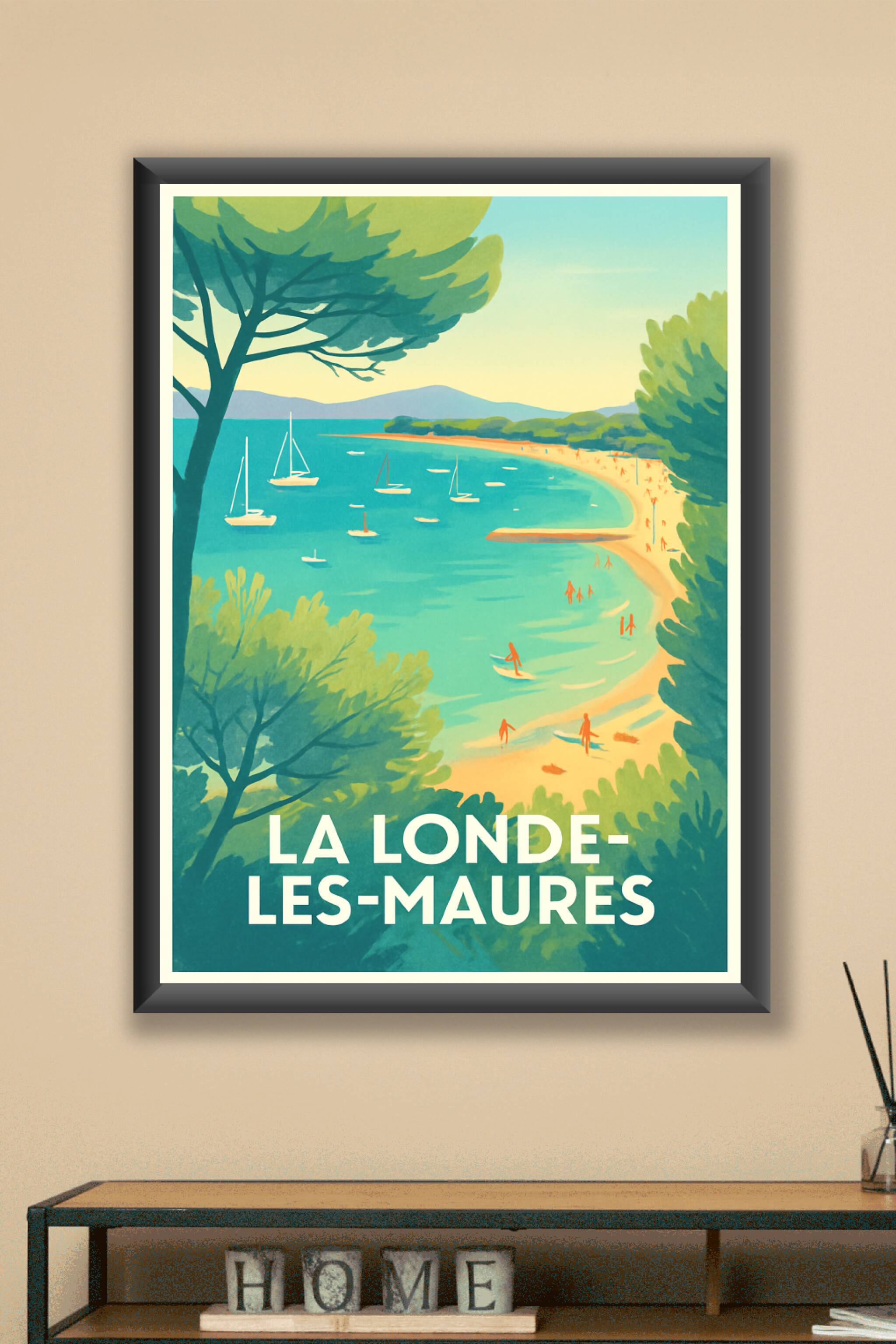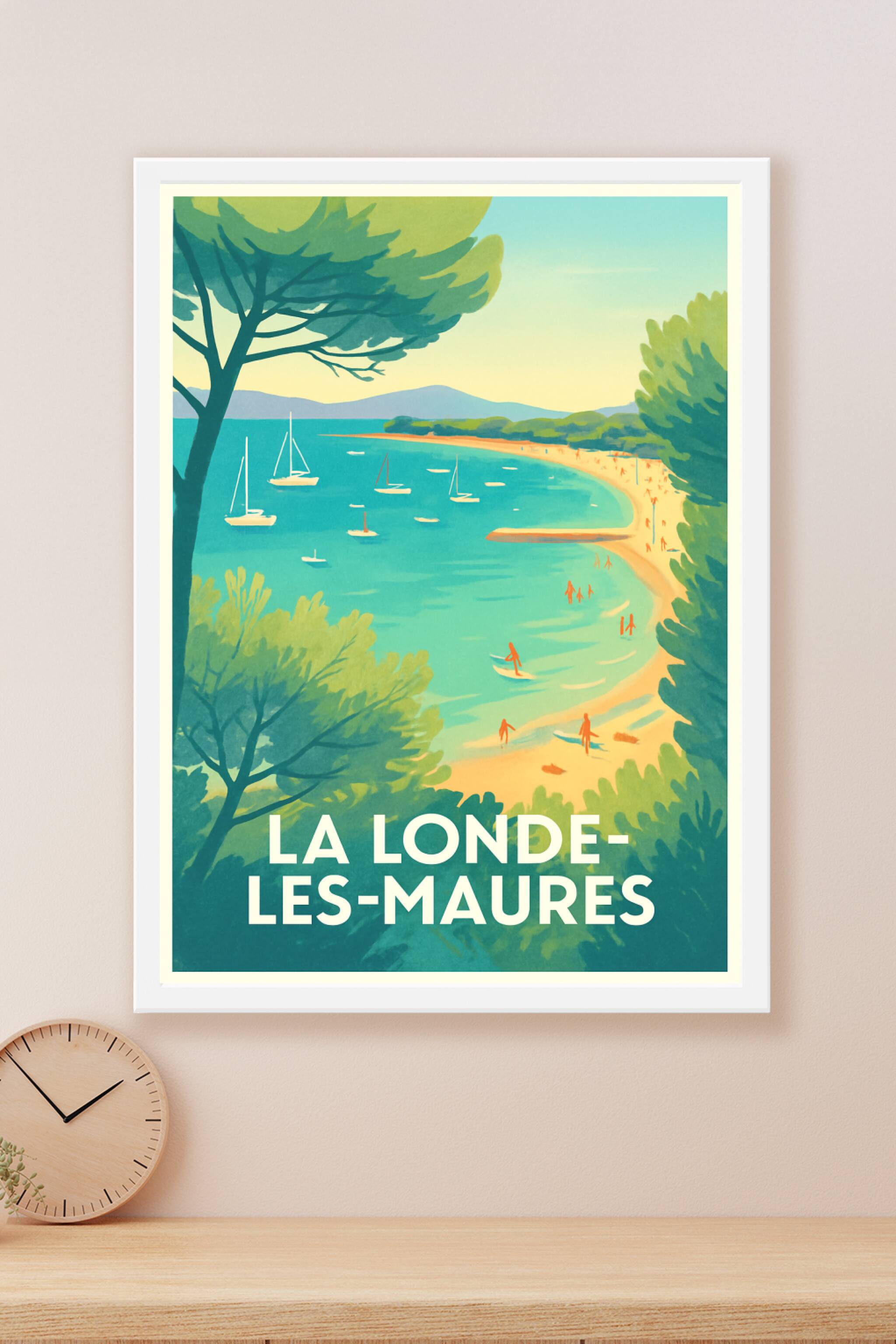 Découvrez la beauté apaisante de La Londe-les-Maures avec cette affiche délicatement illustrée, qui capture la douceur de vivre au bord de la Médit...