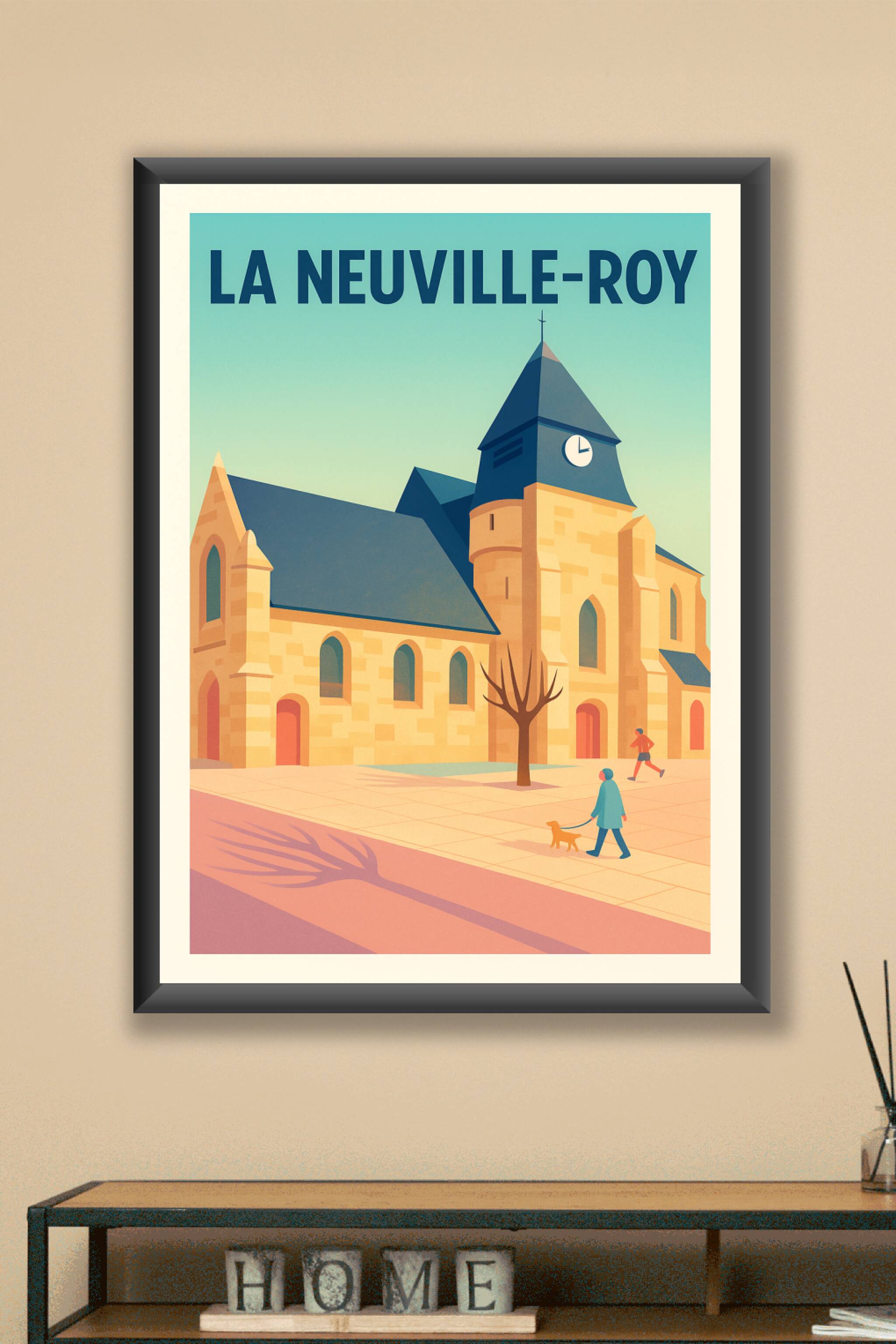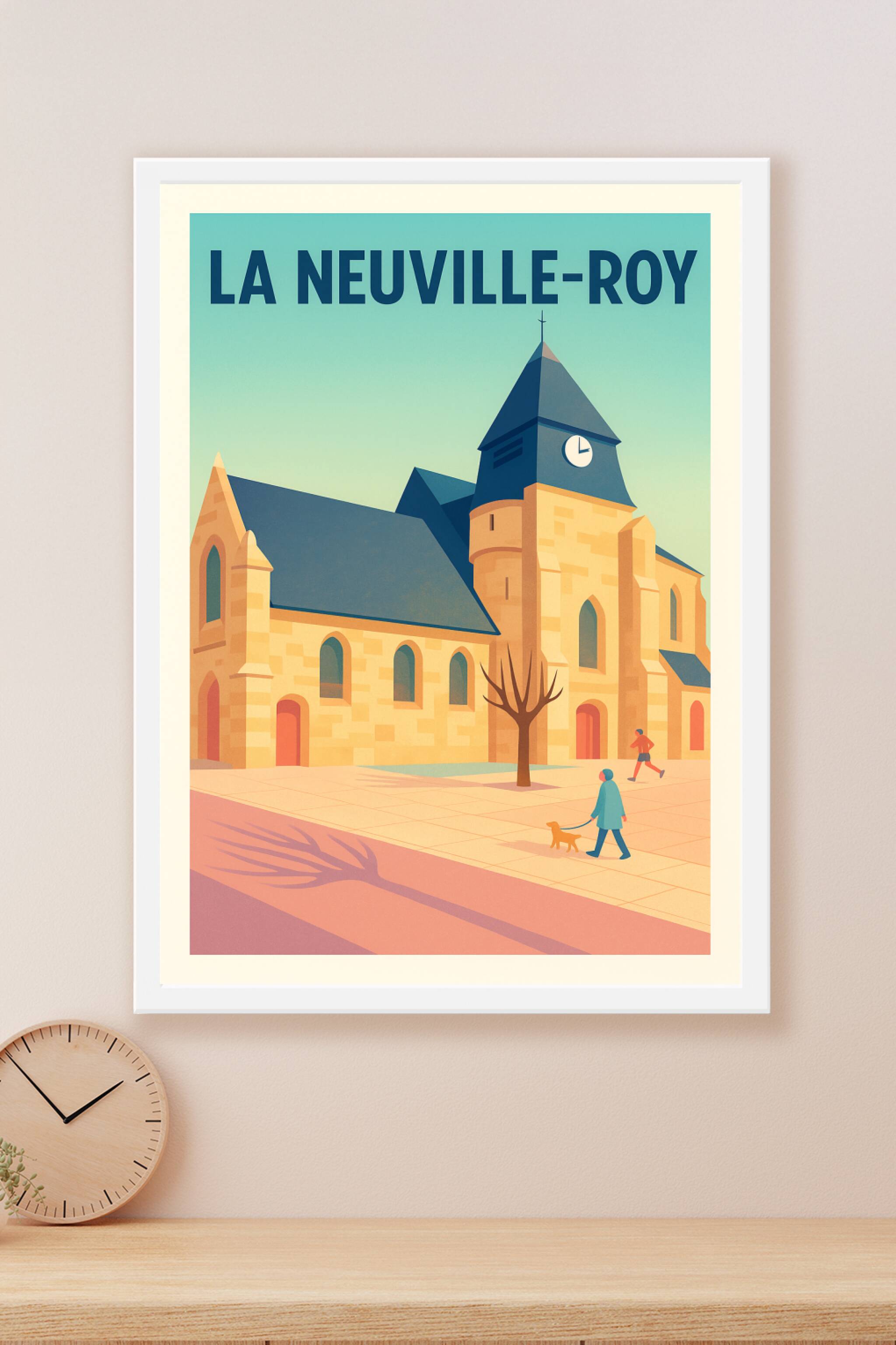 Découvrez l’élégance paisible de La Neuville-Roy à travers cette affiche illustrée mettant en avant son architecture typique et ses ambiances de vie apaisées. Les tons doux et la composition épurée font de ce poster un élément de décoration raffiné.L’impression Fine Art sur papier 305g coton garantit des couleurs profondes et une tenue exceptionnelle avec une grande précision des détails. Disponible en formats A1, A2, A3 et A4, cette affiche peut être commandée avec ou sans cadre selon vos envies, pour s'intégrer harmonieusement à votre intérieur.Apportez la douceur et l’authenticité de La Neuville-Roy chez vous grâce à ce poster de qualité premium, une idée cadeau parfaite ou un souvenir unique de cette charmante localité.
