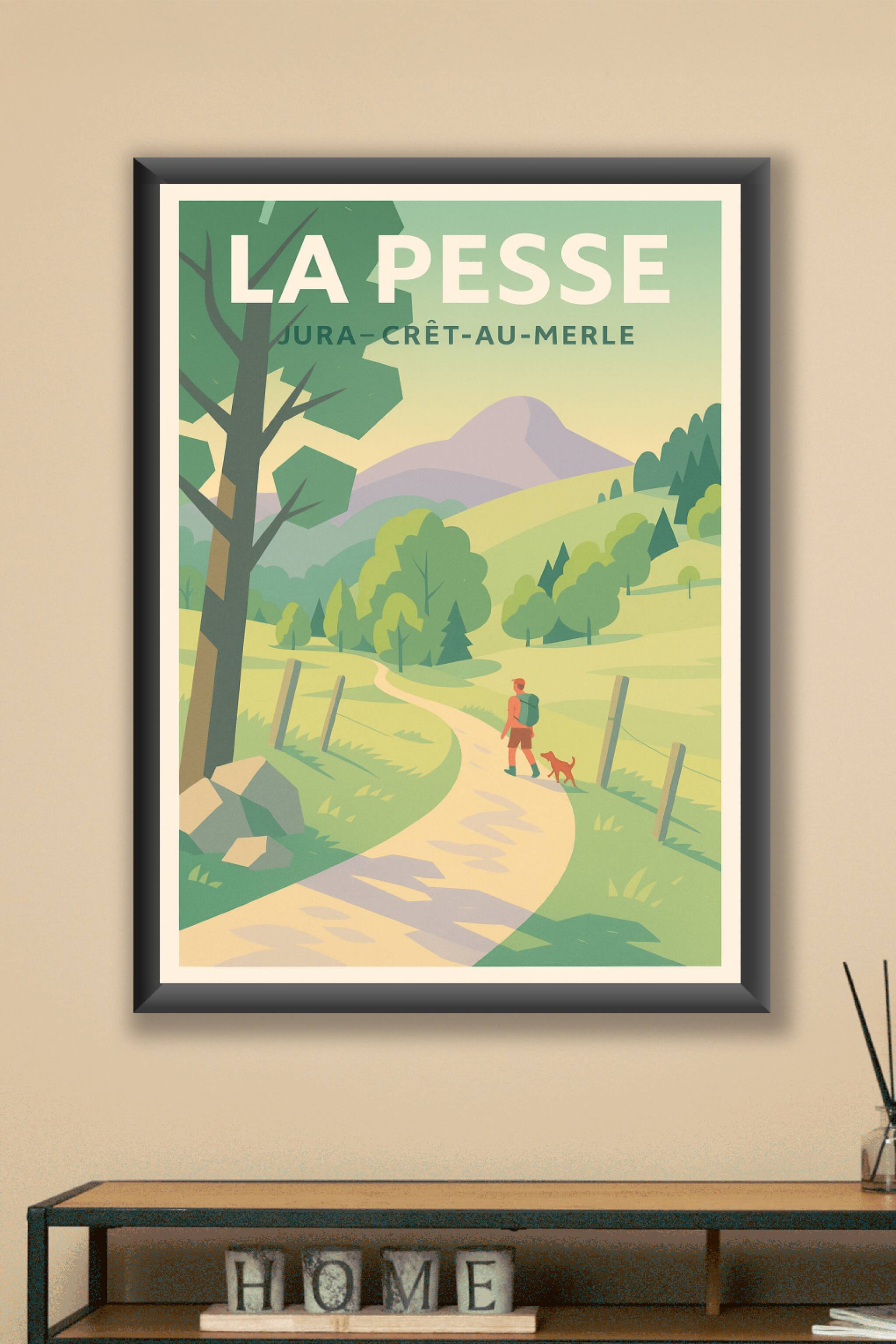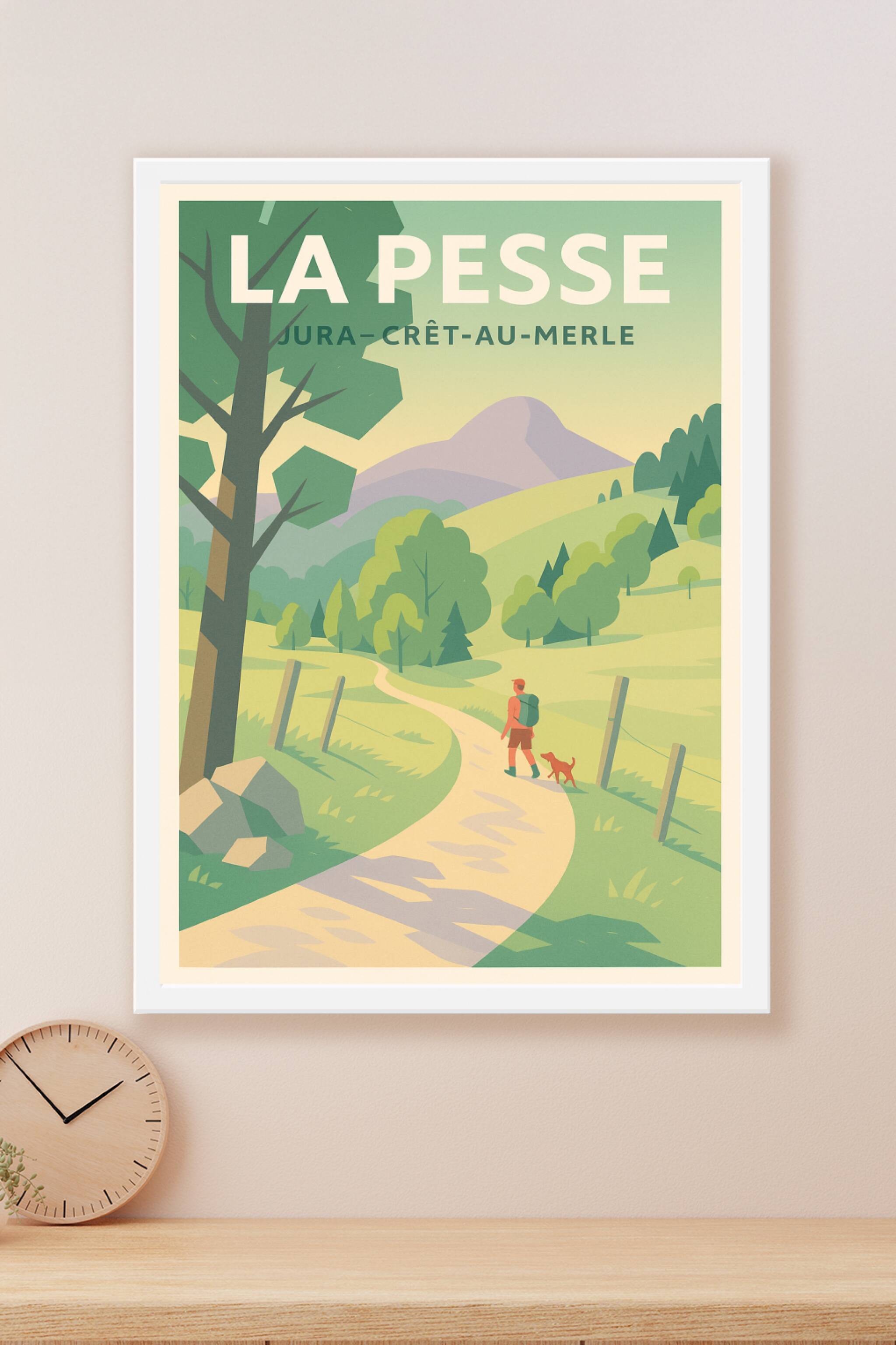 Découvrez la beauté naturelle et apaisante de La Pesse, nichée dans le Jura, à travers cette affiche pleine de douceur et de sérénité. Illustrant u...