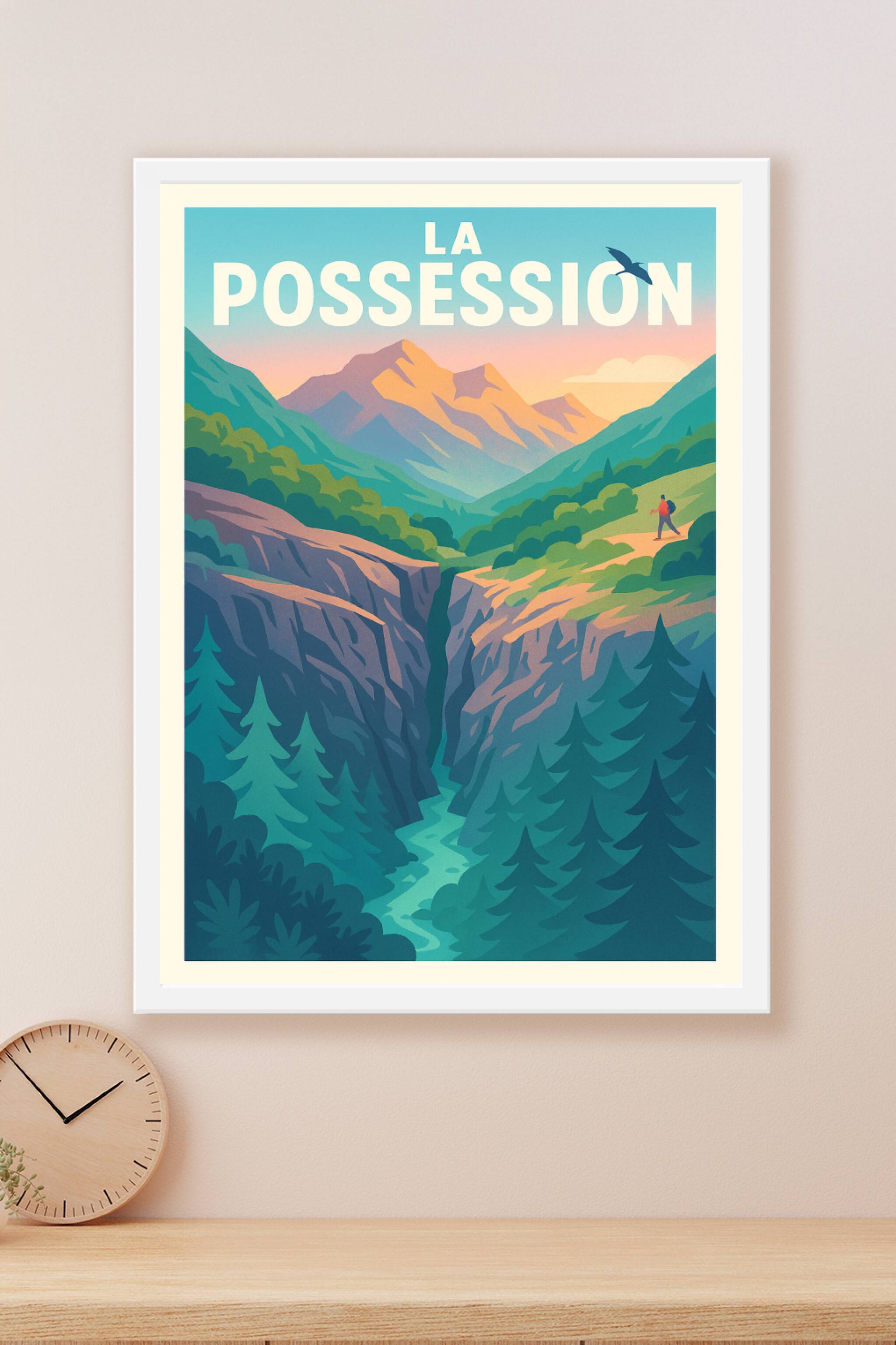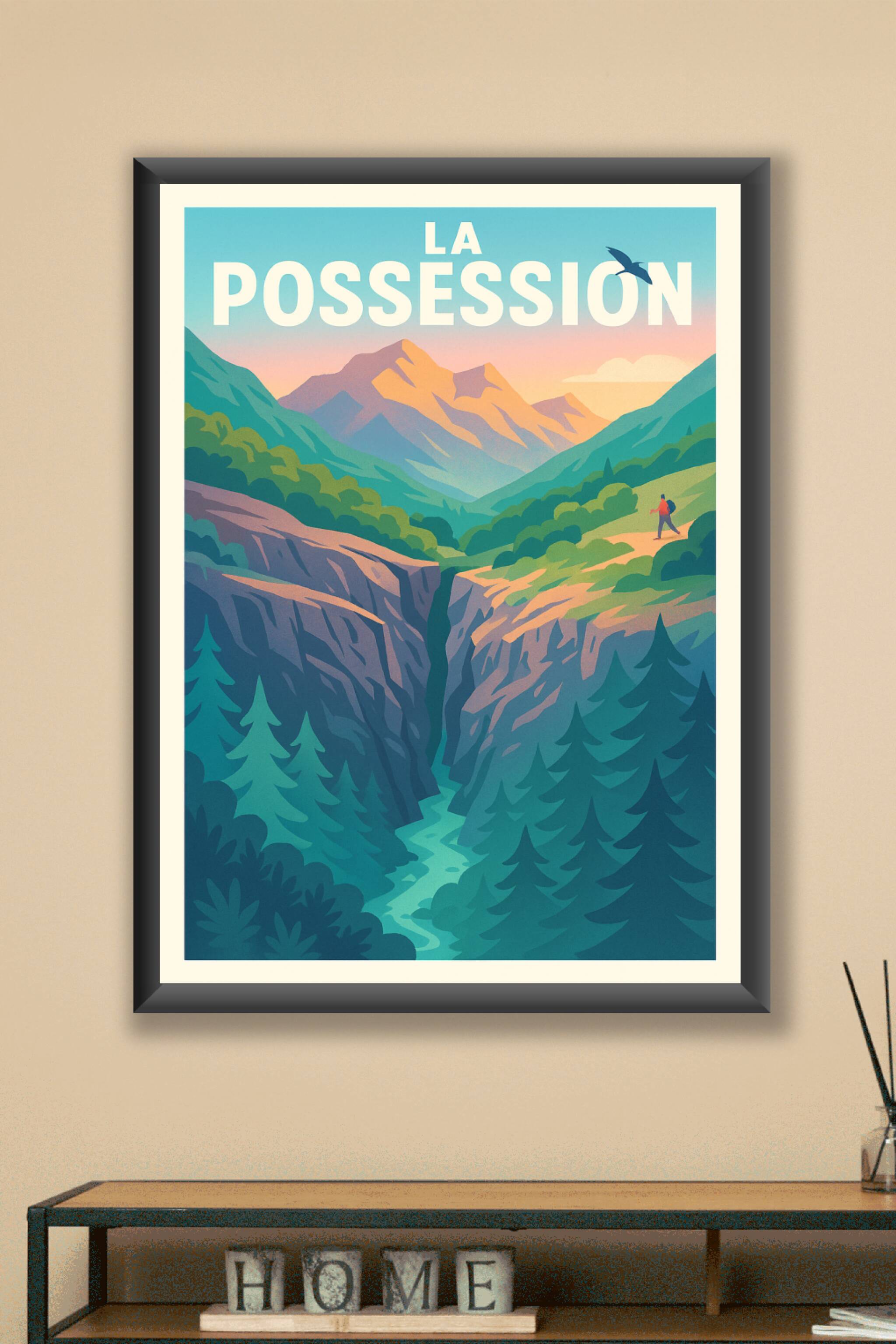 Découvrez la beauté sauvage et apaisante de La Possession capturée dans cette affiche illustrée aux couleurs douces et harmonieuses. Cette scène mo...