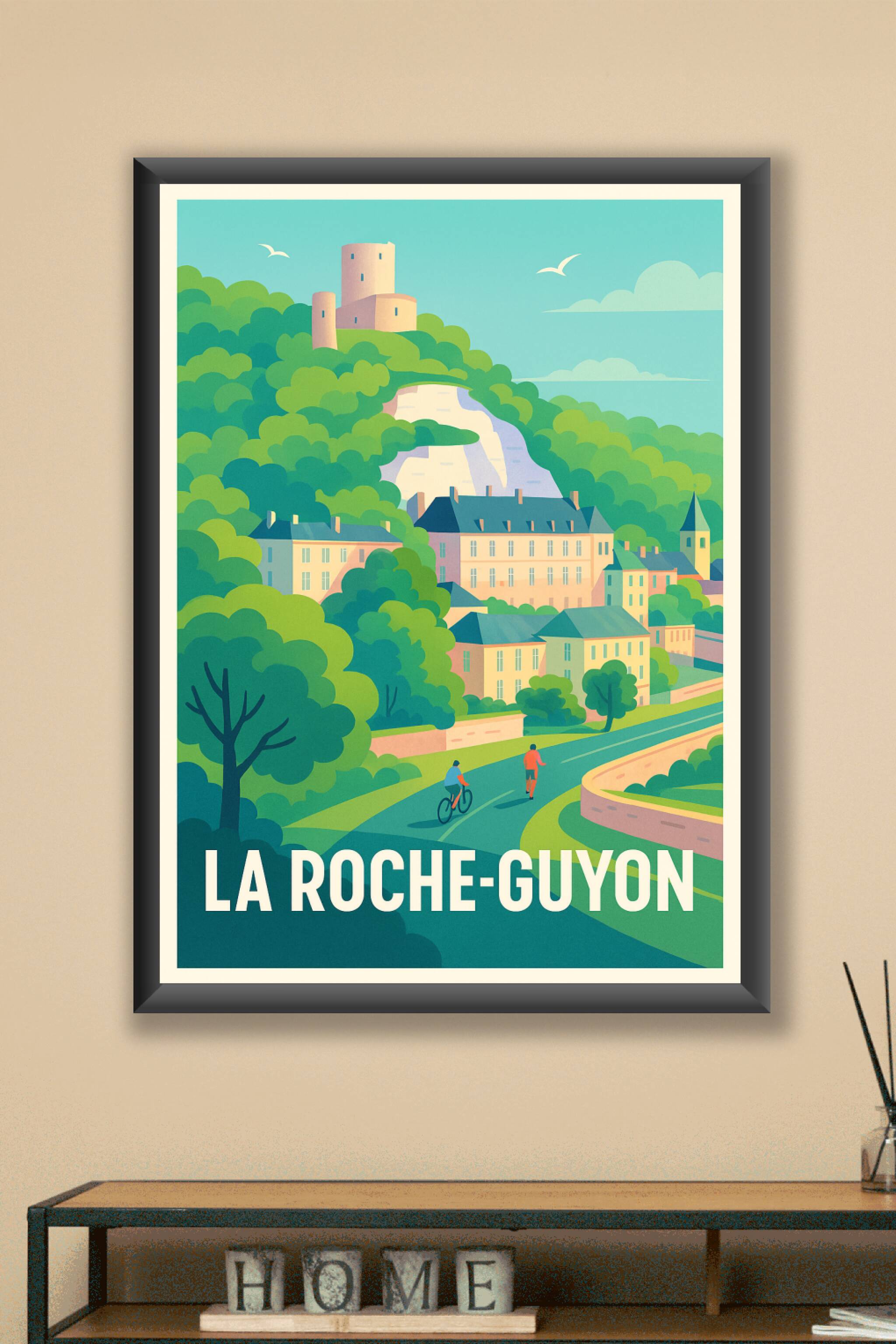 Découvrez la douceur de vivre de La Roche-Guyon avec ce poster illustré qui met en lumière le charme bucolique de cette commune pittoresque, entre verdure luxuriante et patrimoine historique. L'affiche capte le calme apaisant d'une balade à vélo ou à pied sous le regard bienveillant des anciennes fortifications. Notre tirage "Fine Art", réalisé sur un papier coton de 305g, garantit une qualité d'impression exceptionnelle, aux couleurs profondes et durables. Disponible en formats A1 à A4, cette affiche se propose avec ou sans cadre pour s'adapter parfaitement à votre intérieur. Apportez une touche d'élégance et de sérénité à votre décoration avec ce poster unique, 100% fabriqué en France.