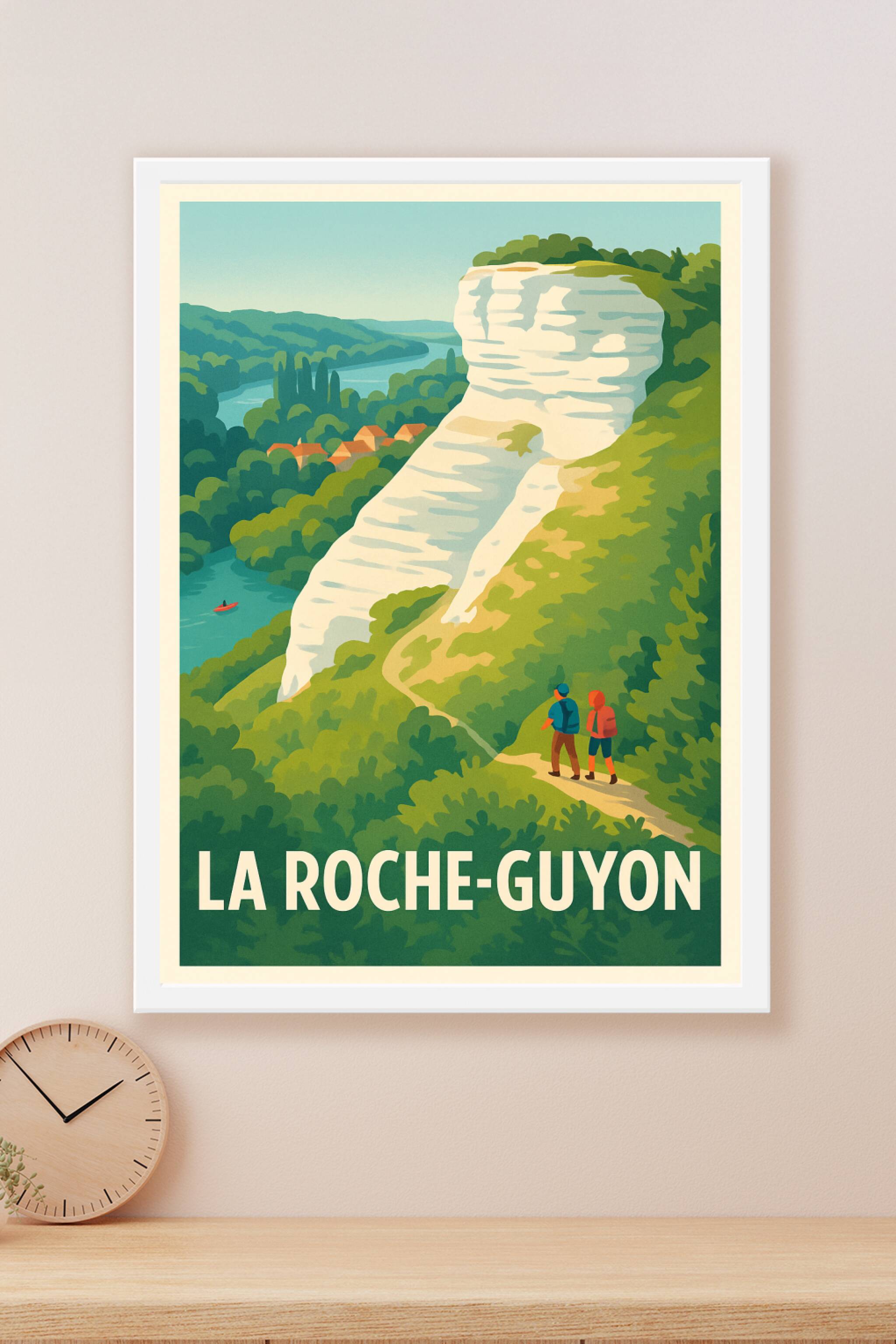 Découvrez l'évasion au cœur de la nature avec cette affiché vintage illustrant les paysages emblématiques de La Roche-Guyon, entre majestueuses falaises blanches et méandres de la rivière. Parfait pour les amoureux de randonnée et de grands espaces, ce poster retrace une escapade ressourçante et authentique.Cette affiche est imprimée en tirage "Fine Art" sur papier 305g coton premium, garantissant des couleurs éclatantes et une qualité d'impression durable. Disponible en formats A1 à A4, avec ou sans cadre, elle s'adapte à toutes vos envies de décoration.Intégrez cette pièce unique à votre intérieur ou offrez un souvenir d'exception des charmes incomparables de La Roche-Guyon, avec une impression 100% fabriquée en France.
