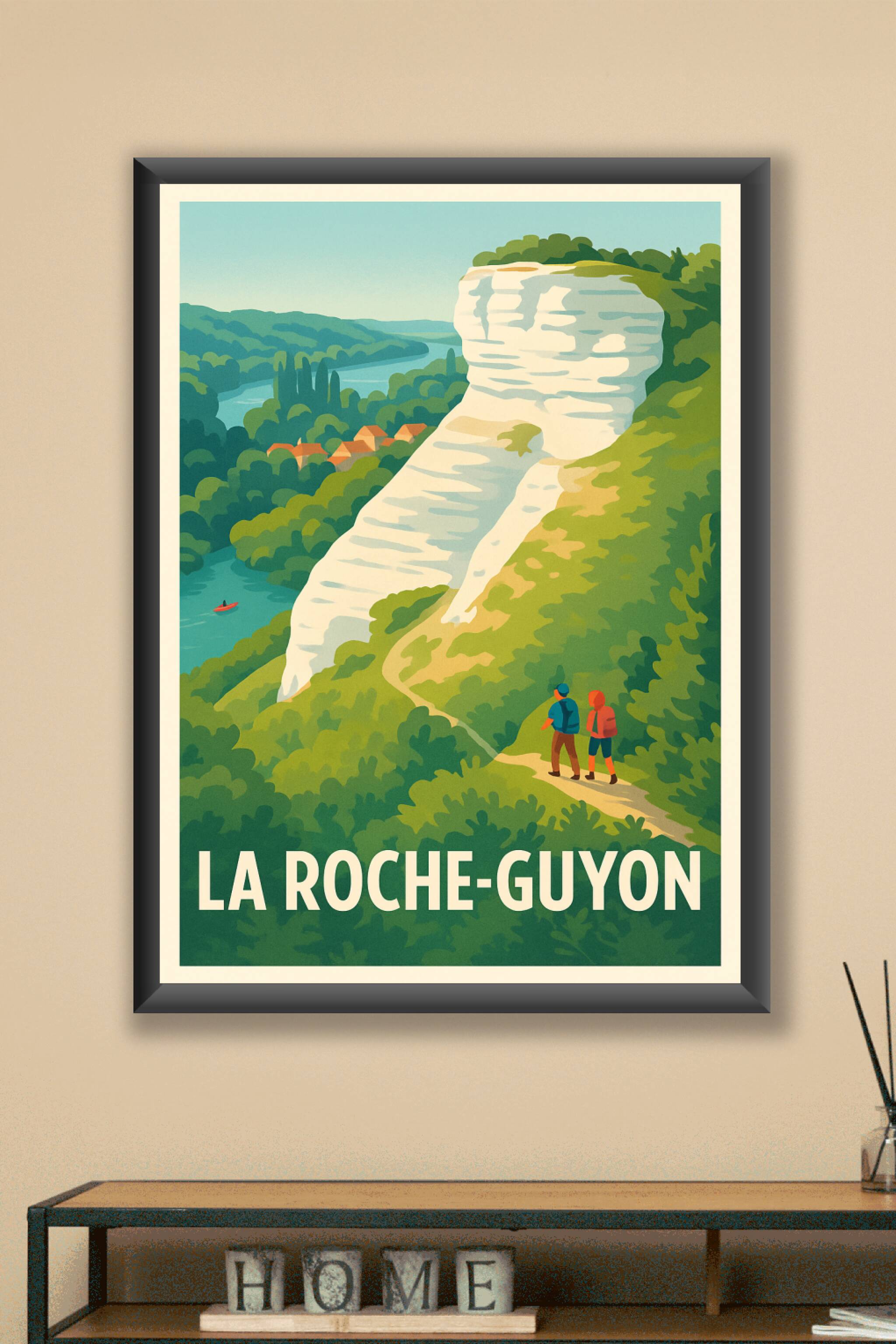 Découvrez l'évasion au cœur de la nature avec cette affiché vintage illustrant les paysages emblématiques de La Roche-Guyon, entre majestueuses fal...