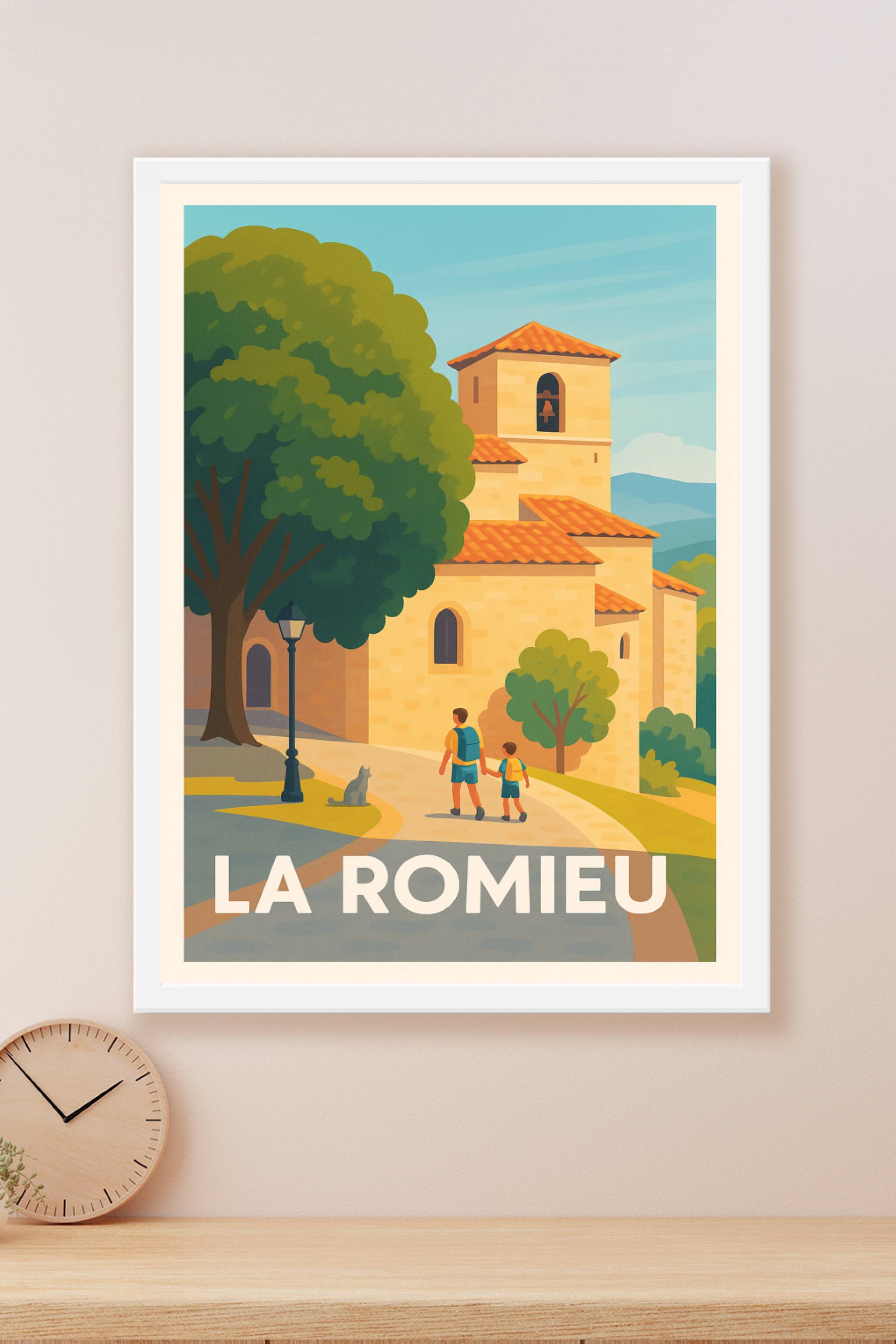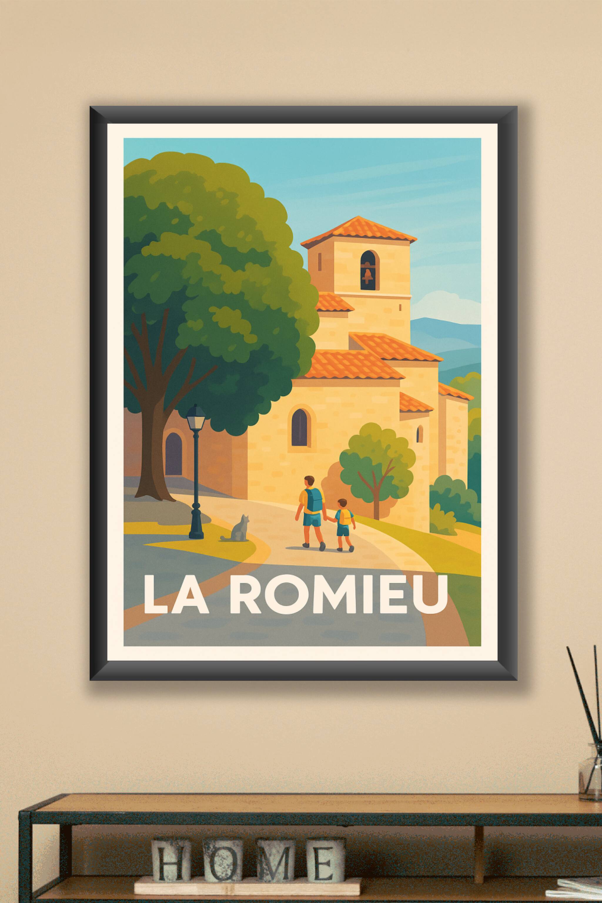 Découvrez le charme paisible de La Romieu à travers cette affiche illustrée mettant en scène ses ruelles et son architecture solaire. Ce poster cap...