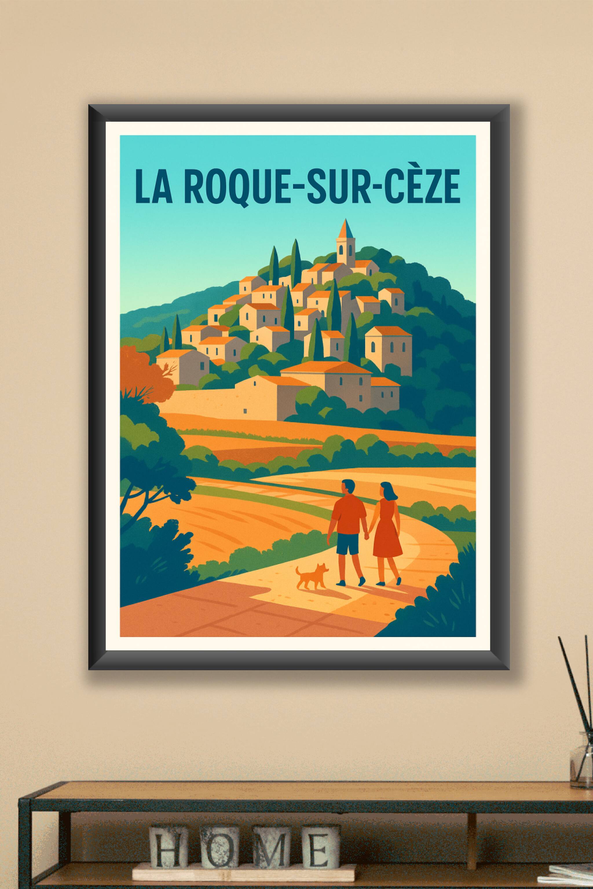 Découvrez la beauté paisible de La Roque-sur-Cèze avec cette affiche illustrée, mettant en scène ses maisons en pierre au toit rouge nichées dans un écrin de verdure. Ce poster capture l'essence d'une balade ensoleillée, offrant une ambiance douce et chaleureuse idéale pour votre décoration intérieure.Cette affiche est imprimée en tirage "Fine Art" sur un papier coton 305g, garantissant une qualité d'impression haut de gamme et une longue tenue des couleurs. Disponible en formats A1 à A4, avec ou sans cadre, ce poster apportera une touche élégante et authentique à votre intérieur ou fera un cadeau raffiné pour les amoureux de la Provence et des villages pittoresques.