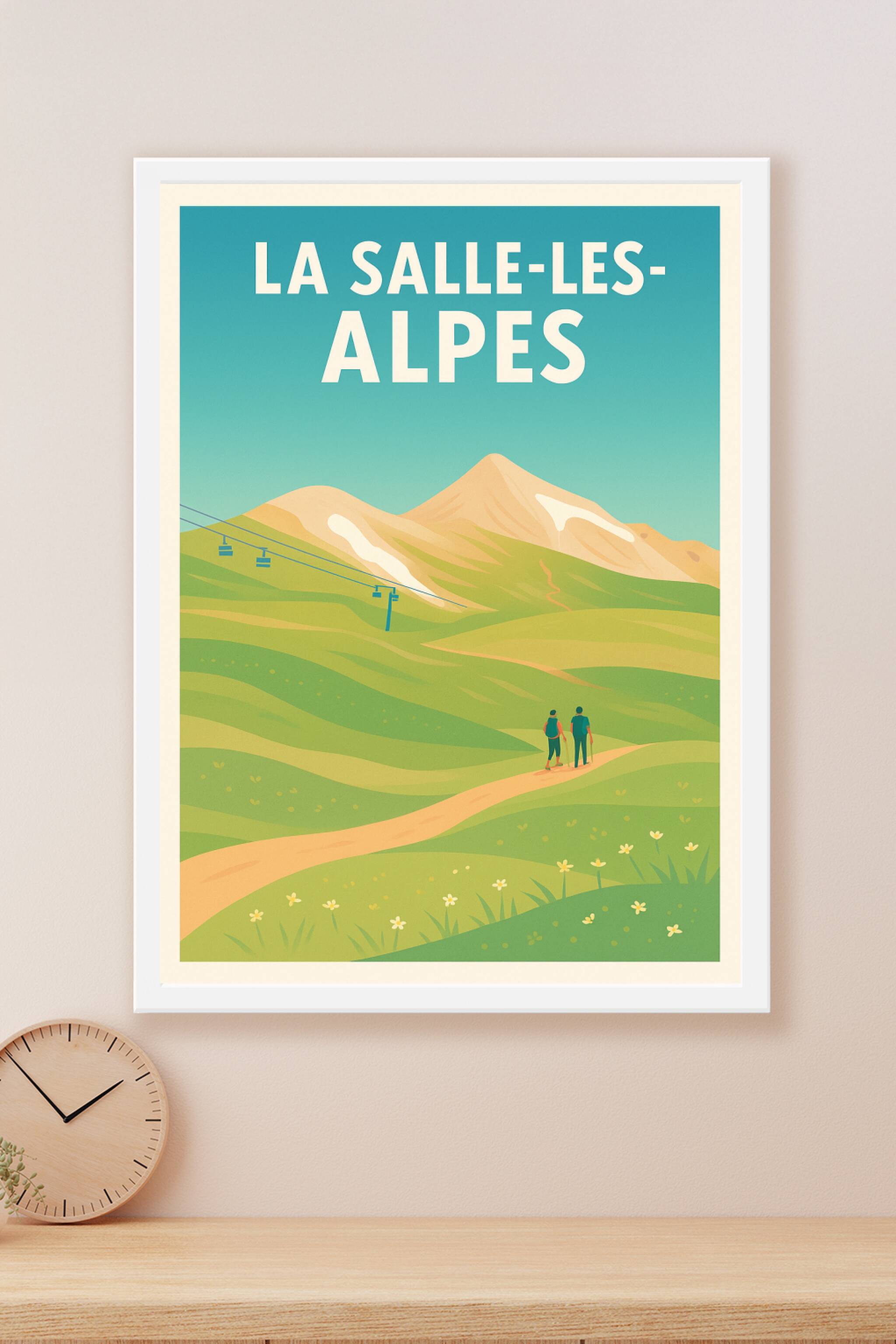 Offrez-vous une promenade visuelle unique avec cette affiche au style vintage qui met à l'honneur les paysages majestueux de La Salle-les-Alpes. En...