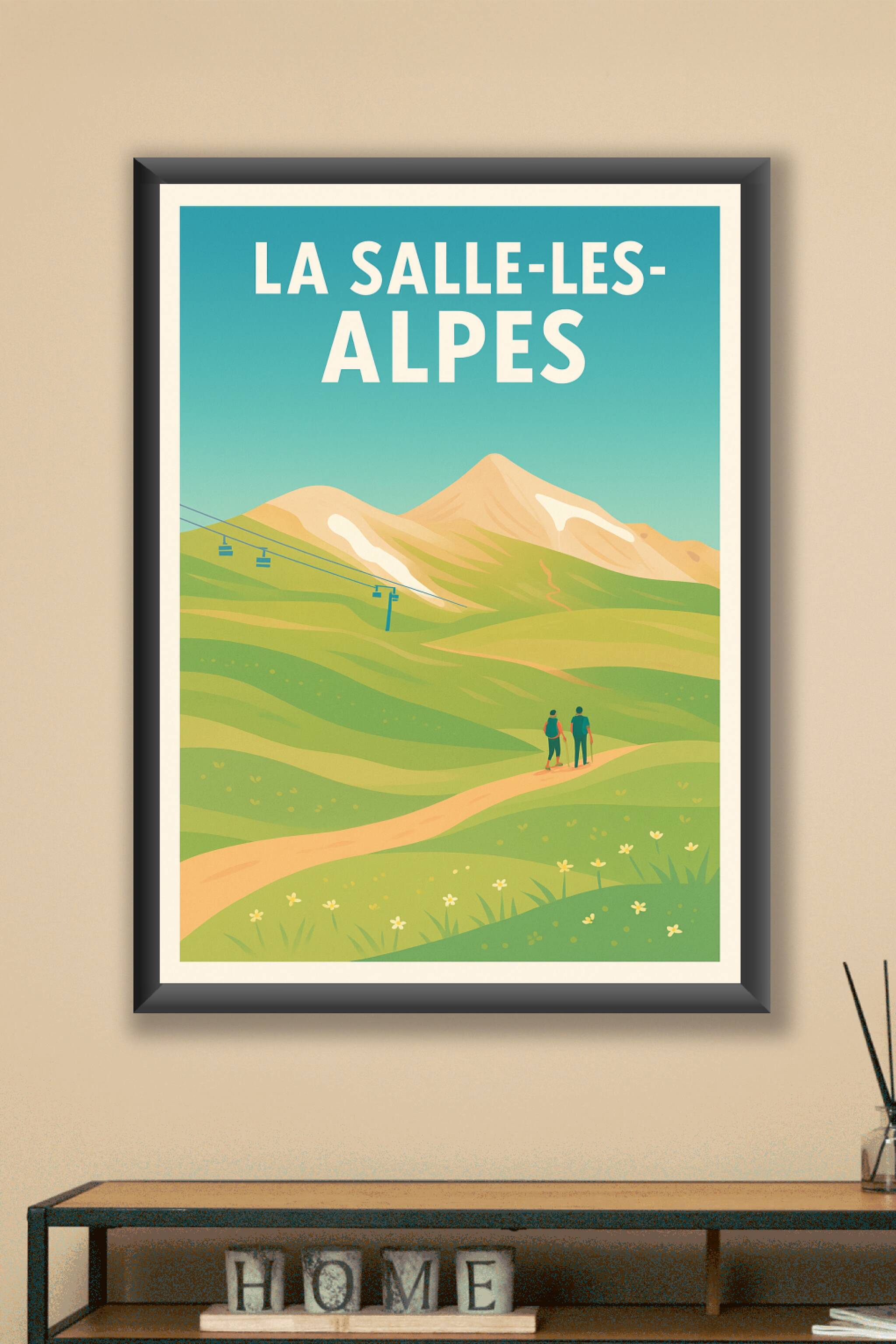 Offrez-vous une promenade visuelle unique avec cette affiche au style vintage qui met à l'honneur les paysages majestueux de La Salle-les-Alpes. Entre ses montagnes douces, ses prairies verdoyantes et les silhouettes de randonneurs, ce poster invite au voyage et à l'aventure en pleine nature. Imprimée en tirage "Fine Art" sur papier 305g coton, cette affiche garantit une qualité d'impression exceptionnelle qui sublime les couleurs et les détails. Disponible en formats A1 à A4, avec ou sans cadre, elle s'intègre parfaitement dans tout intérieur, qu'il soit urbain ou campagnard. Un souvenir parfait ou un élément décoratif élégant pour tous les amoureux des Alpes.