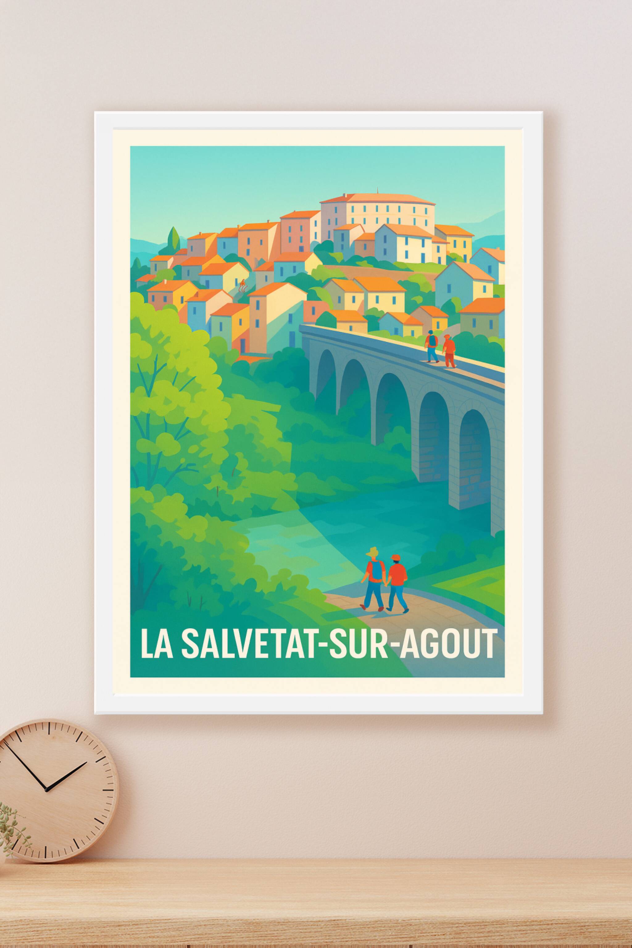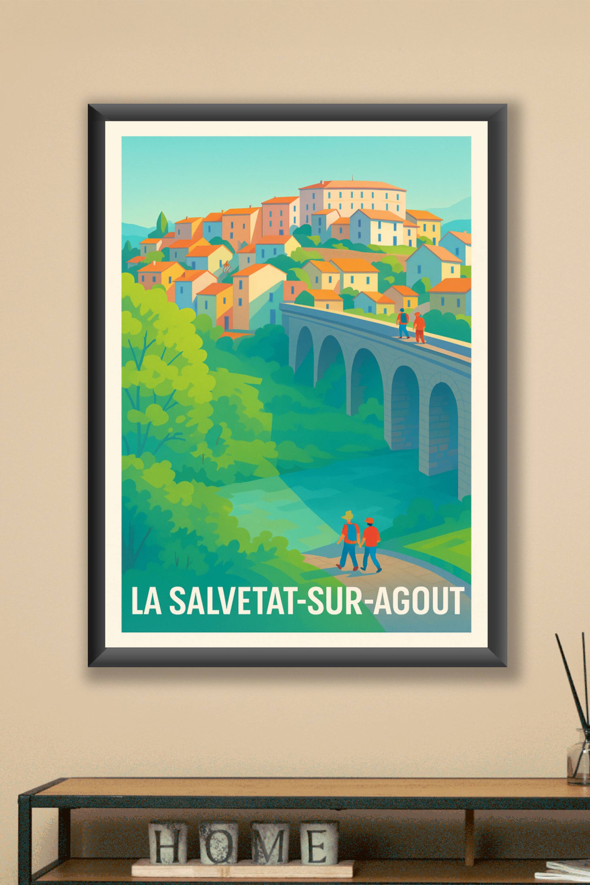 Découvrez le charme unique de La Salvetat-sur-Agout à travers cette affiche illustrée mettant en valeur son paysage pittoresque et sa nature verdoy...