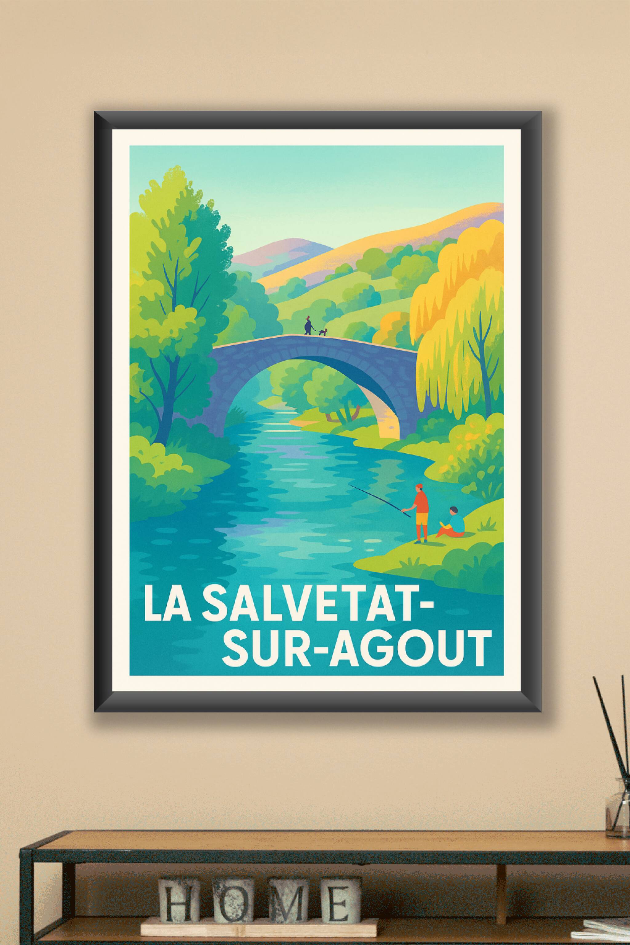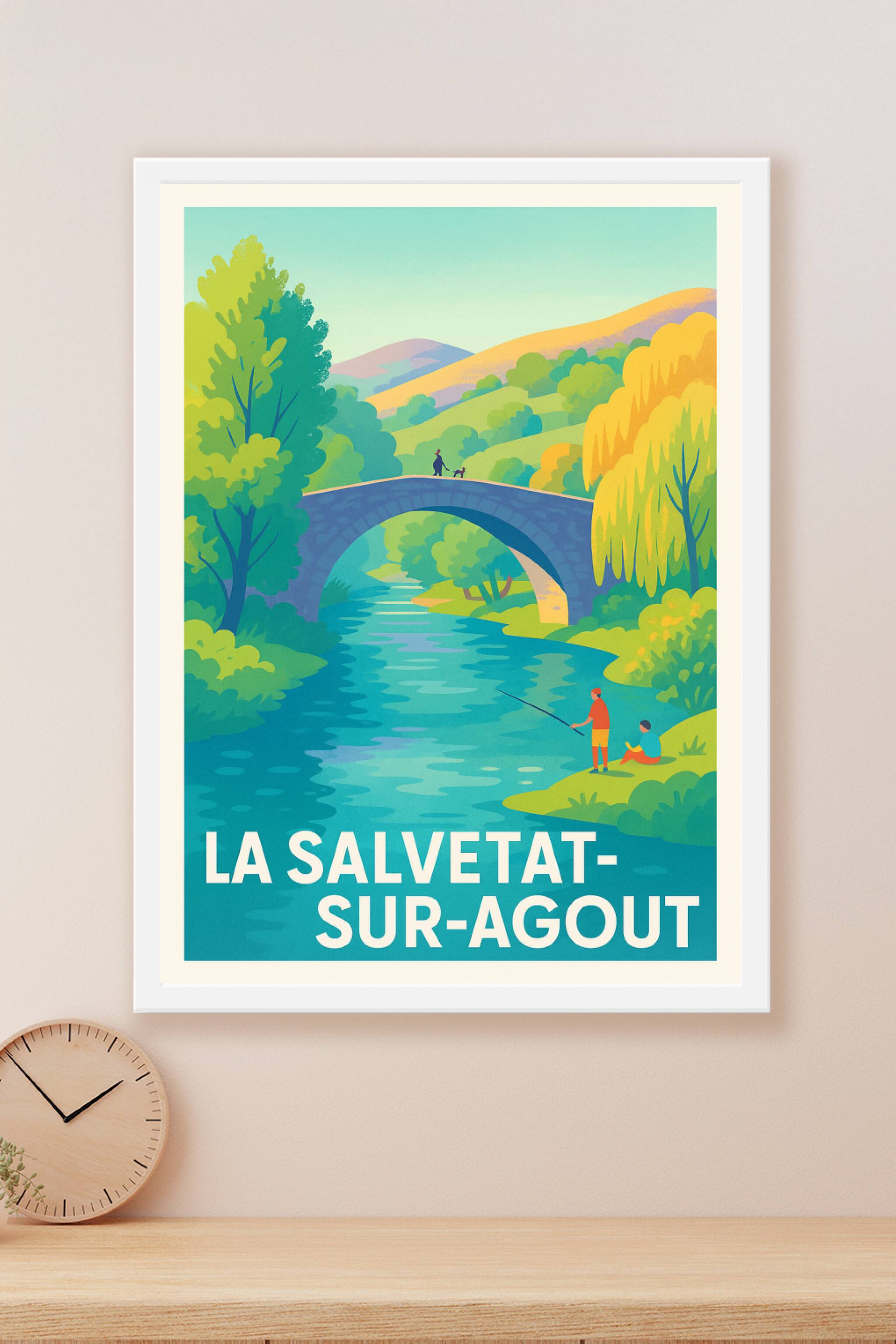 Découvrez le charme paisible de La Salvetat-sur-Agout avec cette affiche illustrée mettant en scène un paysage naturel apaisant autour de son célèb...