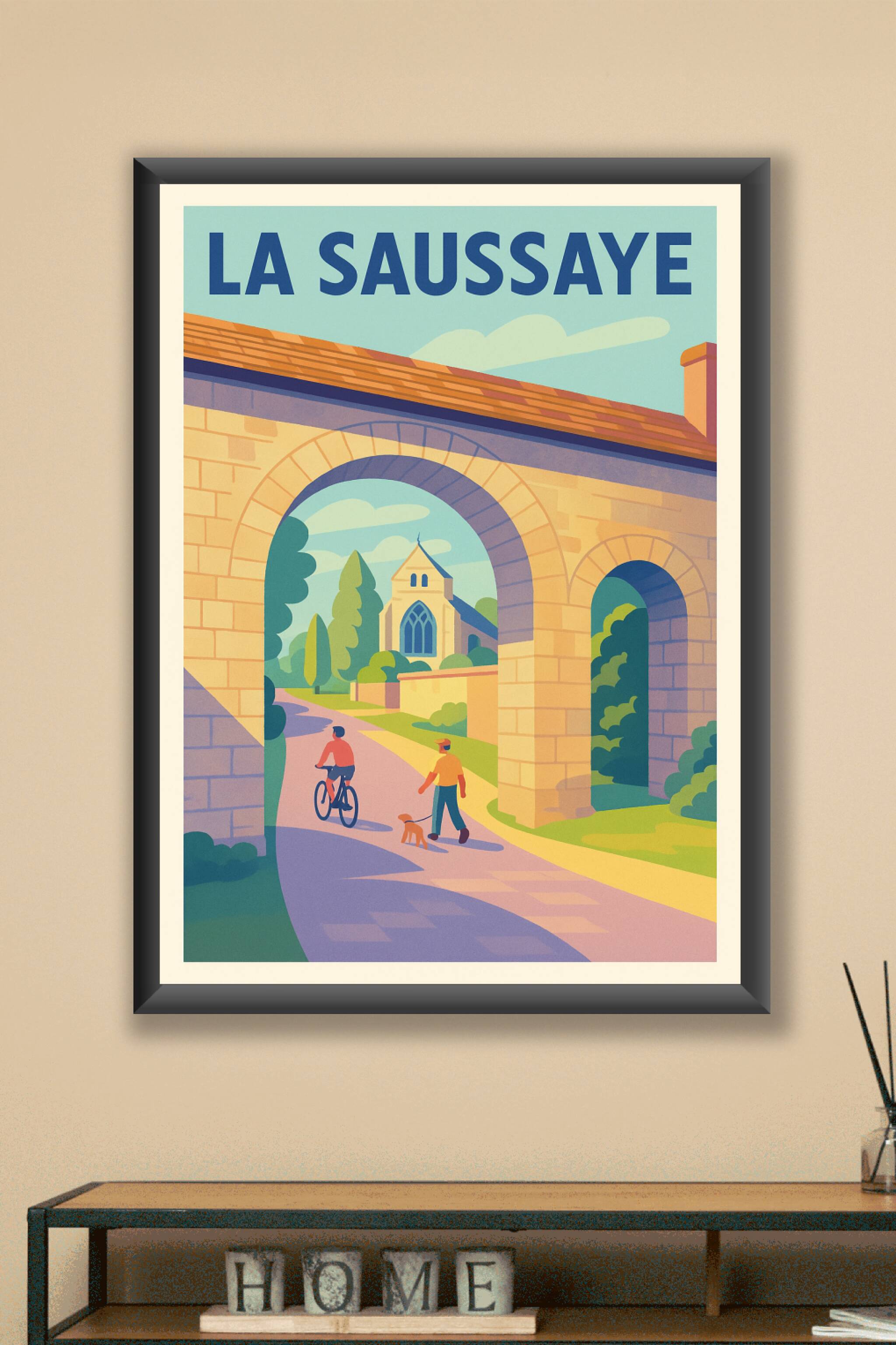Apportez une touche de sérénité et de charme normand à votre intérieur avec cette magnifique affiche illustrée représentant une scène paisible sous les arches historiques de La Saussaye. Ce poster capture l’essence bucolique de la ville, mêlant architecture ancienne et nature verdoyante, idéale pour les amoureux des villages authentiques.Cette œuvre est imprimée en tirage "Fine Art" sur un papier premium 305g coton, garantissant des couleurs éclatantes et une qualité d'impression exceptionnelle. Disponible en formats A1 à A4, avec ou sans cadre, ce poster s'adapte parfaitement à tous les espaces, que ce soit pour une décoration élégante ou comme cadeau raffiné. Profitez d'un produit 100% fabriqué en France pour embellir votre intérieur avec une affiche de qualité supérieure.