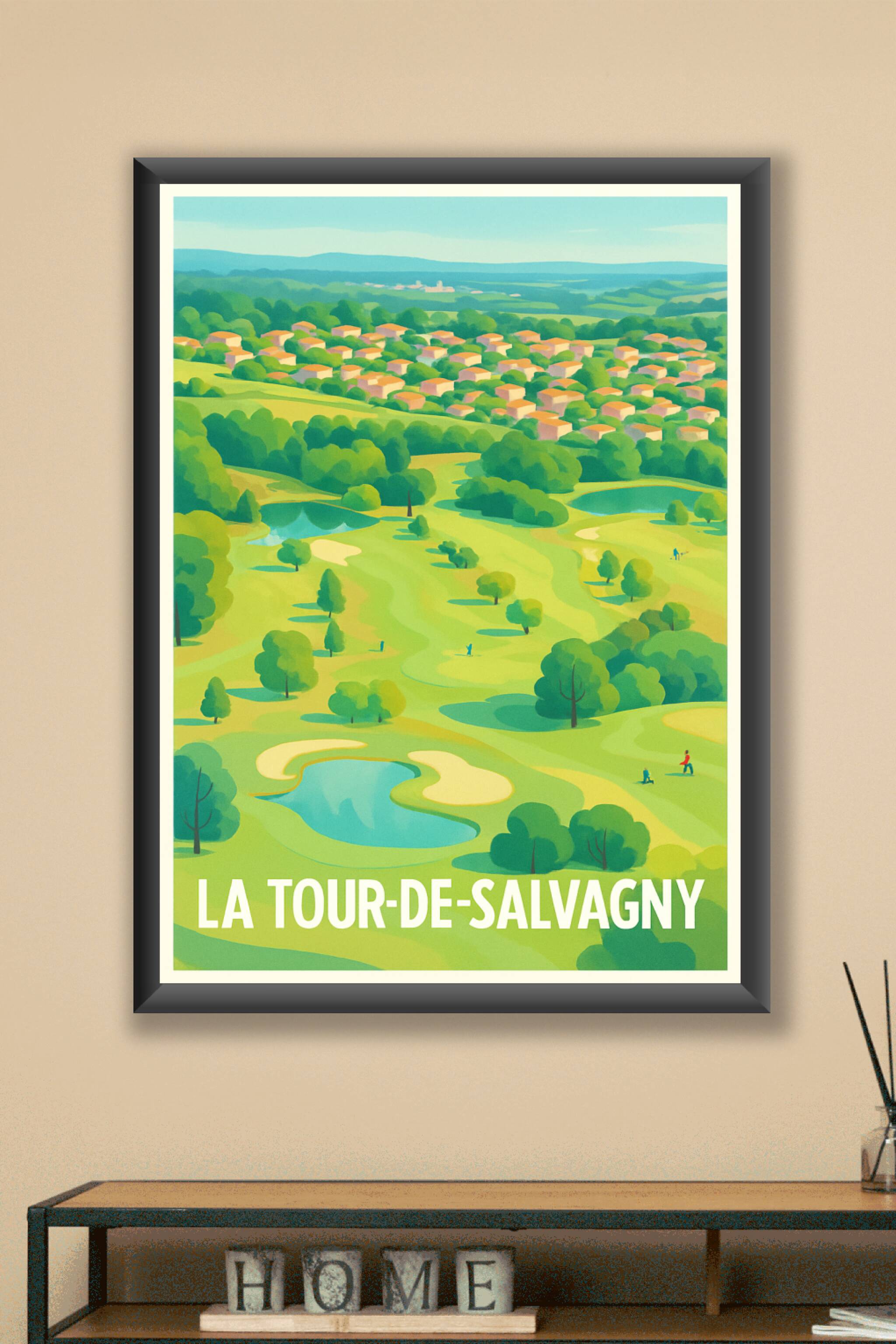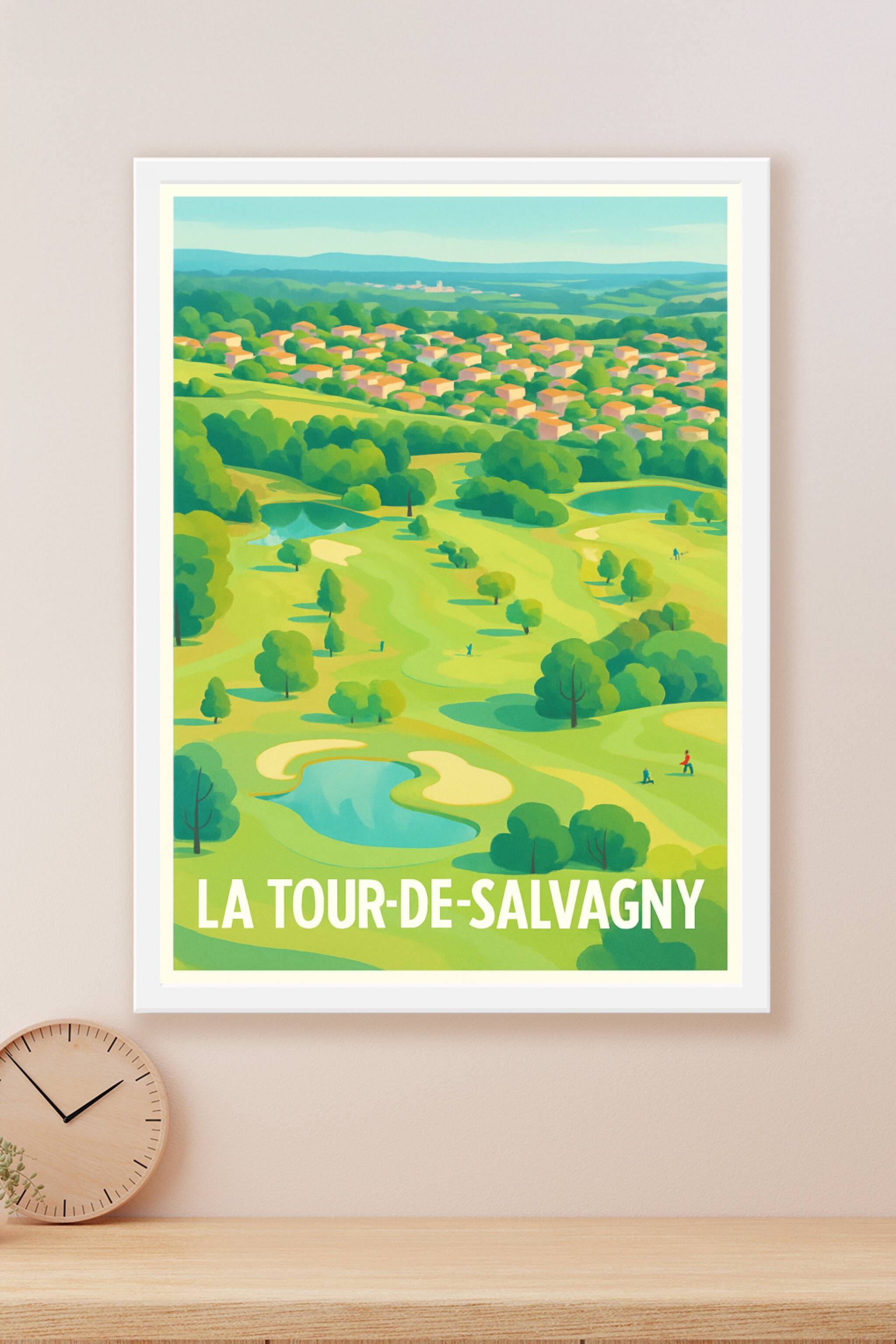 Découvrez la douceur de vivre de La Tour-de-Salvagny avec cette affiche illustrée mettant en avant ses vastes espaces verts et panoramas apaisants,...