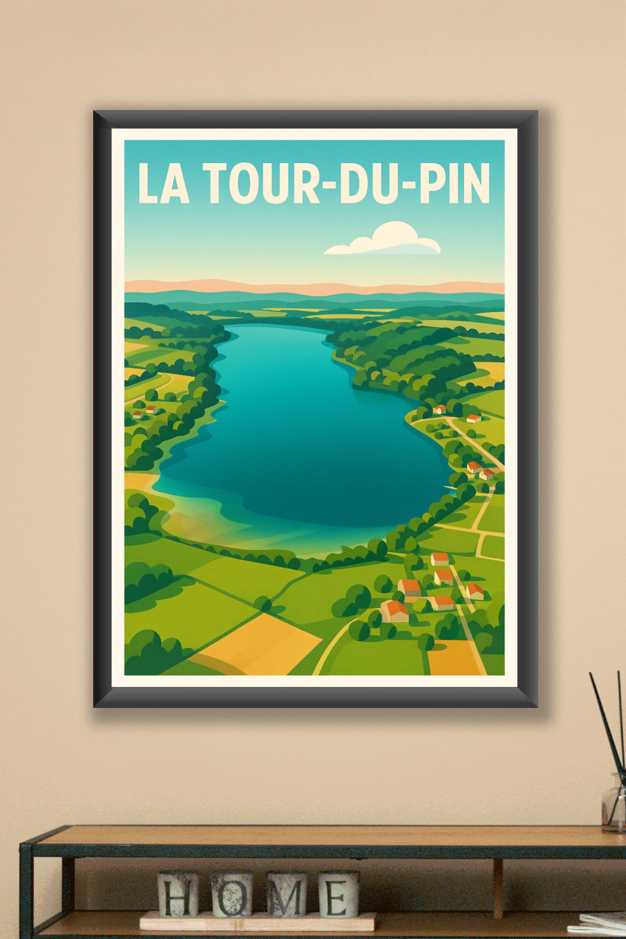 Découvrez la sérénité et la beauté de La Tour-du-Pin à travers cette affiche au style vintage et épuré. Ce poster illustre un paysage naturel avec ...