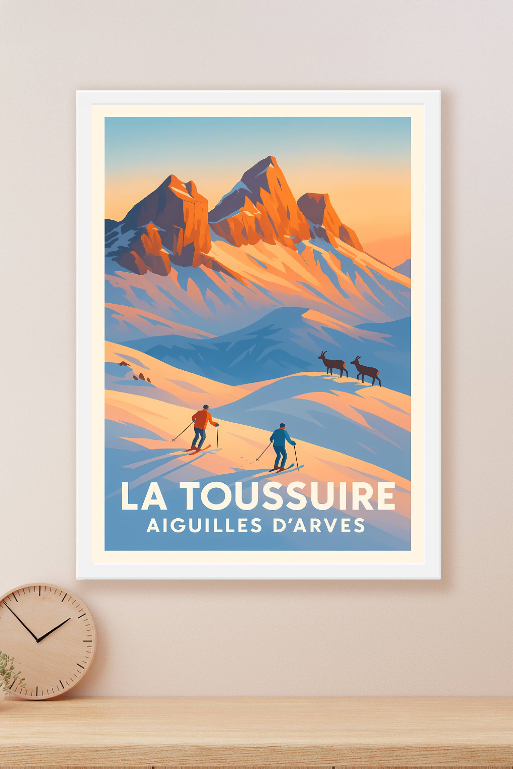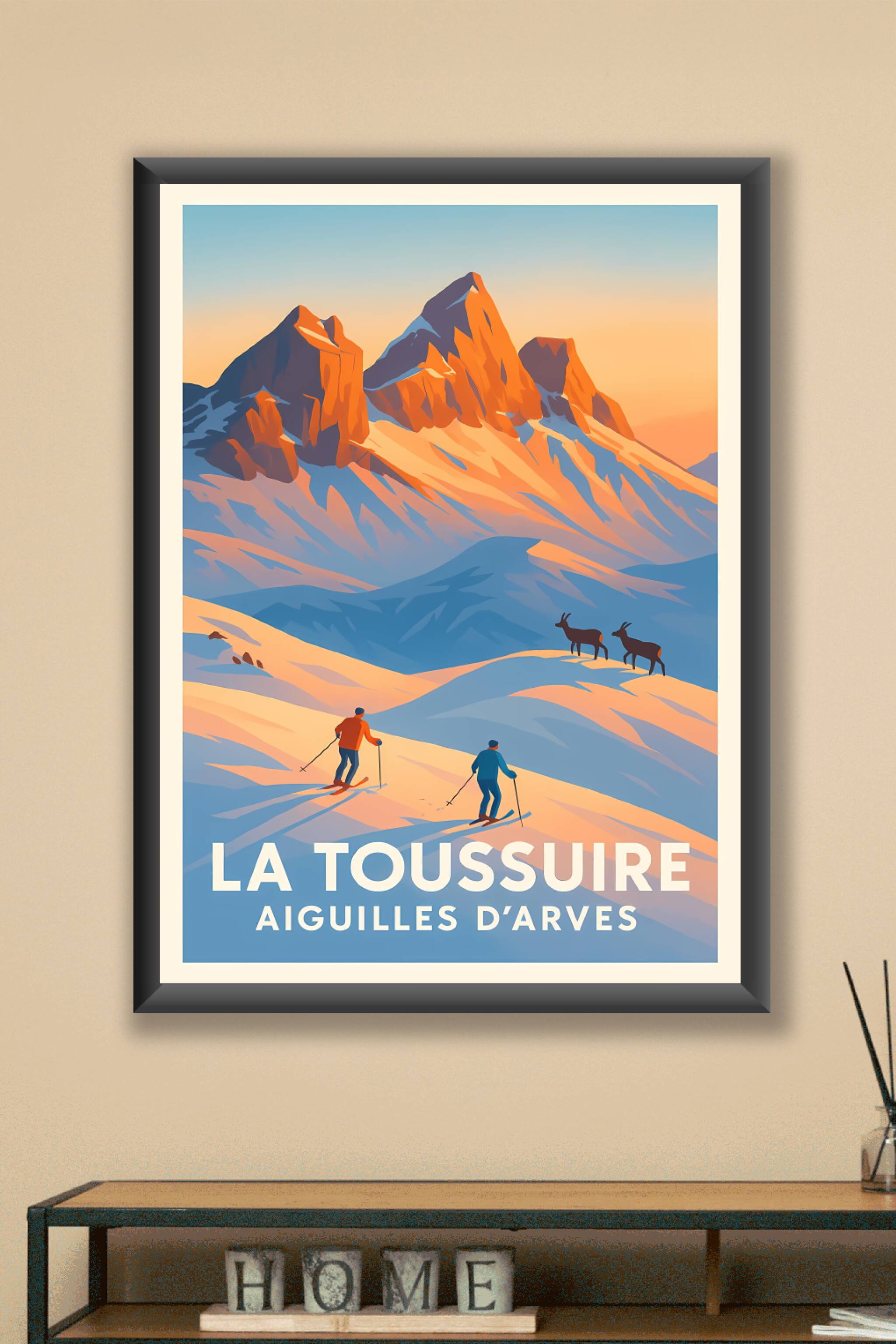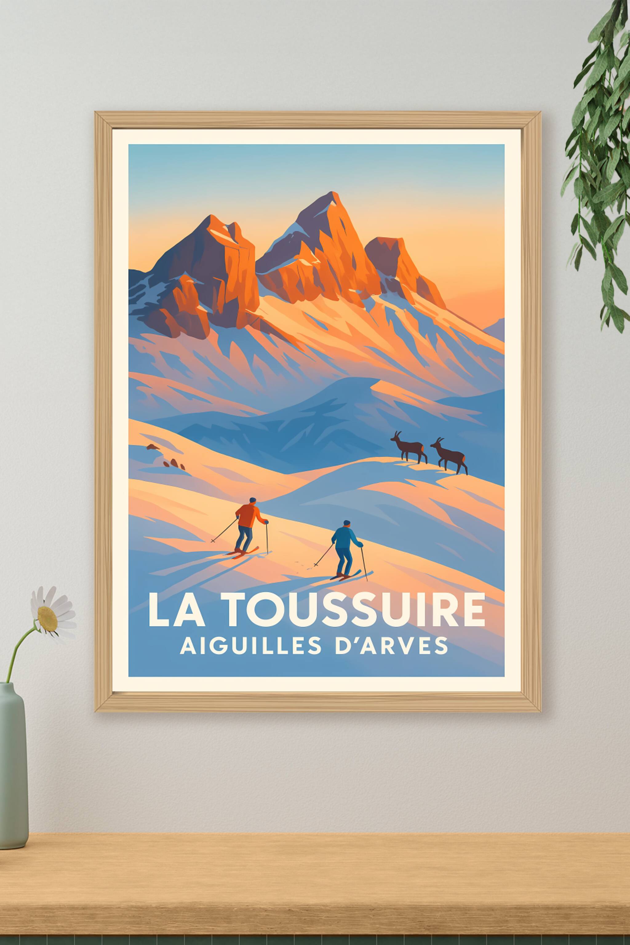 Découvrez la majesté des montagnes avec cette affiche inspirée des Aiguilles d'Arves à La Toussuire, un spot idéal pour les passionnés de ski et de...