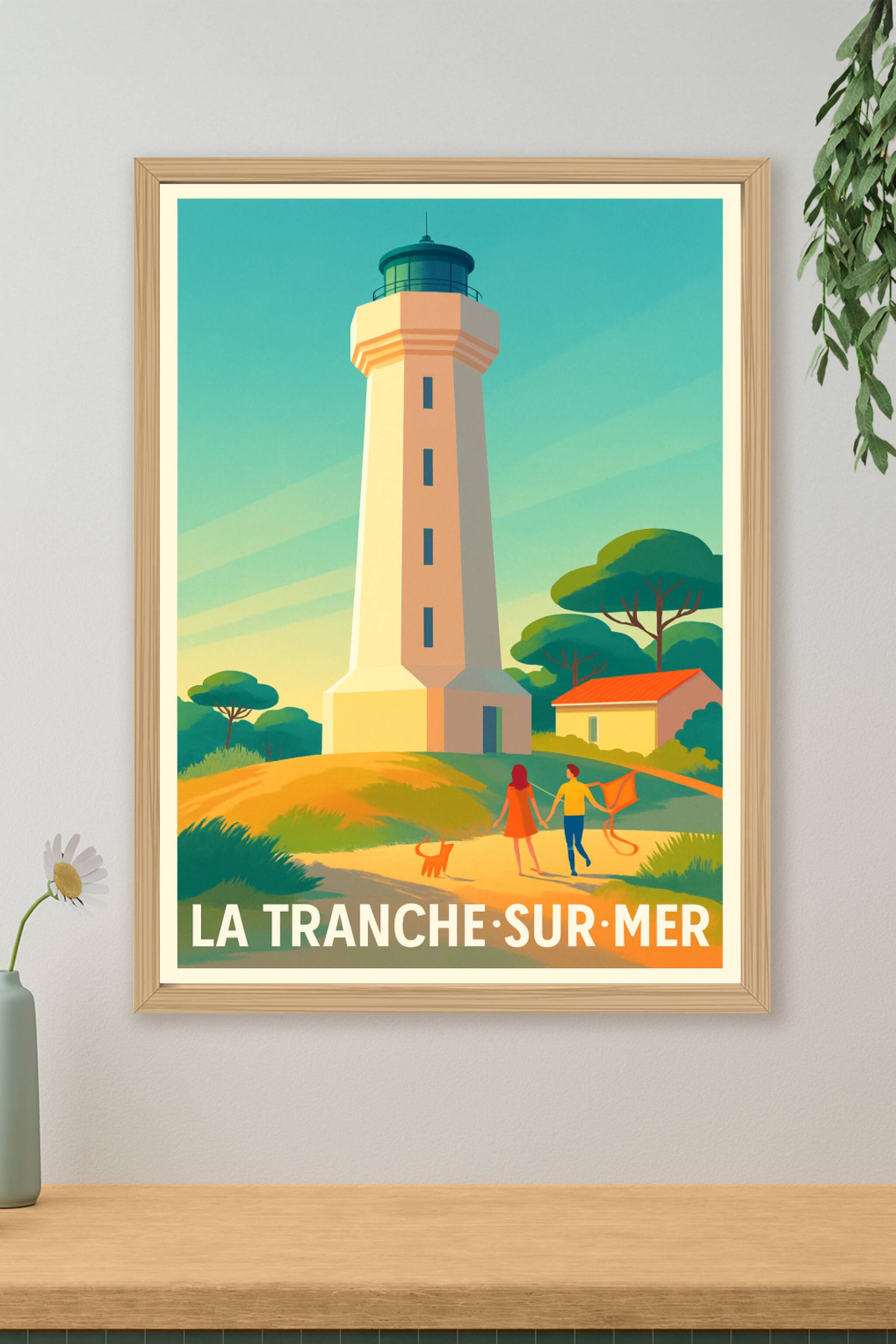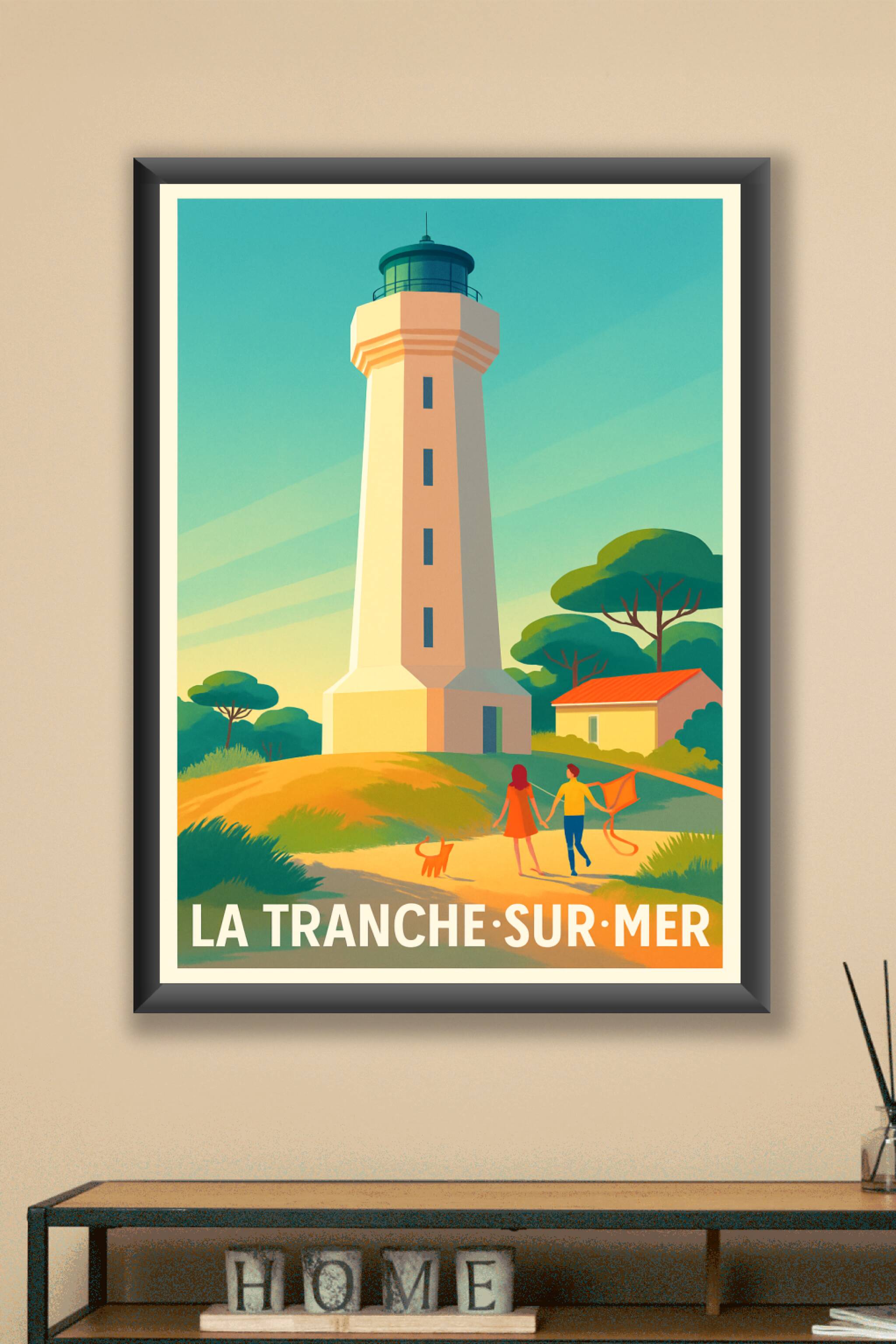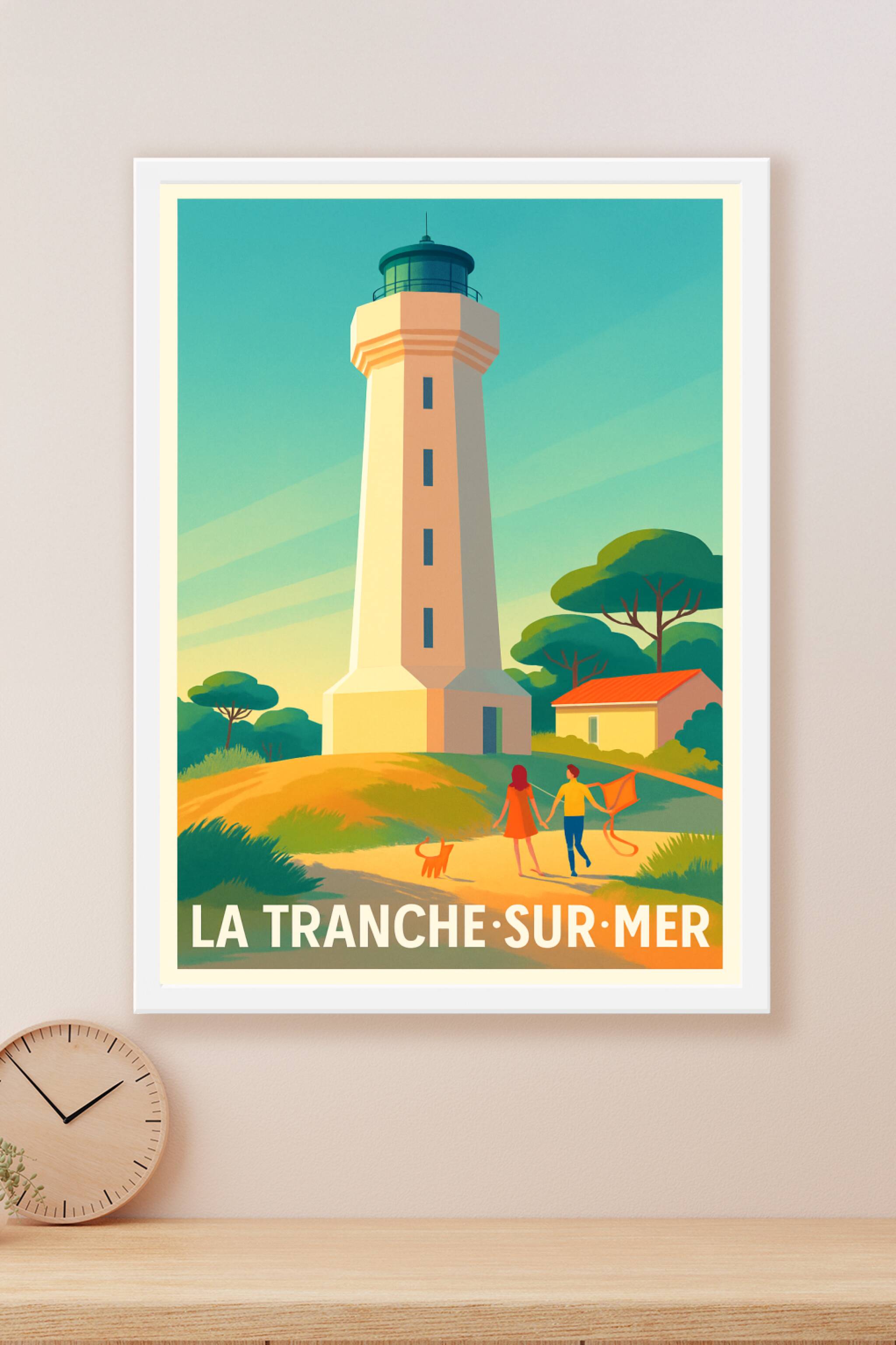 Apportez une touche de douceur et de sérénité à votre intérieur avec cette affiche représentant le phare emblématique de La Tranche-sur-Mer, un lie...