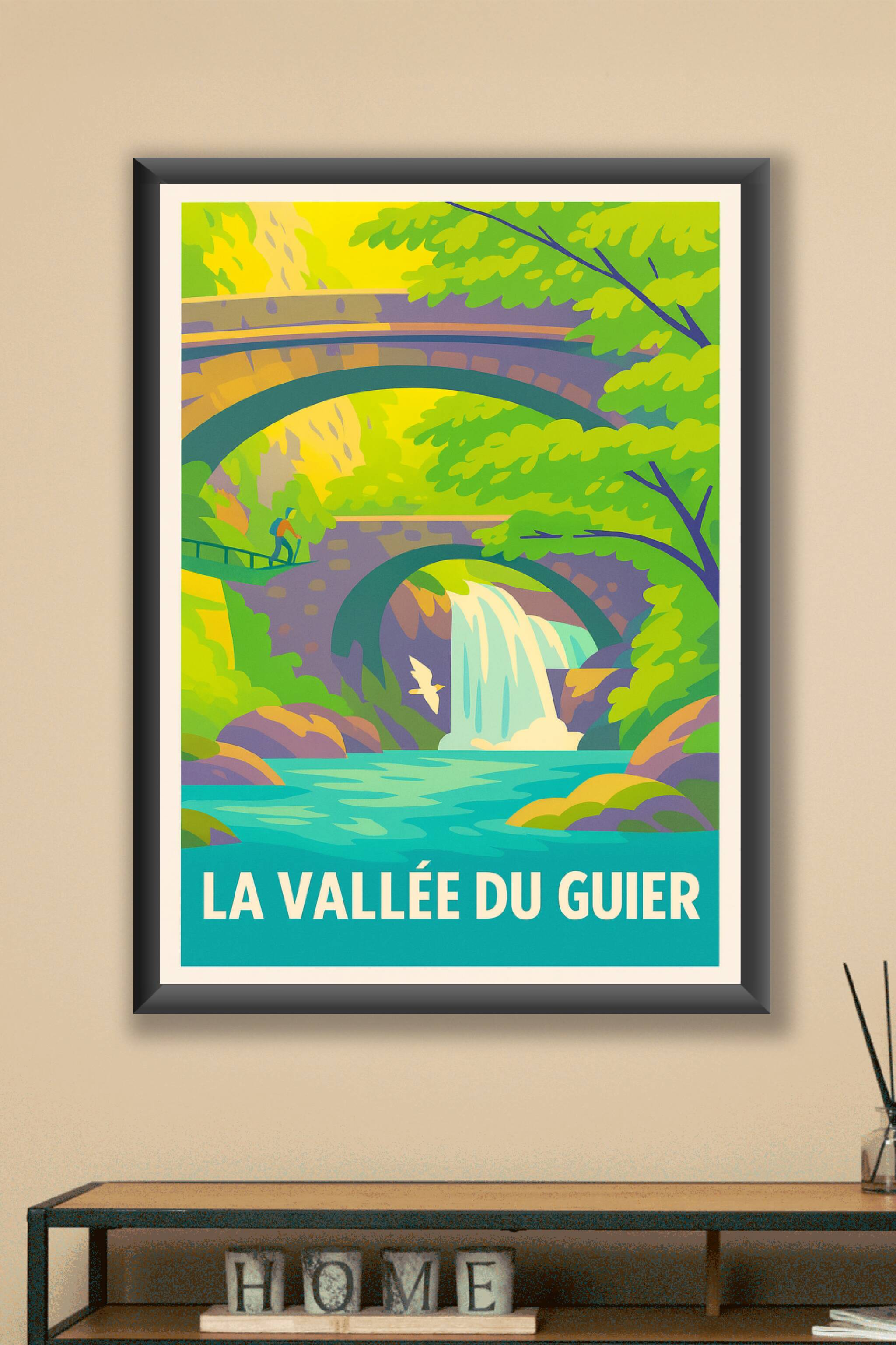Découvrez la beauté paisible de La Vallée du Guiers à travers cette affiche au style graphique vibrant et moderne. Cette illustration met en scène le charme naturel des ponts en arche, de la cascade et de la végétation luxuriante environnante. Ce poster offre une invitation à l'évasion et au dépaysement, idéal pour les amateurs de paysages authentiques.Agrémentez votre intérieur d'une touche nature grâce à ce tirage "Fine Art" imprimé sur un papier d'exception 305g coton, garantissant une qualité d'image et des couleurs éclatantes qui dureront dans le temps. Disponible du format A1 à A4, avec ou sans cadre, cette affiche s'adapte parfaitement à votre style déco, que ce soit dans un salon, un bureau ou une chambre.Profitez d'une impression premium, 100% fabriquée en France, pour sublimer votre espace ou offrir un cadeau raffiné aux passionnés de nature et de randonnées.