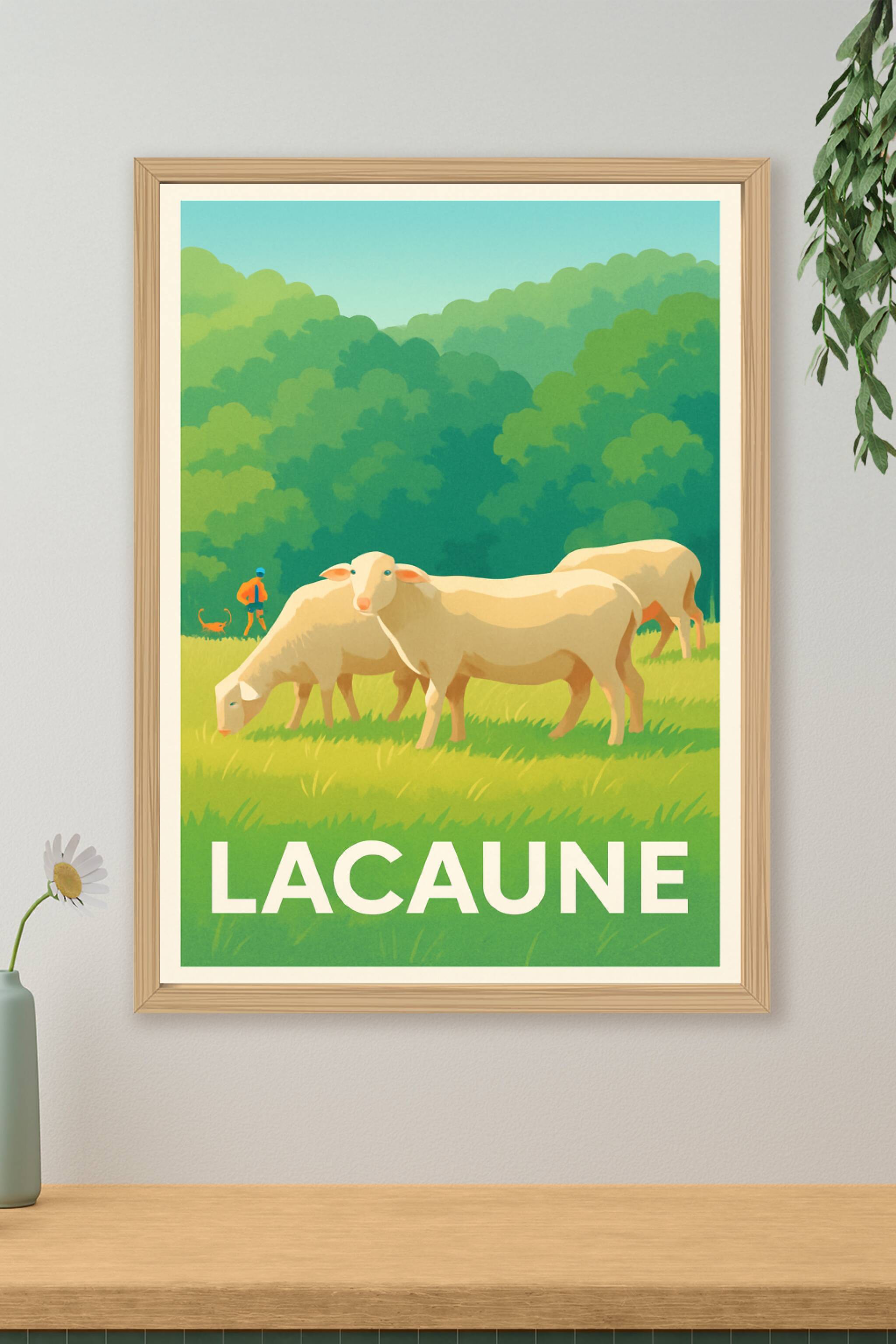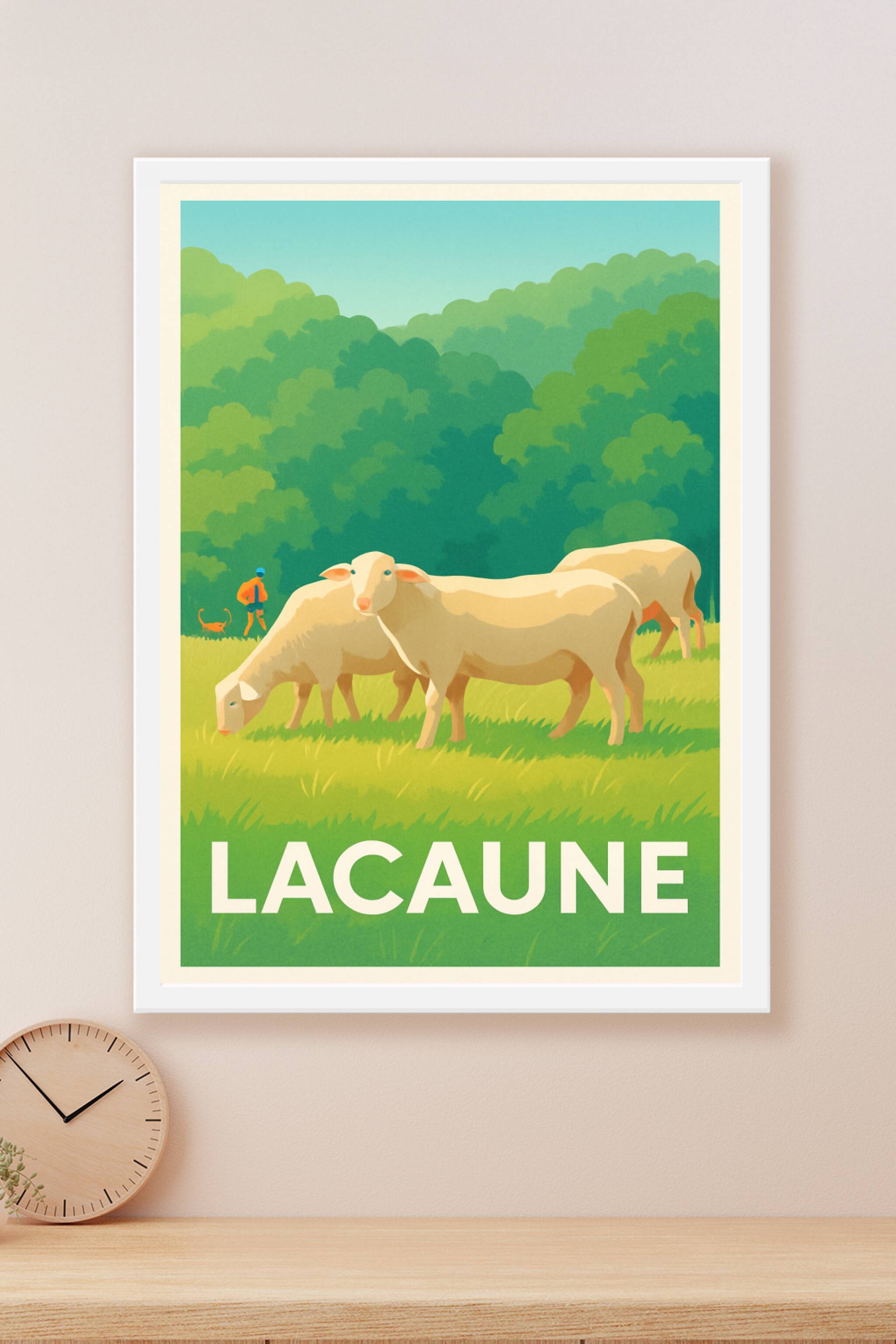 Découvrez toute la sérénité de la campagne tarnaise avec cette affiche représentant un paisible troupeau de moutons dans les verts pâturages de Lacaune, baignés par une lumière douce sous un ciel clair.Ce poster est imprimé en tirage "Fine Art" sur un papier 305g coton, garantissant des couleurs profondes et une qualité d'impression remarquable. Disponible en formats A1 à A4, avec ou sans cadre, il s'intègre parfaitement dans votre décoration intérieure pour une touche naturelle et apaisante. Profitez d'une fabrication 100% française pour offrir ou embellir votre espace avec ce souvenir champêtre d'exception.