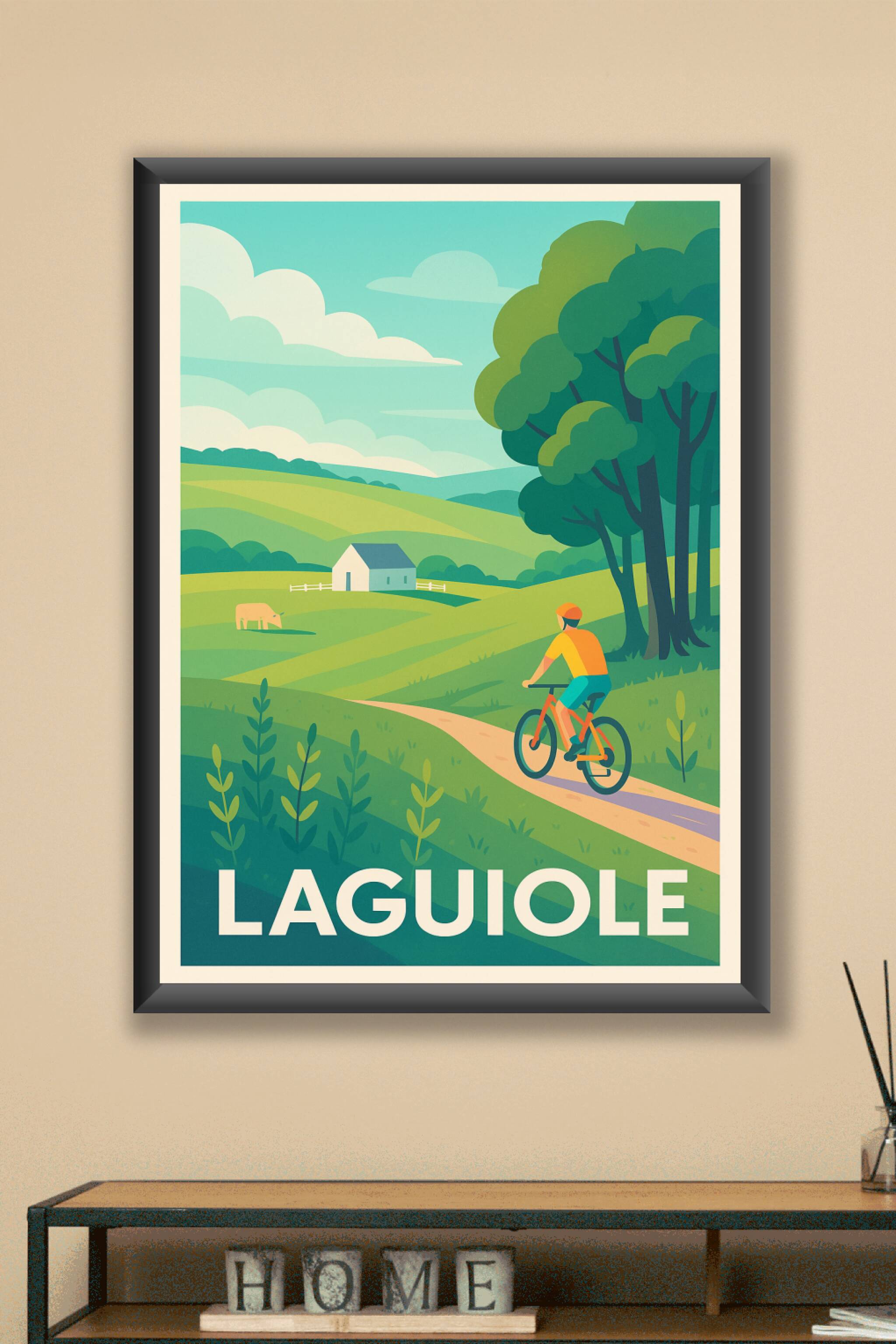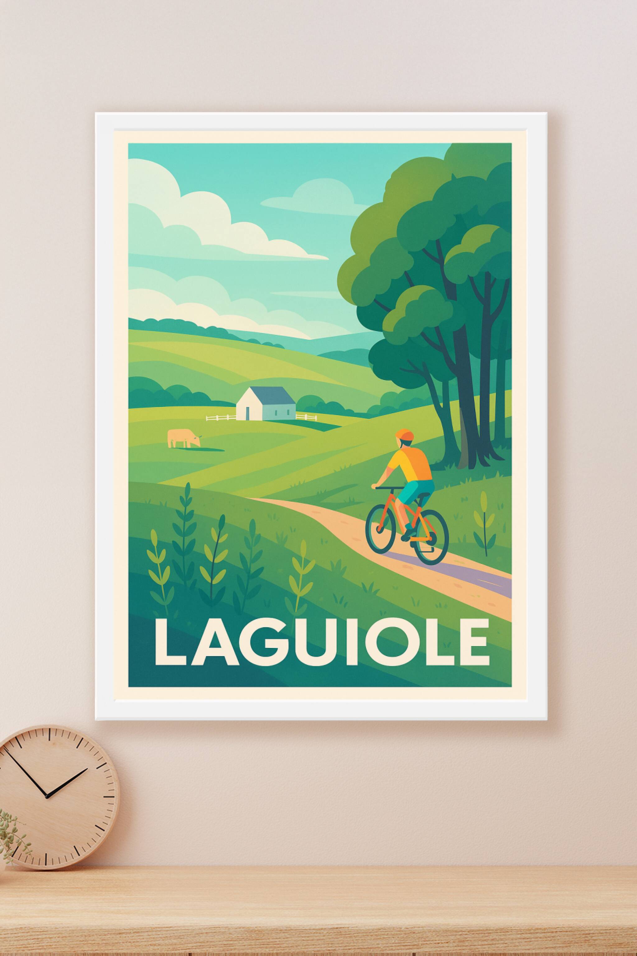 Découvrez la douceur et la tranquillité des paysages verdoyants de Laguiole grâce à cette affiche illustrée au style vintage et épuré. Ce poster me...