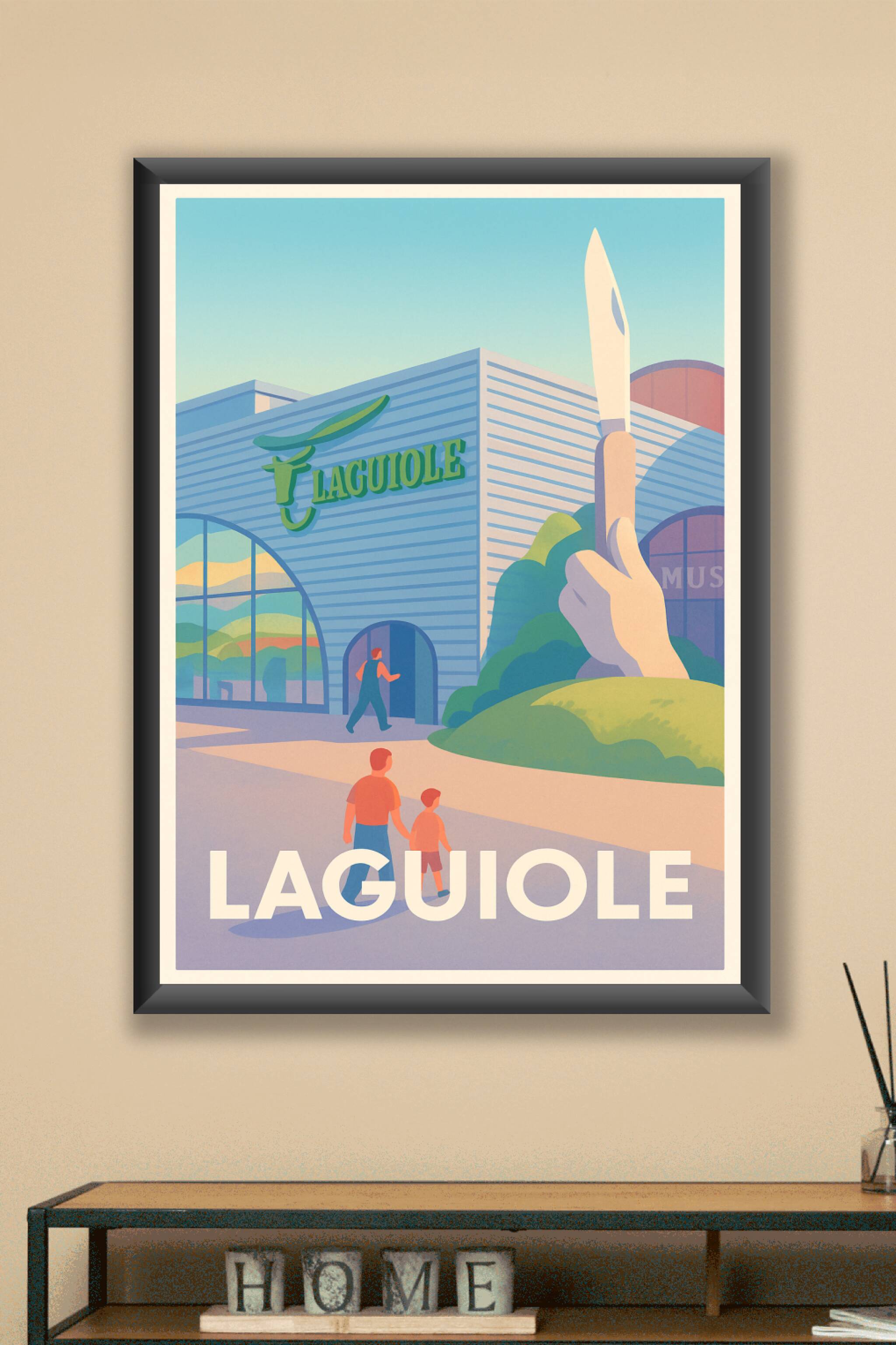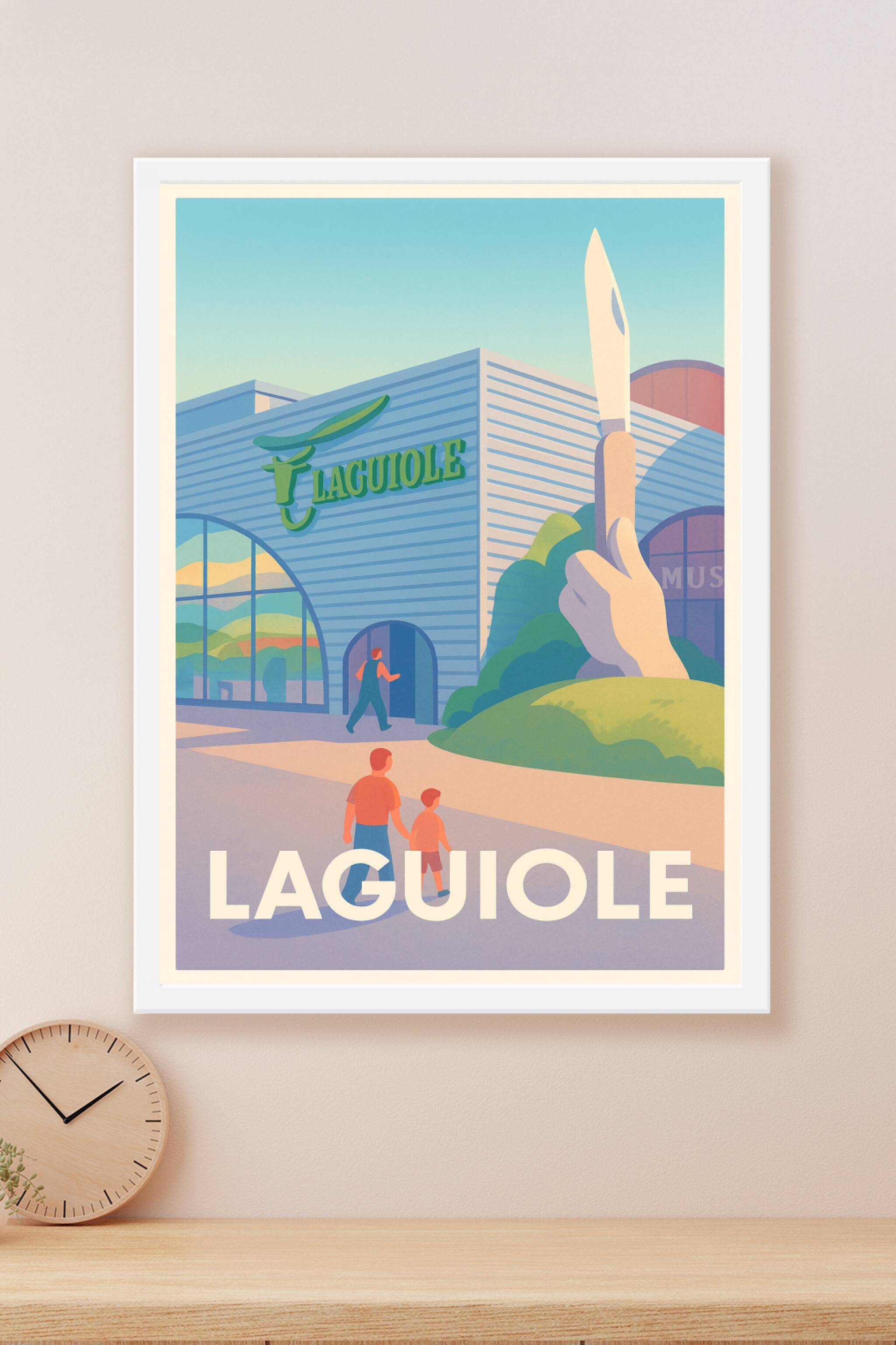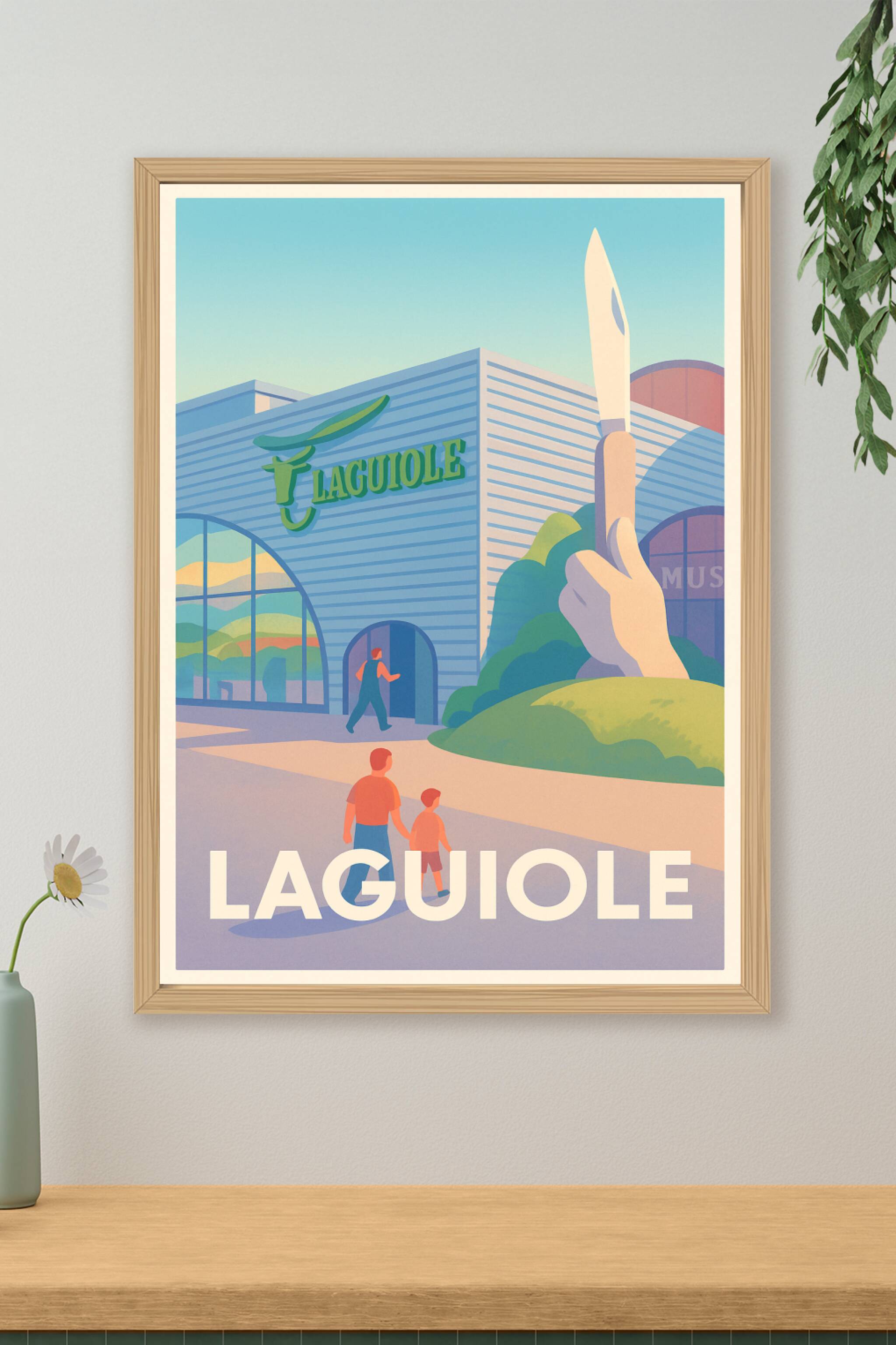 Découvrez Laguiole à travers cette affiche illustrée mettant en scène son célèbre musée du couteau, emblème du savoir-faire artisanal français. Ce ...