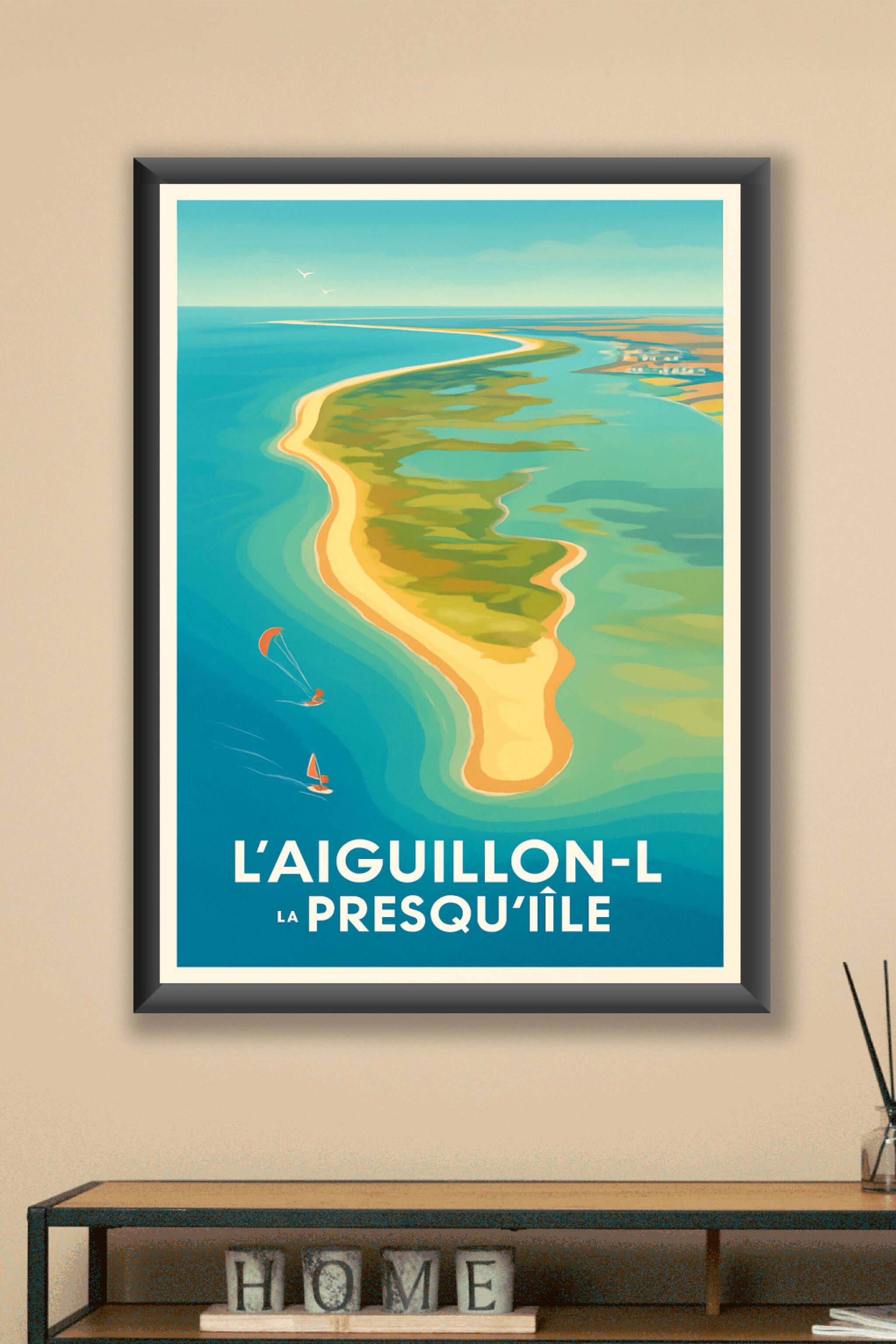 Découvrez la beauté naturelle préservée de la presqu'île de L'Aiguillon-sur-Mer avec cette affiche au design épuré et aux couleurs douces. Ce poster invite à l'évasion, avec sa vue aérienne sur les plages et les eaux limpides, idéal pour les amoureux de la nature et des paysages marins. Imprimée en tirage "Fine Art" sur papier 305g coton, cette affiche garantit des couleurs éclatantes et une qualité d'impression exceptionnelle. Disponible en plusieurs formats allant de A1 à A4, avec ou sans cadre, elle s'adapte parfaitement à toutes les ambiances déco. Offrez-vous ou offrez à vos proches un souvenir authentique de L'Aiguillon-sur-Mer, 100% fabriqué en France pour une décoration élégante et durable.