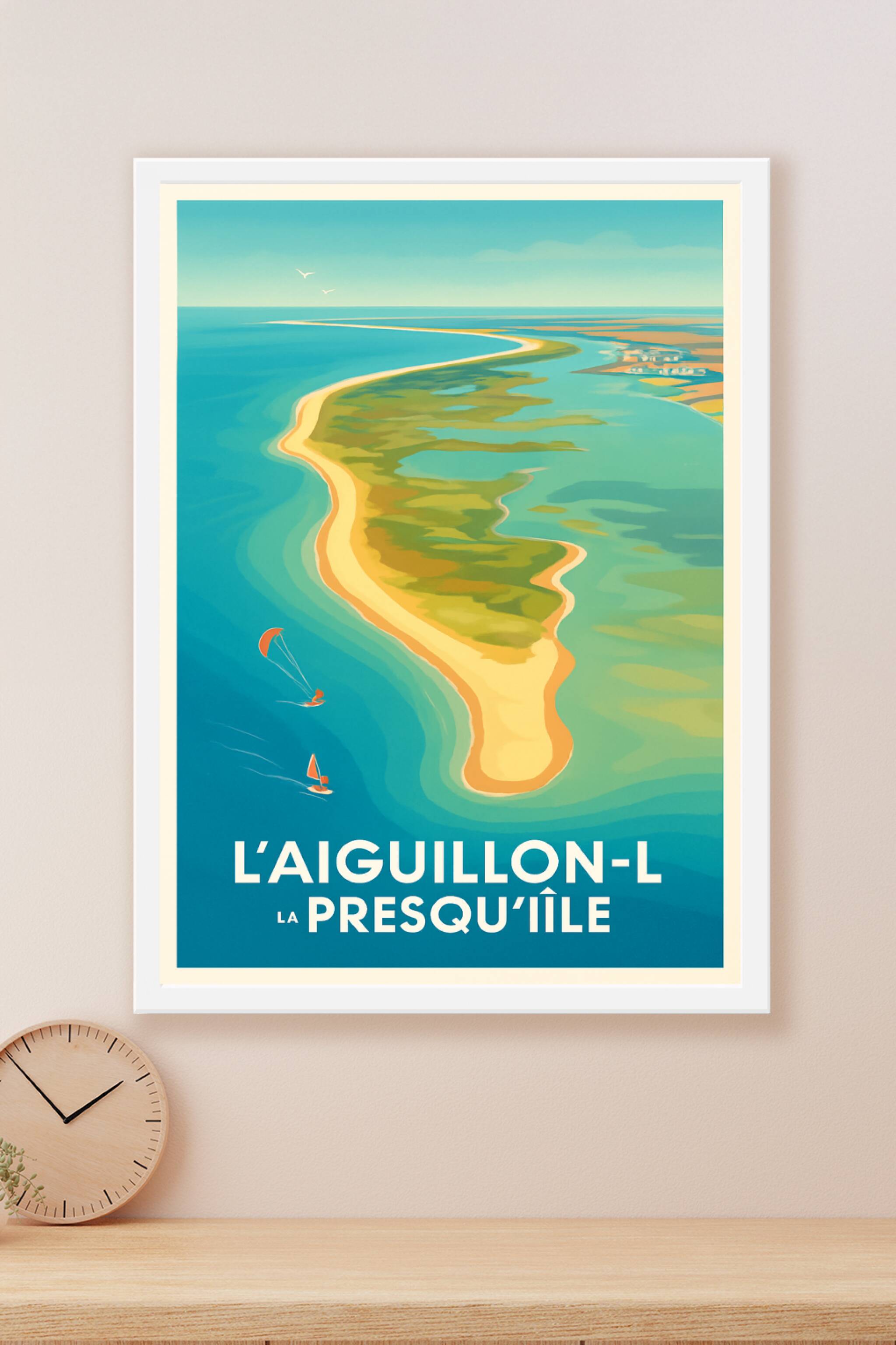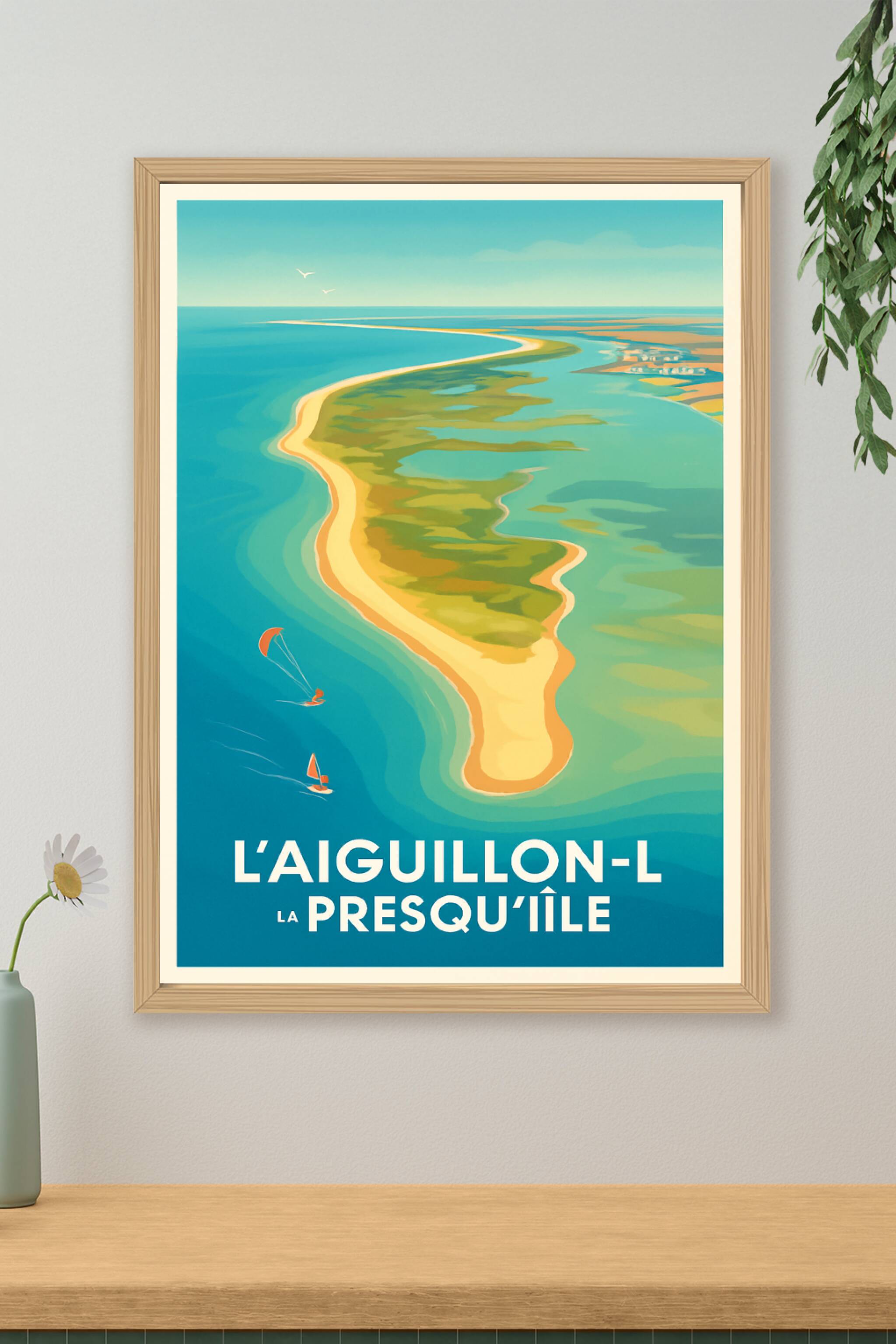 Découvrez la beauté naturelle préservée de la presqu'île de L'Aiguillon-sur-Mer avec cette affiche au design épuré et aux couleurs douces. Ce poste...