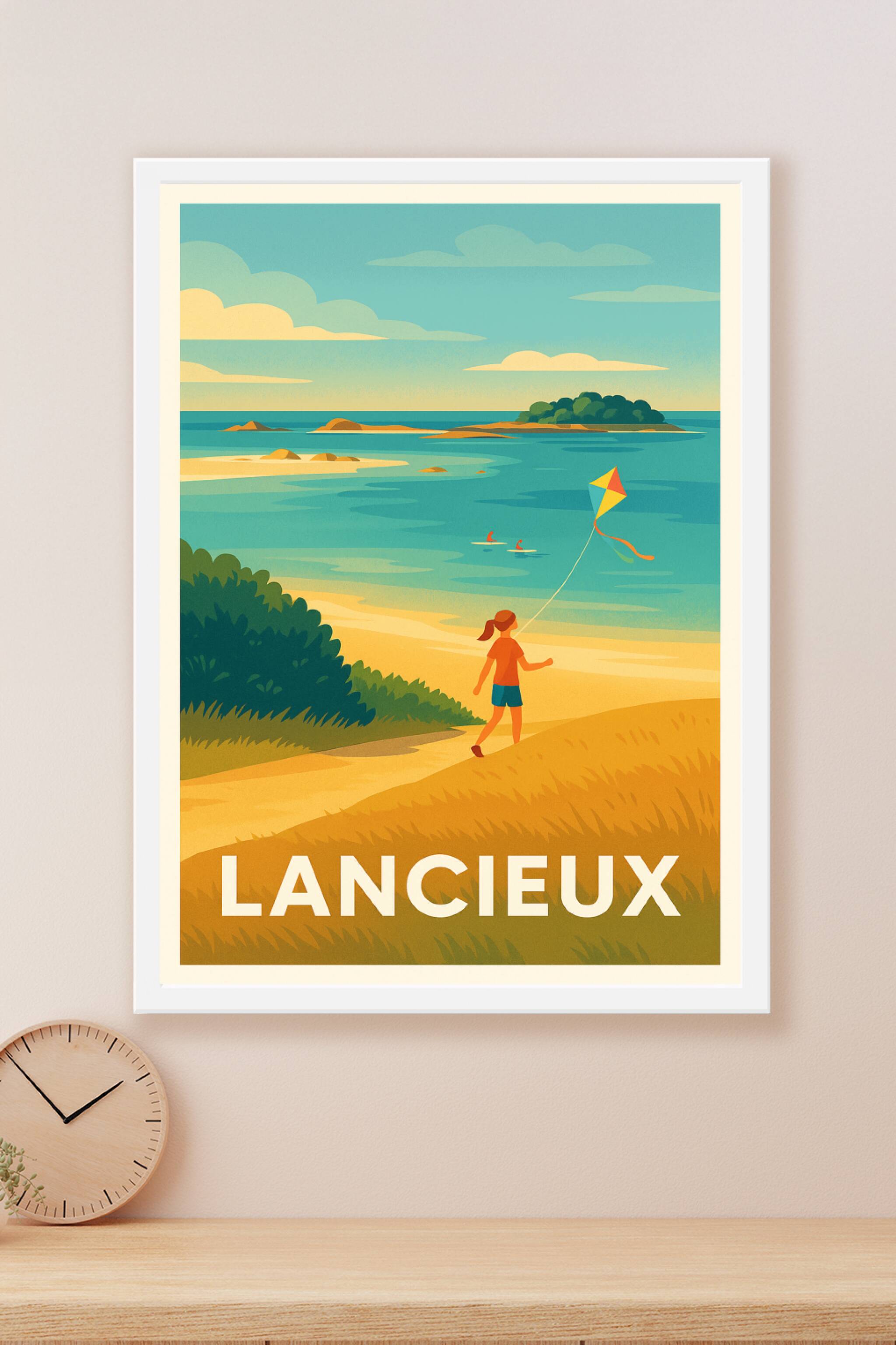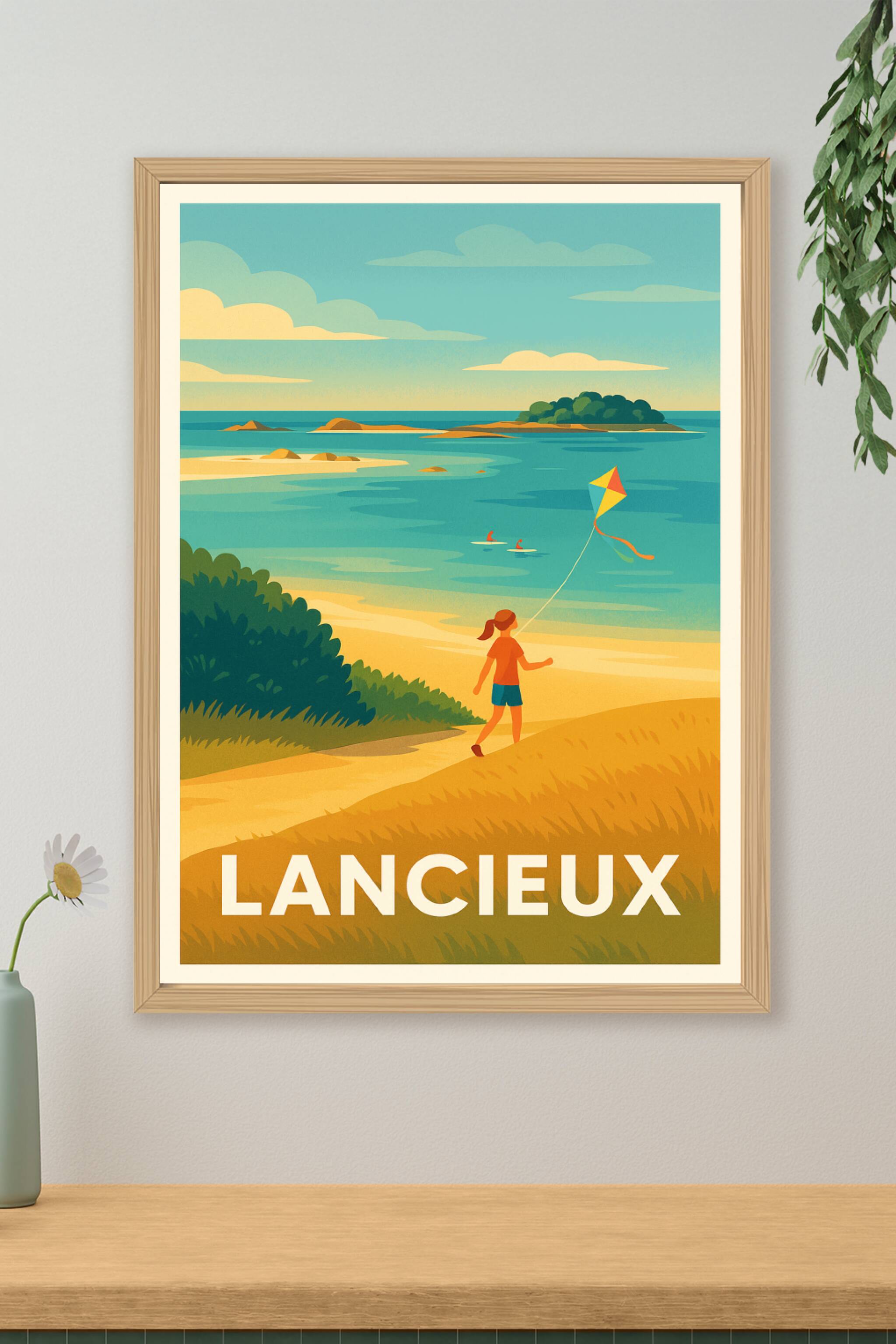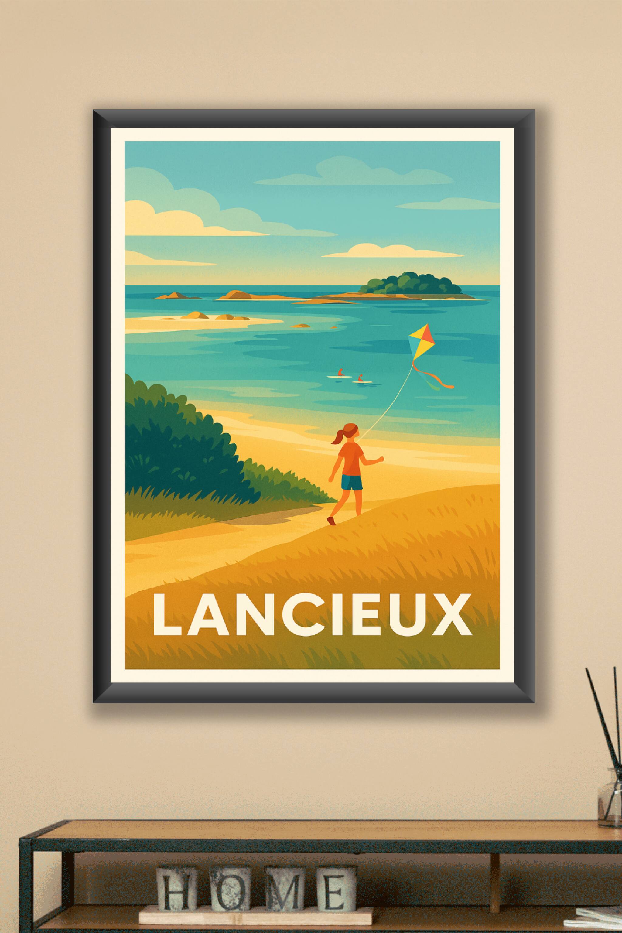Évadez-vous sur les côtes apaisantes de Lancieux avec cette affiche illustrée capturant un moment de liberté et de douceur au bord de l'eau. Une en...