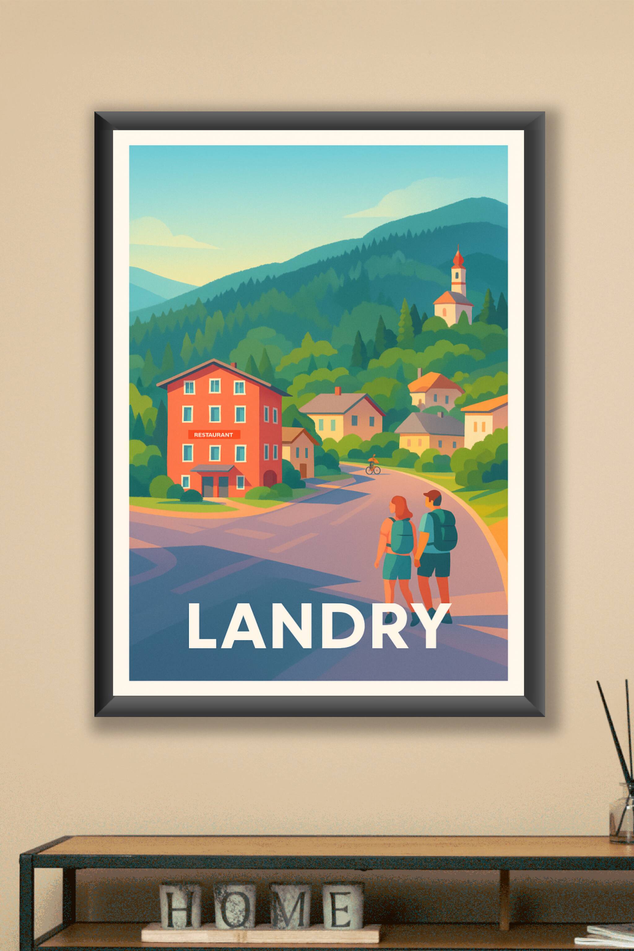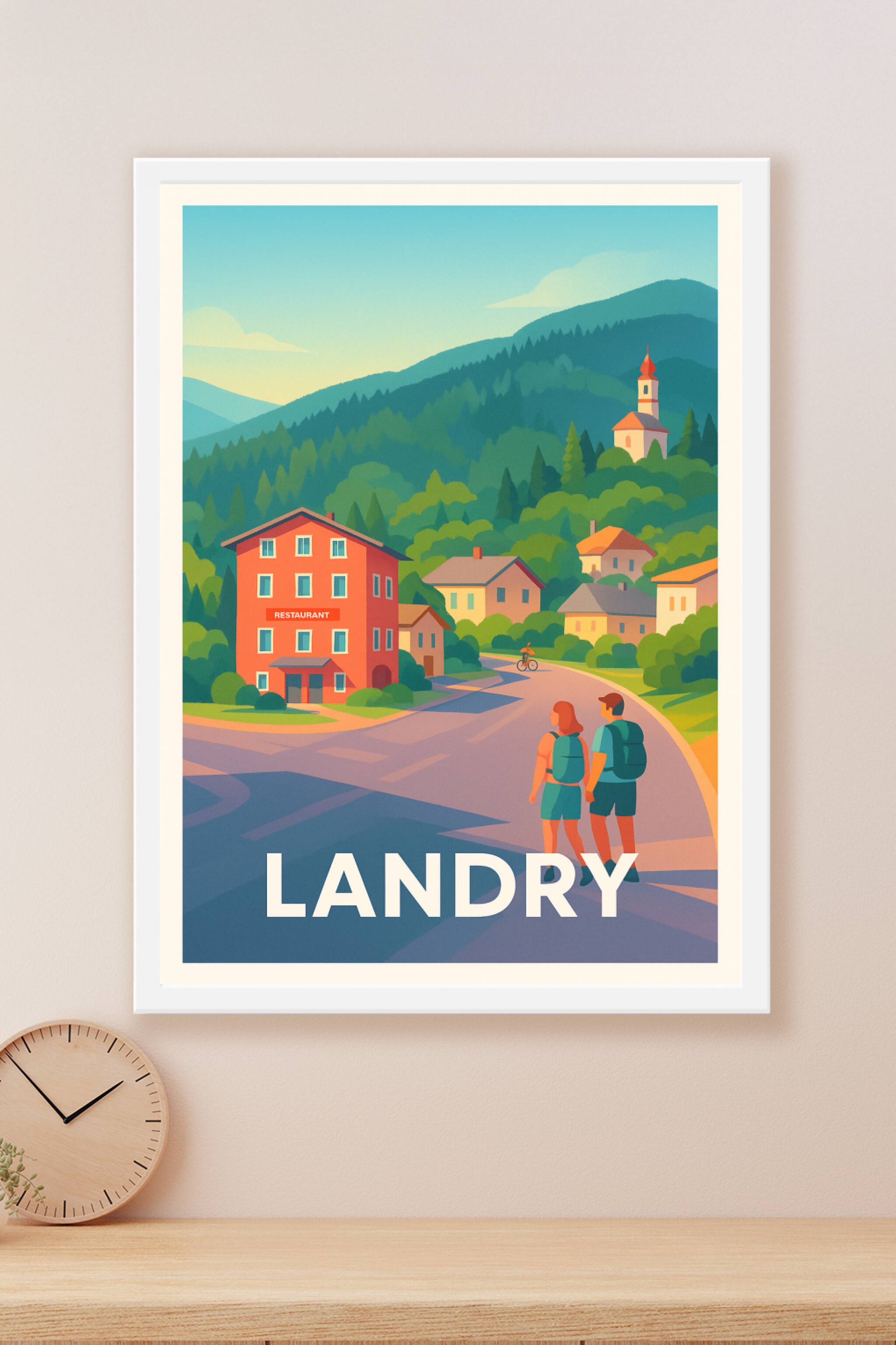 Découvrez la douce ambiance paisible de Landry avec cette affiche immersive qui capte l'essence d'un village niché au cœur des montagnes verdoyante...