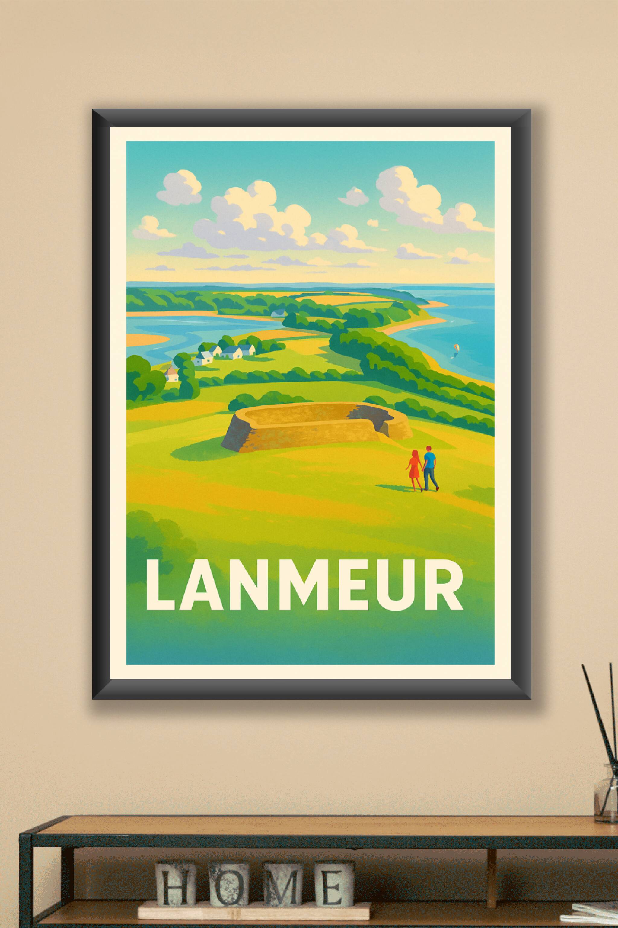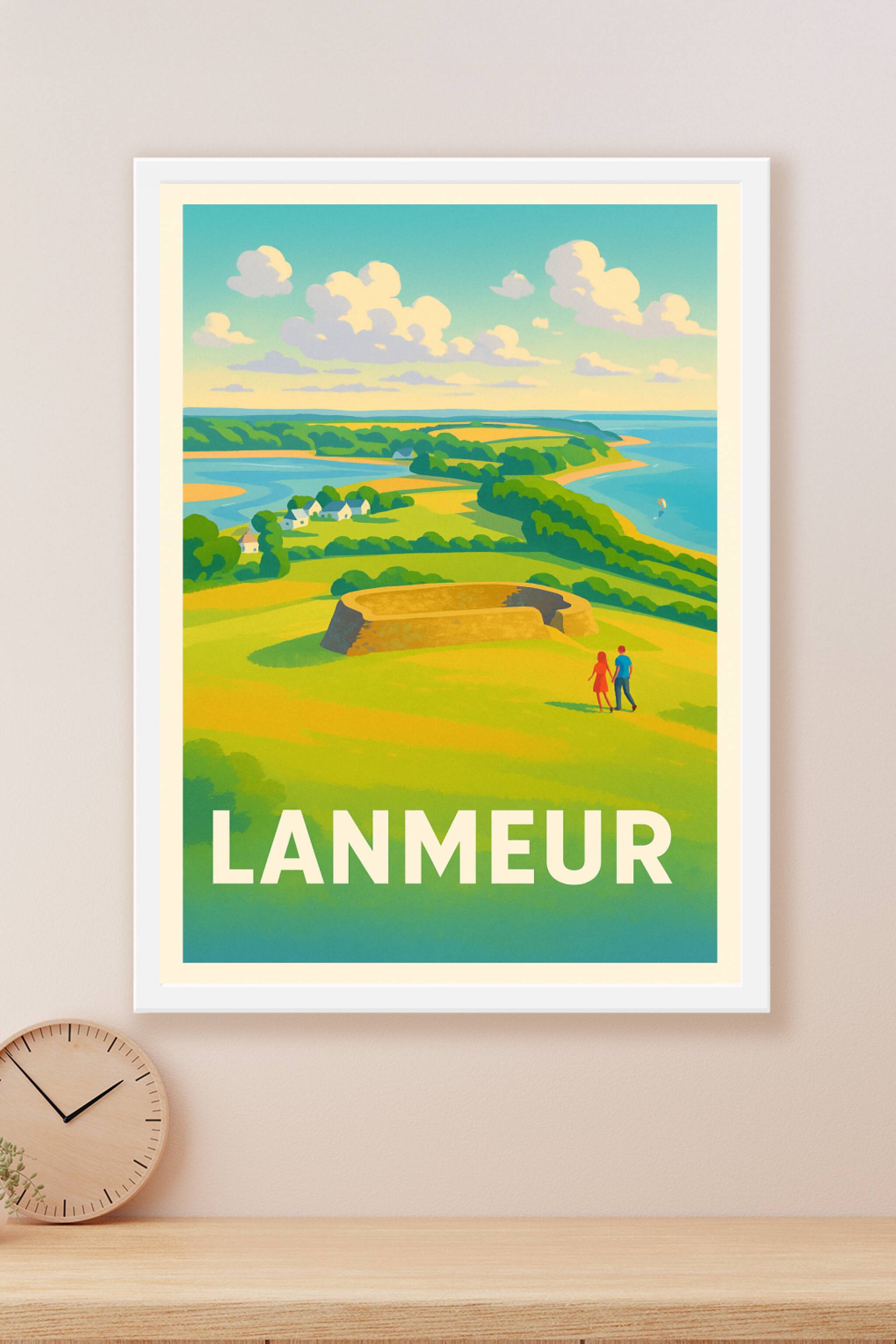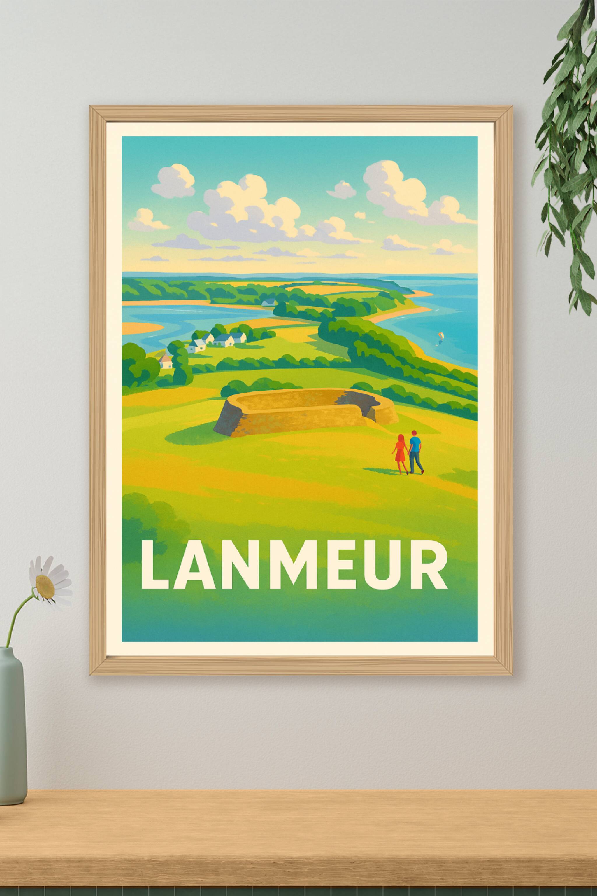 Découvrez la beauté saisissante de Lanmieur avec cette affiche illustrée qui capture les paysages verdoyants et la côte scintillante de cette régio...