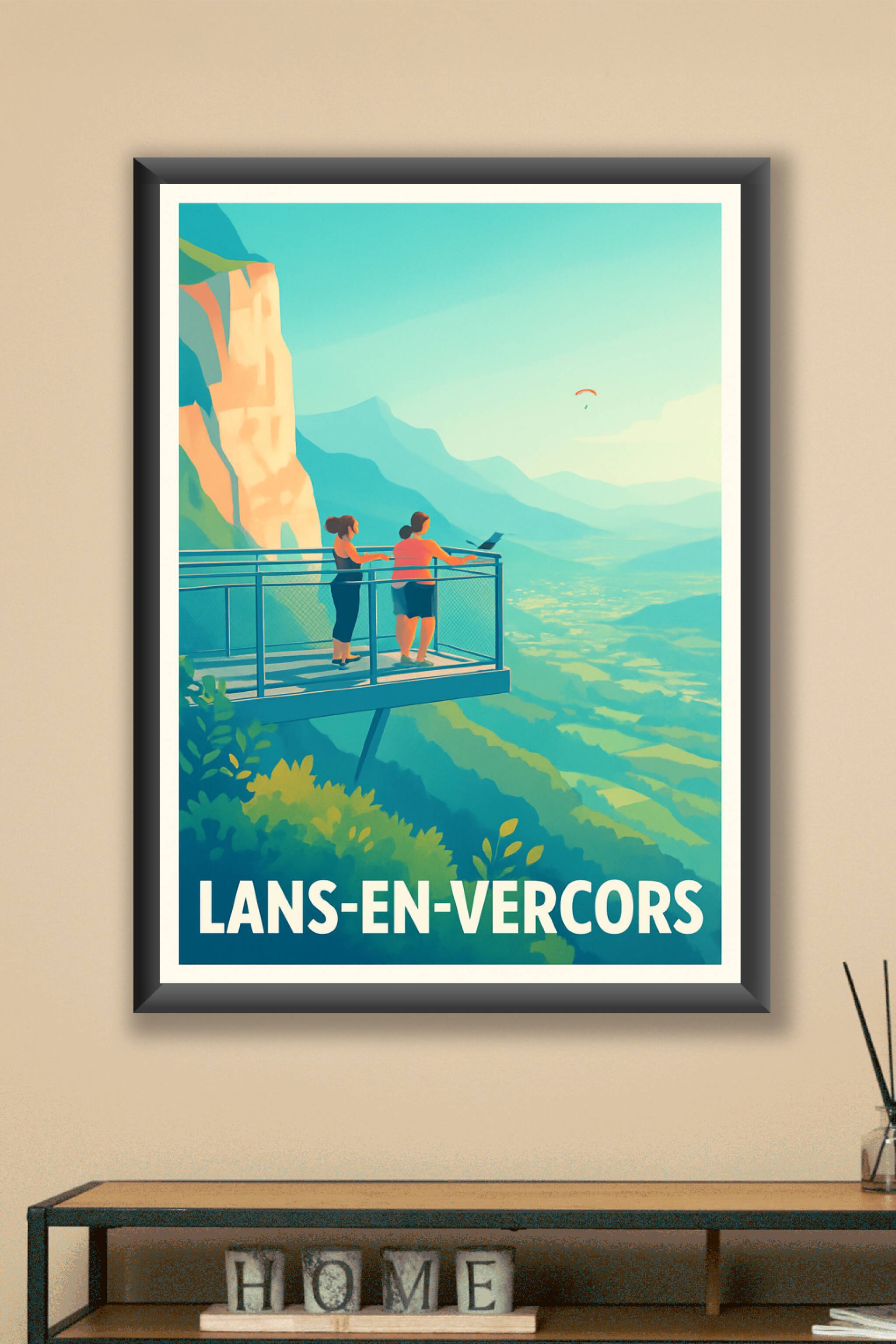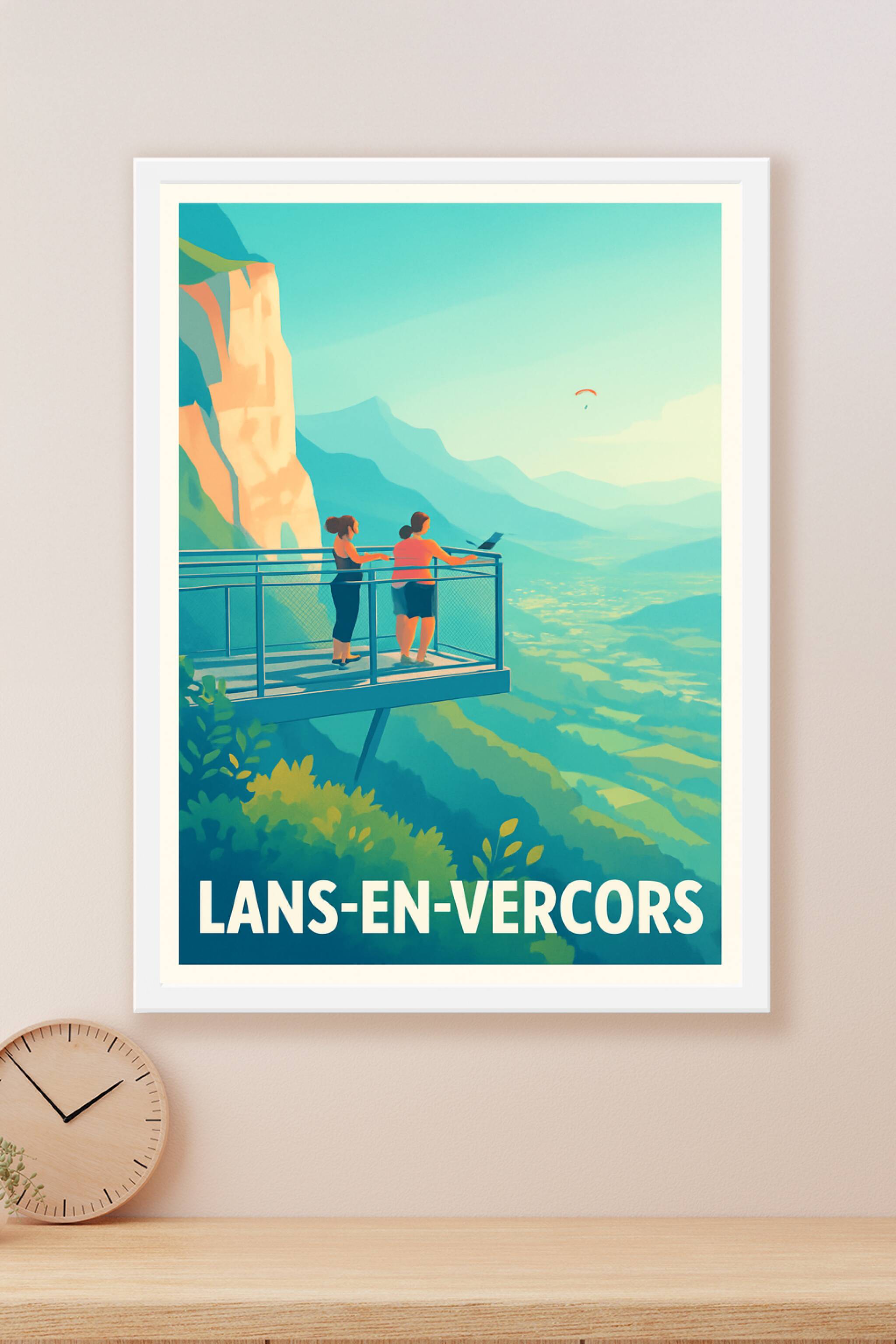 Découvrez la beauté époustouflante des paysages alpins de Lans-en-Vercors avec cette affiche aux couleurs douces et lumineuses, illustrant une plateforme d'observation dominant une vallée verdoyante. Ce poster capte parfaitement l'esprit d'évasion et la magnificence des massifs environnants, idéal pour apporter une touche de fraîcheur et de sérénité à votre décoration intérieure. Imprimée en tirage "Fine Art" sur un papier coton 305g, cette affiche bénéficie d'une qualité d'impression exceptionnelle pour une netteté et une durabilité accrues. Elle est disponible en plusieurs formats allant du A1 au A4, avec ou sans cadre, pour s'adapter à tous vos besoins et espaces. Offrez ou offrez-vous ce poster de Lans-en-Vercors, une invitation au voyage et à la contemplation, fabriqué en France avec soin.