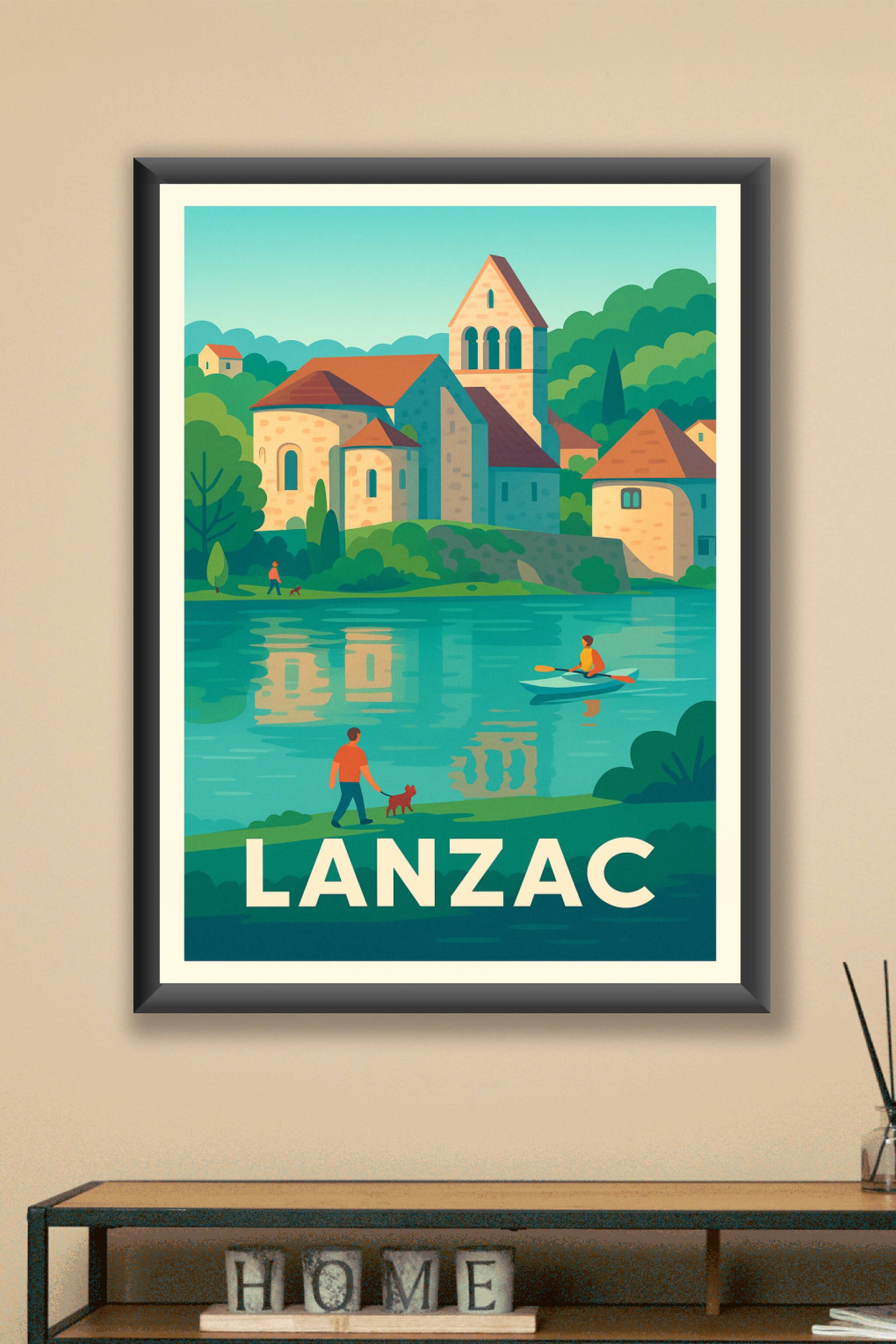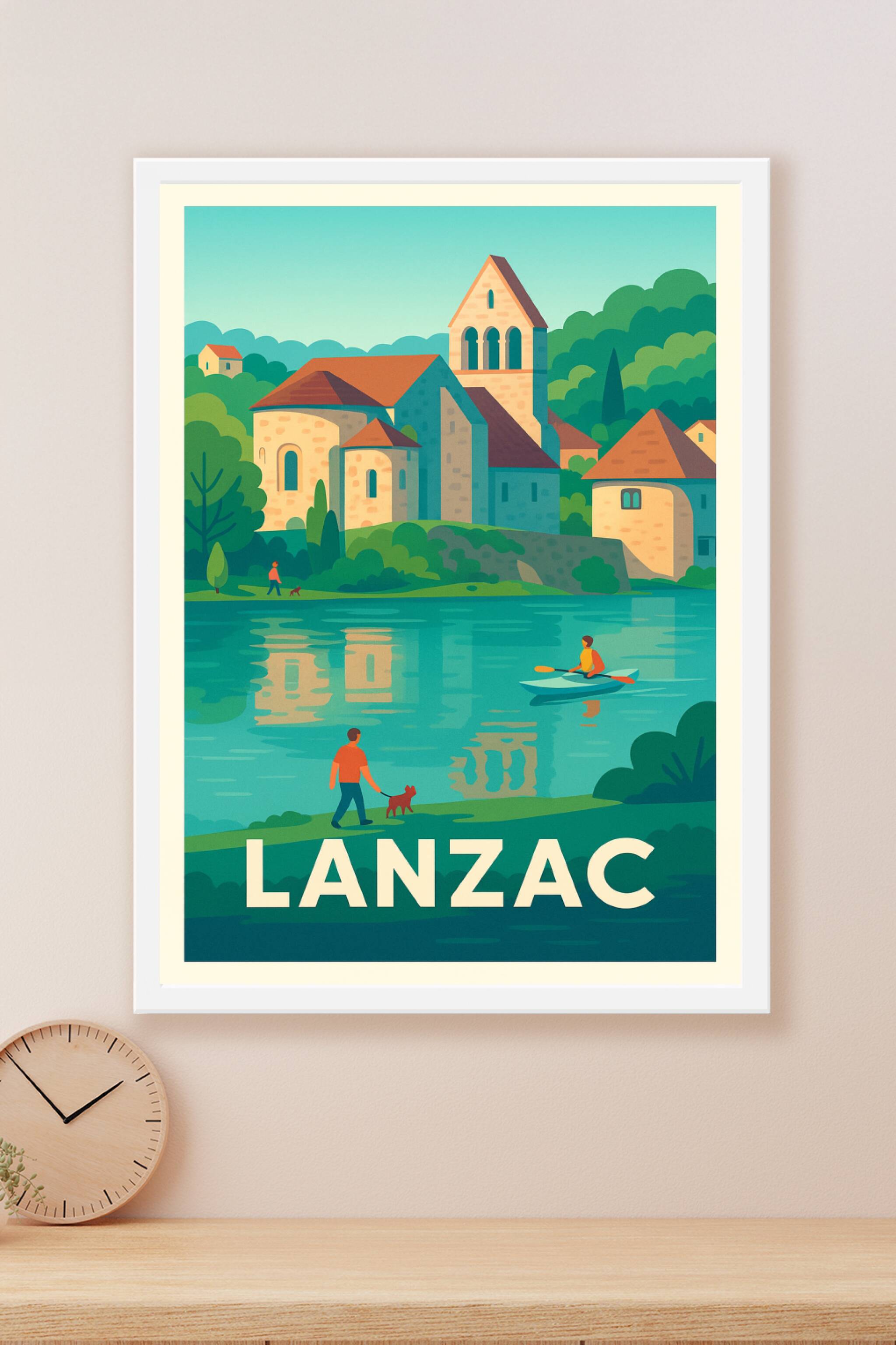 Découvrez la sérénité de Lanzac avec cette affiche illustrée qui capture l'architecture typique et la douceur de vivre au bord de la rivière. Les t...